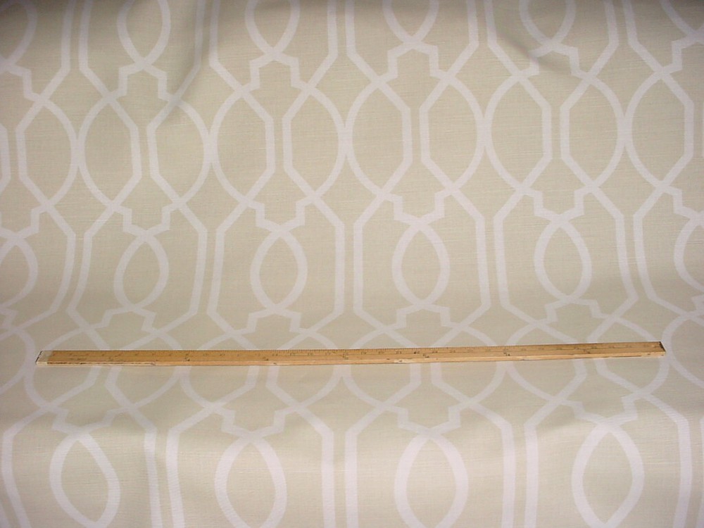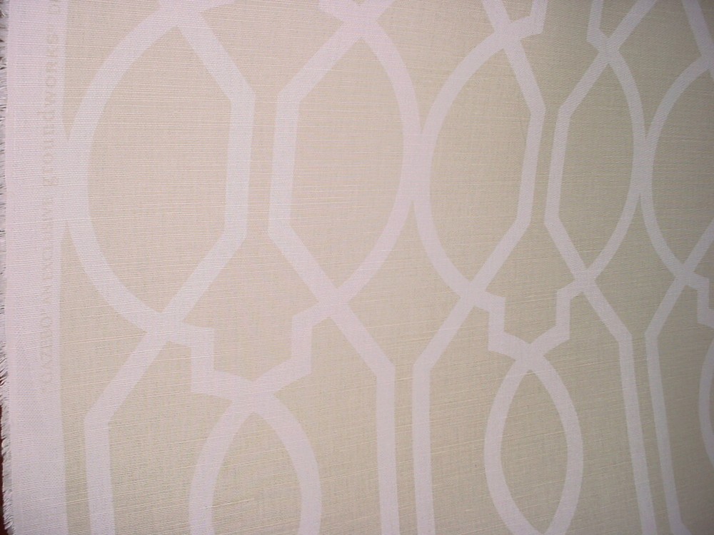 This offering is for a luxury material from a To the Trade Only design house, available here at a fraction of the retail cost. Design House: Groundworks Pattern Name: Gazebo Pattern Number: GWF-3003.116 Colorway: Linen Collection: Length and Width: 15 yards by 54 inches wide A Brief Description: A decadent printed linen featuring a trellis design in soft white on a light linen beige background. Soft linen hand, flowing drape and matte finish. Fiber Content: 55% linen, 45% cotton Durability / Double Rub Count: Heavy / 15,000 Weight per yard: 14 ounces per yard Repeats: Horizontal - 9 Inches / Vertical - 18 Inches Imported from: United States Value per yard: $156.00 Total Value of offering: $2,340.00 --------------- Our Friendly Fine Print: All material is first quality in perfect condition and is carefully stored in a smoke-free, pet-free environment. Shipping: Distinctive Threads offers free shipping to the lower US States as part of our value. If you are located outside the continental United States, please contact us for a shipping quote. Worldwide shipping is available via the United States Postal Service and FedEx International. Please feel free to message us for a shipping quote. A note about color: We describe the colors we see as best we can and hope the photos accurately depict the colors. Color is subjective and differs from person to person and lighting. We also offer samples for purchase. Thank you for stopping by our store. We look forward to providing you with an exceptional, unique and distinctive online experience.