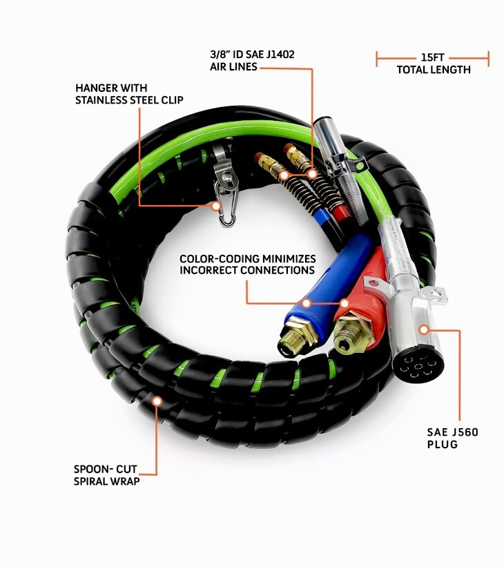 This 15ft 3 in 1 ABS & Air Line Hose Wrap with 7 Way Electrical Cable is a high-quality product designed for use in semi-truck trailers. It is made by the trusted brand Torque and comes with a 1-year manufacturer warranty. The part number for this product is TR813215 and it is compatible with other part numbers such as Peterbilt PE13050 Semi Truck Trailer Electrical Air Line Hose kit, Philips 30-2171 302171 Tectran 169157 Tramec 451098 OTR 6818 and mangueras de aire para camiones airlines for tractor trailer. This product is perfect for those in need of additional ABS parts and is categorized under eBay Motors, Parts & Accessories, Car & Truck Parts & Accessories, Brakes & Brake Parts. With its durable construction and reliable performance, it is sure to meet your needs.