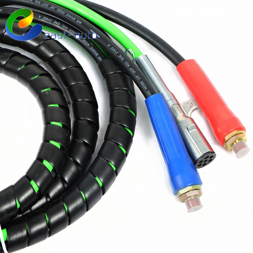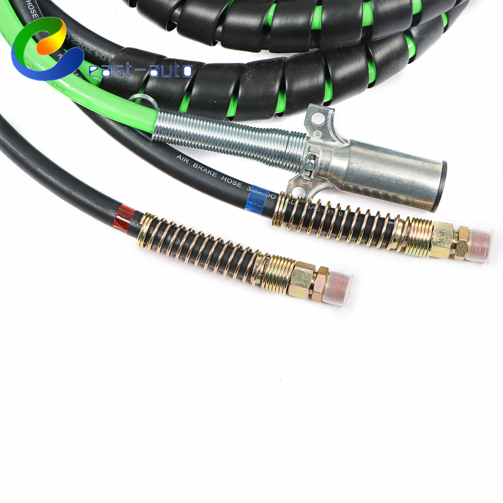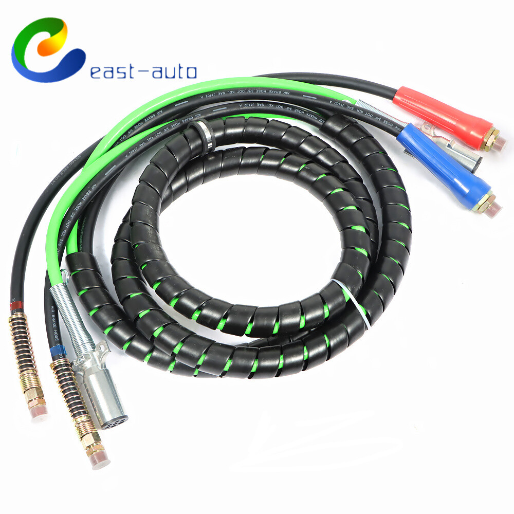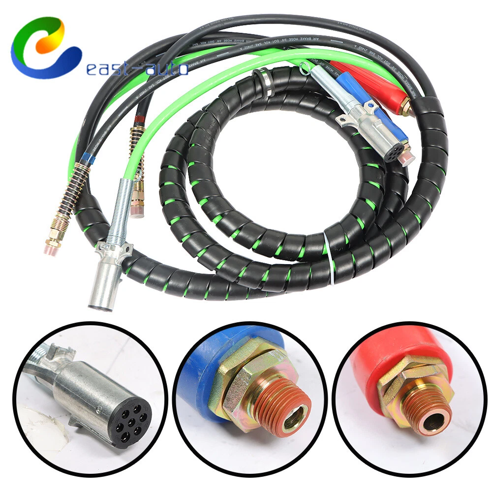 This 15ft 3-in-1 ABS & air line hose wrap is a game-changer for semi-truck trailers! The durable rubber tubes and weather-sealed sleeves provide excellent corrosion protection, while the red and blue grips make connections a breeze. The swivel tractor end ensures quick installation, and the spiral wrap keeps everything neat and tangle-free. No more kinks or abrasion worries—just a clean, organized setup that lasts. Perfect for hassle-free towing with its sturdy 7-way electrical cord and dual air hoses. A must-have for any trucker looking for reliability and convenience!