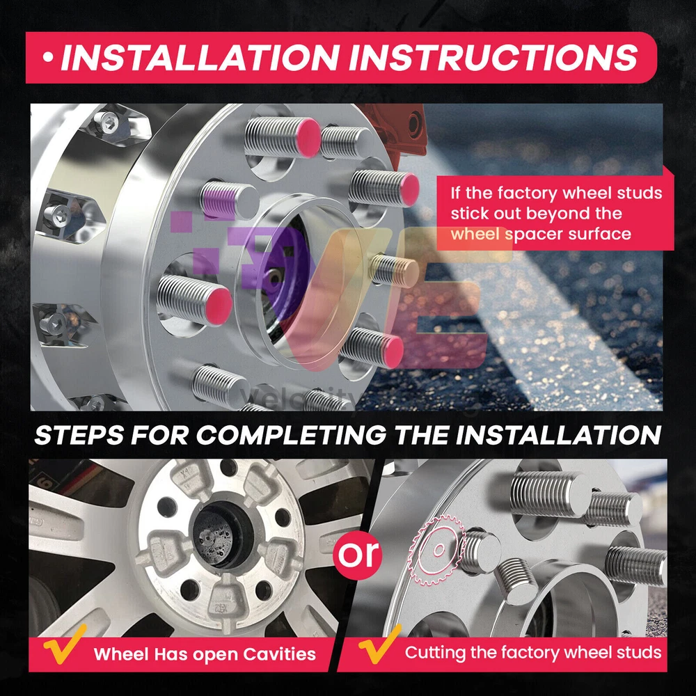 Spacer Thickness 15mm each side Quantity 2 Pieces Bolt Pattern 5x100 to 5x100 Center Bore 56.1mm Thread Pitch 12x1.25 Spacer Type Hub Centric This spacer kit also includes open-end lug nuts to ensure a secure attachment to your vehicle's original hubs.. Your Factory wheel studs may extend past the surface of the wheel spacers. In this case you will need to 1. Shorten the OEM studs. 2. The wheels must be designed with open areas (cavities) between the mounting holes. 3. Purchase shorter studs and install them in place of the factory studs.