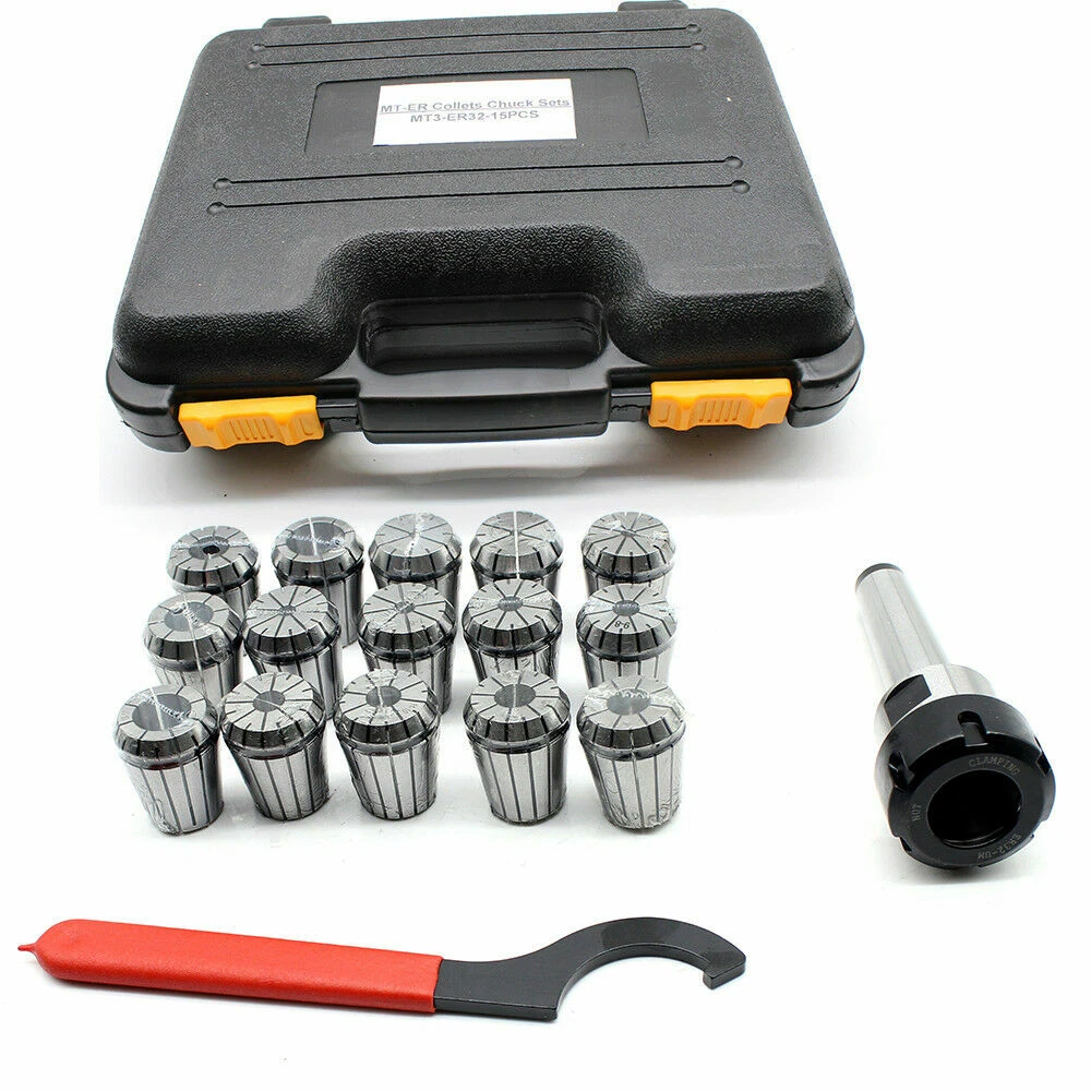 Features: -This is a "brand new" precision collet chuck holder for professionals and hobbyists demanding. -Available in the BT ER extension rod handle, can be used for clamping drill, milling cutter, straight shank tool. -Collet must be assembled into the clamping nut before inserting into the chuck. -Performance stability, high accuracy. -Ease of operation and high quality work results. Packing Included: 1 x MT3 ER32 M12 Collet Chuck 1 x Spanner 15 x ER32 Spring Collet Set 1x Storage box 15x MT3 ER32 Collet Chuck Set Collet & Morse Taper Chuck Holder Milling Lathe 15x MT3 ER32 Collet Chuck Set Collet & Morse Taper Chuck Holder Milling Lathe Packing Included: 1 x MT3 ER32 M12 Collet Chuck 1 x Spanner 15 x ER32 Spring Collet Set 1x Storage box Specifications: MT3 ER32 M12 Collet Chuck Material: Metal Size: 138cm Spindle Drawbar thread : M12*1.75 ER32 clamping range :1-20mm Spanner:212mm Suitable For: MT3 ER32 M12 dedicated machine ER32 Spring Collet Set Material:high grade spring steel Color:steel color Type:ER32 Length:40mm Diameter:32mm Inner diameter: 3mm-20mm Features: -This is a "brand new" precision collet chuck holder for professionals and hobbyists demanding. -Available in the BT ER extension rod handle, can be used for clamping drill, milling cutter, straight shank tool. -Collet must be assembled into the clamping nut before inserting into the chuck. -Performance stability, high accuracy. -Ease of operation and high quality work results. Note: 1. Before using this tool, please measurement tool deflection, tool deflection accuracy exceeds 0.01MM, please correct before cutting. 2. The tool extends the length of the chuck as short as possible, the tool extends the amount of time longer if extended, please cut their own speed, feed rate or cutting the amount. 3. If the cutting of abnormal vibration or sound, cut spindle speed and depth of cut to improve the situation so far. Payment Delivery details Terms of sales About us Contact us Payment We accept ebay payment 。 Fees such as import duties, taxes are not included in the item price or shipping costs. These charges are the buyer's responsibility. Delivery details Shipping: 2-9 working days to: USA Terms of sales We maintain high standards of excellence and strive for hundred percent customer satisfaction. Feedback is very important to us. We hope that you contact us immediately before you give neutral or negative feedback, so that we can address your concerns. It is impossible to address issues if we do not know about them! About us Your satis faction is our ultimate goal. We work hard to earn your trust and future business. Our certified technicians have tested each item before shipping. The unit comes with 1 year limited warranty on all manufacturing defects. a) If you receive a defective item, you may return it or ask for a discount. Please contact us within 14 days after you receive the package. b) What you returned must be intact and in its original packaging as re? u. Customer is responsible for shipping costs of the returned item. c) We will cover the cost of shipping back t with the shipping rate indicated in the registration page. We will send you a new unit or refund the full payment you paid. Thank you. Contact us Business Hour Business Hour: Monday To Friday: 8:30 AM to 5:00 PM (Beijing China time) Due to time zones, our reply to your questions may not be immediately. But within above working time, we will reply your email within 24 hours. If it's non-workdays, please kindly be patient and wait till Monday. Please contact us with ebay message. Please feel free to contact us if you have any questions. Monday To Friday: 8:30 AM to 5:00 PM (Beijing China time) Due to time zones, our reply to your questions may not be immediately. But within above working time, we will reply your email within 24 hours. If it's non-workdays, please kindly be patient and wait till Monday. Please contact us with ebay message. Please feel free to contact us if you have any questions. Note metric thread Brand Unbranded MPN Does Not Apply Bundle Listing Yes Model ER32 Country/Region of Manufacture China Custom Bundle Yes run-out 0.12mm Collet Chuck Type MT3 ER32 M12 Collet Chuck