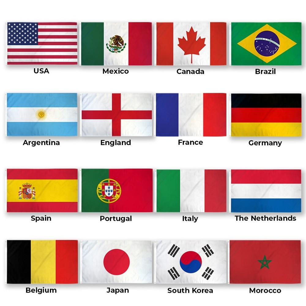 16 FIFA World Cup 2026 Country Flags 2x3ft Soccer Team Flag Set
