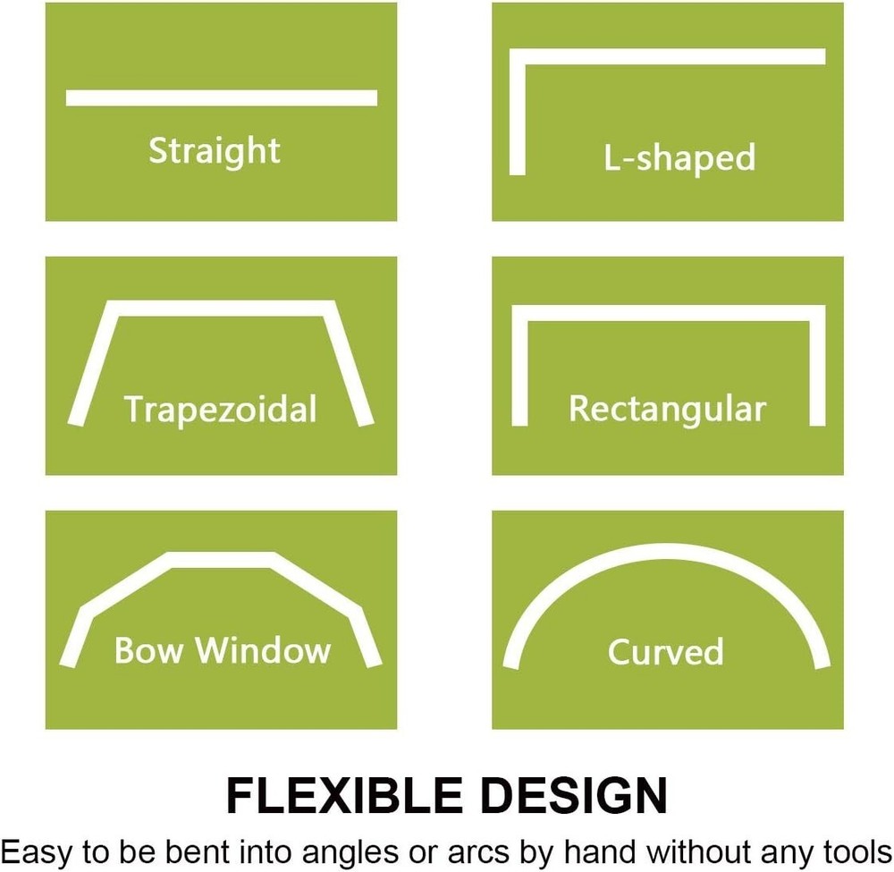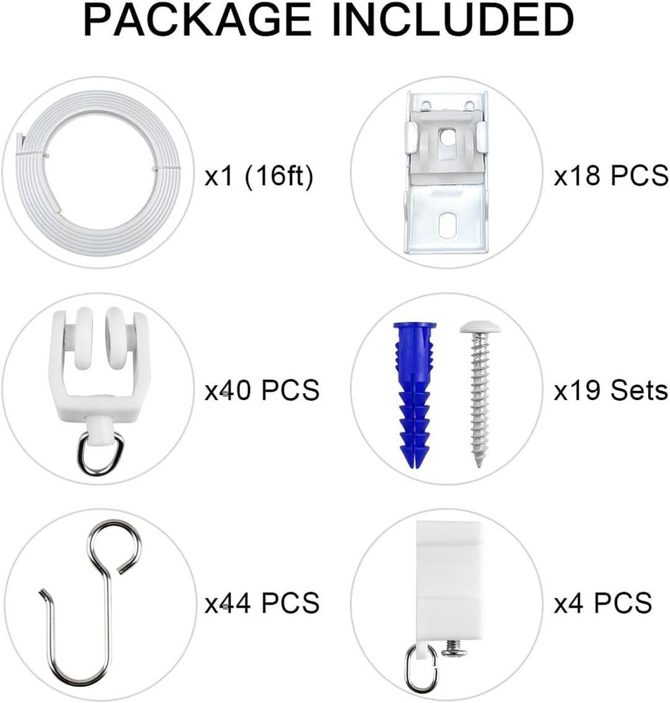 KXLife Flexible Bendable Ceiling Curtain Track (16 ft), Track Curtains Ceiling Mount with Track Curtain System, Ceiling Track Room Divider, Curtain Rods for Ceiling, Ceiling Curtain Rail Easy to be bent into various shapes, such as trapezoid, bow, L-Shape, arc, suitable for any window and ceiling track room divider system Easy installation: can be cut down to size by a fine tooth hacksaw, and the package come with installation guide. Please refer to the "Product Guides And Documents" section below for the installation manual PDF. Embedded metal plate makes the track stronger and more flexible, can hold heavy fabric curtains and bend at any angle without breaking Runs easily & quietly with quality rollers. This set includes all hardware for Ceiling Mounting, for Wall Mounting please buy wall mounting brackets from our store Multi-Purpose: This curtain track can be used to hang window curtains, room divider curtains, RV curtains, shower curtains, backdrop, holiday decoration and so on