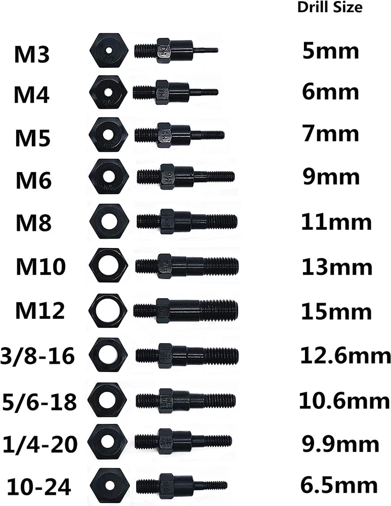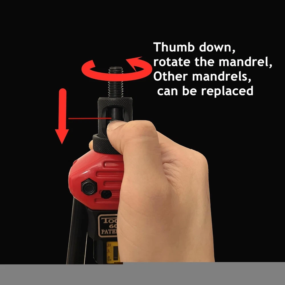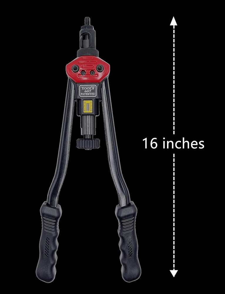 16" Hand Rivet Nut Setter Kit, Professional Long Handle Threaded Insert Tools VARIOUS USE- It provide professional solution for all kinds of riveting cases as car attachments, bicycle attachments,metal plate, riveting workpiece etc. INNOVATIVE MECHANISM - New "Toolless Quick-Change Head" design allows for easy changing of mandrels and nose pieces by hand. LABOR-SAVING AND DURABLE - Made of thick carbon steel, subjected to heat treatment and black phosphating treatment to prevent corrosion. The 16 inch handle can maximize the leverage effect, making it more effortless to use. COMPLETE ACCESSORIES - A rivnut tool, 11 interchangeable mandrels (metric M3 M4 M5 M6 M8 M10 M12; SAE 10-24, 1 / 4-20, 5 / 16-18, 3 / 8-16) and 55 rivet nuts (5 nuts per mandrel). Please note that the M8 mandrel is already installed in the rivet machine. 16.0 inches x 7.0 inches x 2.0 inches. Weight: 4.0 lb Fastener Type Rivet Product Dimensions 7 x 16 x 2 inches; 4 Pounds Material Steel Thread Size 1/4"-20 Metal Type Carbon Steel Exterior Finish Black