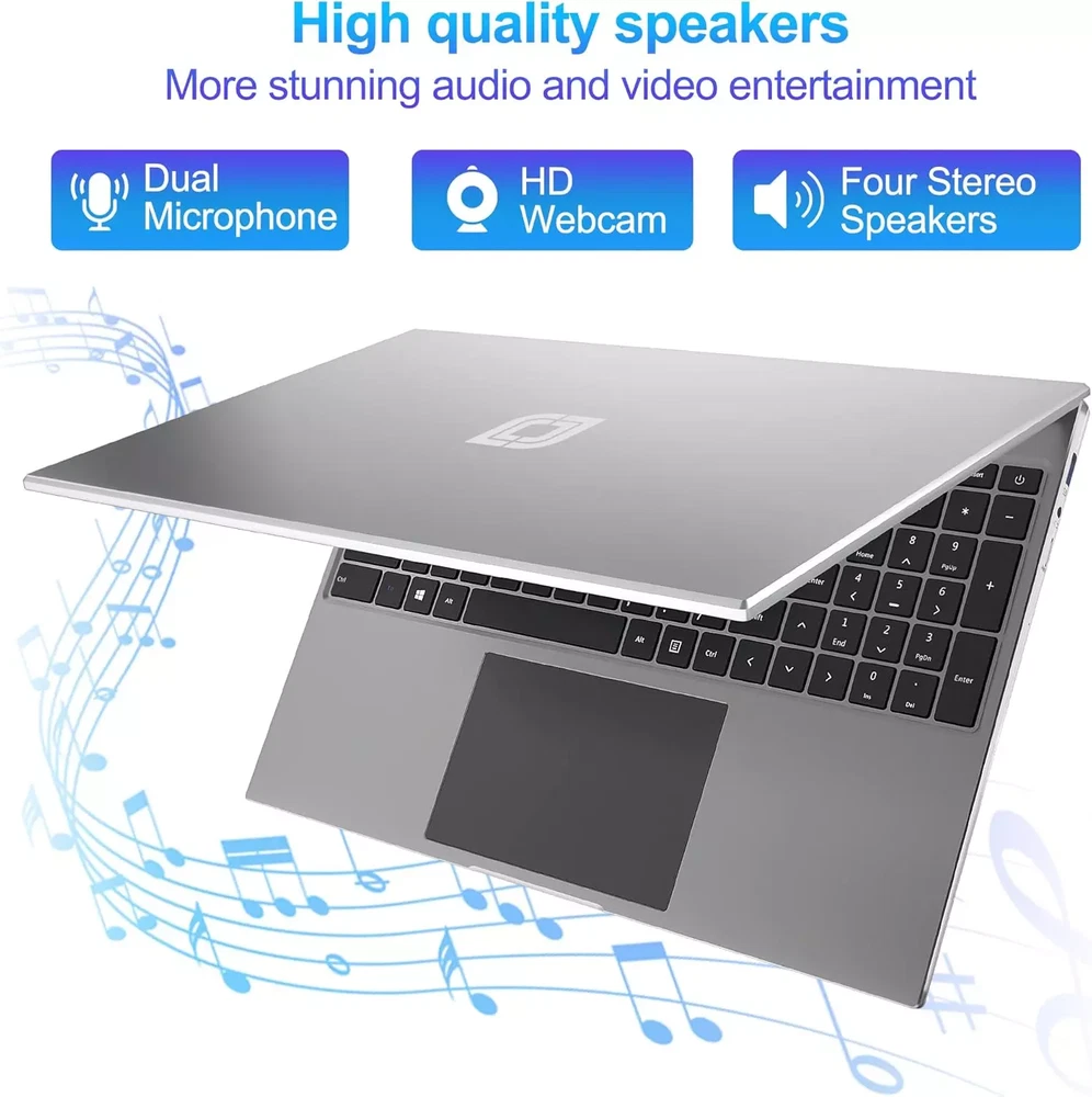 jumper 16 Inch Laptop, 16GB RAM 512GB SSD, Quad-Core Celeron N5095, FHD IPS 1920x1200 Screen, Windows 11 Laptops Computer with Four Stereo Speakers, Numeric Keypad, USB3.0, 5G WiFi, Webcam. About this item 【Immersive Big Screen Enjoyment】 Enjoy a vibrant visual experience with a 16-inch full HD IPS display with a resolution of 1920 x 1200 pixels. A stunning 16:10 widescreen display with a 93% screen-to-body ratio makes it easy to watch movies, edit photos or browse the web. 【2.9GHz 4-Core Processor】 This Windows 11 computer uses a powerful Intel Celeron N5095 Processor with a turbo frequency up to 2.9GHz, more powerful and faster than normal processors on the basic frequency without latency. The perfect combination of high performance and lower consumption helps the notebook computer to run smoothly and reliably to handle all your tasks. 【Spacious Storage】 This student laptop comes with 16GB DDR4 and 512GB high-speed SSD, which makes it no problem even when opening multiple programs. It offers high capacity for efficient operation of the most complex applications and multimedia. In addition, the expandable TF card slot supports up to 256GB TF card expansion, and the extensive interface ensures you have enough space to store more of the world. 【Enhanced Productivity and Communication】 The integrated 1MP camera, four stereo speakers and built-in microphones allow you to participate in video conferences, virtual meetings, or stay connected with friends and family through video calls with ease. 【Versatility Ports】 Traditional notebook laptop supports 2.4G/5G WiFi, Bluetooth 4.0, and is equipped with ports such as Mini-HDMI*1, headphone jack*1, USB 3.0*2, Type C*1, and TF card slot*1, as well as 4 built-in stereo speakers and a 1.0-megapixel camera on the front. Product Description 16" Fullview Screen Jumper 16-inch laptop has high-definition display with an optimal resolution of 1920 x 1200 pixels. A stunning 16 : 10 widescreen display with 93% screen-to-body ratio gives you morespace to stream, edit, and create. 16GB DDR4 RAM & 512GB SSD Storage Equipped with 16GB high-speed DDR4 memory, 512GB SSD storage and faster, smoother and energy-efficient performance.Equipped with a TF card expansion slot that supports 256GB TF expansion. Previous page 11th Gen Intel Quad Core Processor(up to 2.9GHz) Powered by Intel Celeron N5095 Quad core processor (4M Cache, up to 2.9GHz) with Intel UHD Graphics,run your most demanding apps all at once with lightning-fast responsiveness. Next page Four Stereo Speakers Comes with Four high quality stereo speakers and dual microphone reception for a more immersive sound experience and video entertainment. Previous page Multiple ports, for greater versatility With the help of AC dual band WiFi, Bluetooth 4.0, standard USB3.0 and Type-C for easy connection to various peripherals and high-speed wireless transmission. Also, HDMI output for HD audio, video. Next page