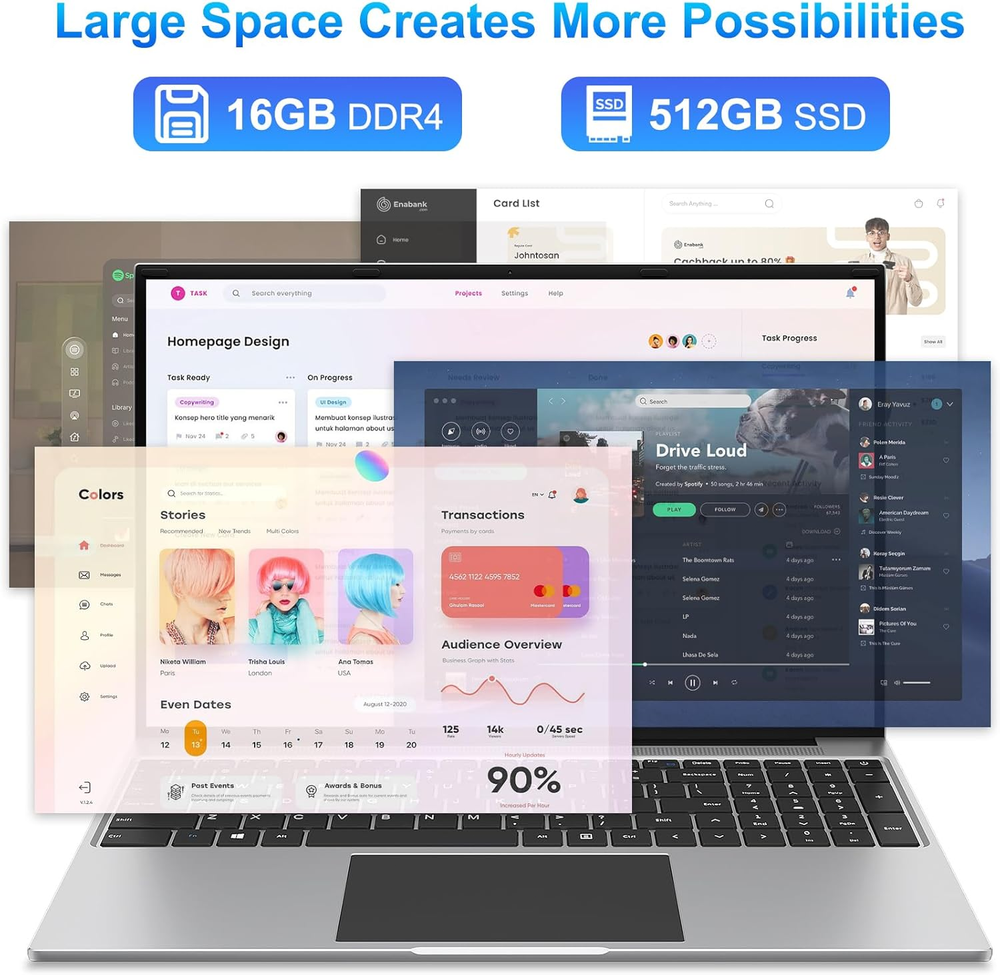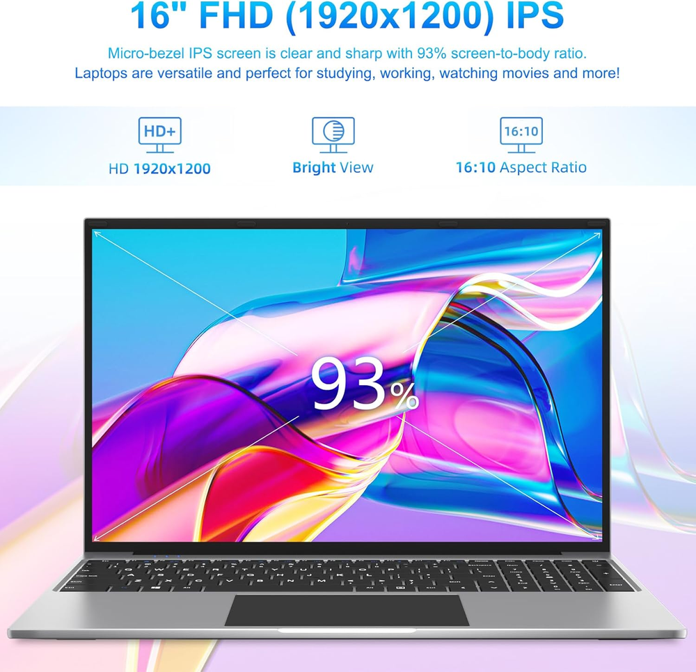 16 Inch FHD IPS Laptop with 16GB DDR4 512GB SSD Quad Core up to 2.9GHz Dual Band WiFi