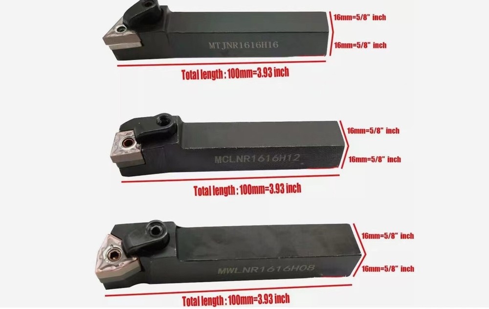 5/8" CNC Lathe Excircle Indexable Carbide Turning Tool Holder Bit Set Features: 100% brand new and high quality Made of high-quality materials,durable 5/8" CNC lathe outer circle indexable carbide turning tool bit set MTJNR1616H16 + MWLNR1616H08 + MCLNR1616H12 with 3 wnmg431, cnmg431, tnmg331 indexable carbide inserts (right cutting) Each tool holder has a black oxidized smooth surface, and the tool hardness (HRC up and down 48 degrees) and accuracy have reached the first grade Exquisite craftsmanship of turning blades, high strength, high toughness, stability and durability Product parameters: Turning tool holder model: MTJNR1616H16 + MWLNR1616H08 + MCLNR1616H12 Tool handle diameter (length × width): (5/8 "x5 / 8" inches / 16 * 16mm) Full length: (3-7/8"inch/100mm) Cutting direction: right hand MTJNR1616H16: Tool handle diameter (length × width): (16 * 16 mm) overall length: (100 mm) Entering angle: 93º, gasket: ST 1603, pin: MCT513 Clip: HL 1814 Clamping screw: MCS625 Wrench: L2.0, L3.0 Blade: TNMG 160404 / TNMG 331, blade length: (16 mm), thickness: (4 mm) MWLNR1616H08: Tool handle diameter (length × width): (16 * 16 mm) overall length: (100 mm) Entering angle: 95º, gasket: SW 0804, pin: MCT617 Clip: HL1814 Clamping screw: MCS625 Wrench: L2.5, L3.0 Blade: WNMG 080404 / WNMG 431, blade length: (8 mm), thickness: (4 mm) MCLNR1616H12: Tool handle diameter (length × width): (16 * 16 mm) overall length: (100 mm) Entering angle: 95º, gasket: SC 1204, pin: MCT617 Clip: HL1814 Clamping screw: MCS625 Wrench: L2.5, L3.0 Insert: CNMG 120404 / CNMG 431, insert length: (12 mm), thickness: (4 mm) Package list: 1 *MTJNR1616H16 turning tool holder 1 *MWLNR1616H08 turning tool holder 1 *MCLNR1616H12 turning tool holder 1 *TNMG160404 blade 1 *WNMG080404 blade 1 *CNMG120404 blade 3 *Wrench Note: 1.The real color of the item may be slightly different from the pictures shown on website caused by many factors such as brightness of your monitor and light brightness. 2.Please allow slight manual measurement deviation for the data.
