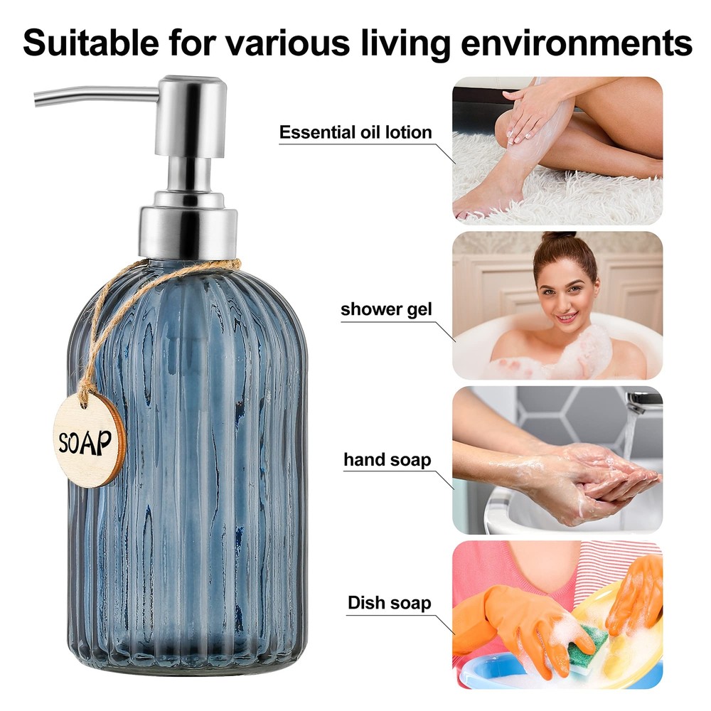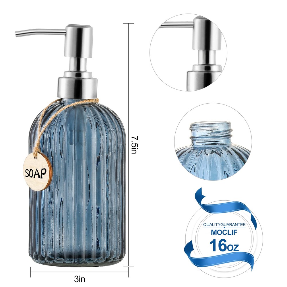 MOCLIF 16 OZ Soap Dispenser,Tempered Glass Clear Vertical Stripe with 304 Rust Proof Stainless Steel Pump Refillable Liquid Hand Soap Dispenser,for Bathroom, Kitchen, Dish Soap,Lotion (Blue Grey) ⭐Fashion Design: Vertical Stripe Soap Dispenser: With Blank Wooden Label, suitable for bathroom, kitchen, dispensable soap, lotion, hand sanitizer, dish soap, etc. ⭐Durable anti-rust, durable high-quality 304 stainless steel pump head, durable, not easy to rust, lasting bright, increase the use of time ⭐Size and capacity: 7.5 inches tall, 3 inches in diameter, easy to clean, can hold 16 ounces of liquid soap (about 480 milliliters) strong toughened glass, elegant and stylish design to add more spice to your life ⭐Product advantages: ACCURATE DISTRIBUTION AND SUPER CAPACITY: each allocation of appropriate amount of liquid soap, no waste, large capacity without frequent replenishment, suitable for all liquid soap, soap dispenser made of Health and food safety glass, internal components without BPA, can Be used for dishwasher cleaning, safe and convenient ⭐Warranty commitment: we are confident to provide you with a one-year quality assurance, if you have any questions, please feel free to contact us, please rest assured to buy SHIPPING Domestic Buyers - We have confidence in our products, but if you are not fully satisfied please contact us within 30 days of purchase and you will get full refund. - We ship within 3 business days of payment, usually sooner - We offer FREE shipping on all orders! - We only ship to the lower 48 states, no APO/FPO addresses or PO Boxes allowed International buyers – please note: Import duties, taxes, and charges aren't included in the item price or postage cost. These charges are the buyer's responsibility. - Please check with your country's customs office to determine what these additional costs will be prior to bidding or buying. * Order Cancellation Policy ** You can return a product for up to 30 days from the date you purchased it. 1. The seller reserves the right to cancel the special case only due to eBay cancellation fee. 2. The decision of seller is the final. 3. The seller will respond to the cancellation request within 2 business days. Please wait for the result of cancellation. 4. In case the cancellation is not completed by some reasons, the buyer can follow the options below to get the refund. 4.1 The buyer can reject the item when it arrives. 4.2 The buyer can send the item back to the seller within 30 days If the buyer receives item (USA Shipment ONLY). The seller will provide the FREE return label to the buyer when the buyer opens " Return Item" case on eBay by using the reason as "Change my mind" ONLY. 5. When buyer has placed the order. The order will be processed and completed by automatic warehouse system within 5 minutes. In case that buyer sends the cancellation request after 5 minutes of placing the order, the request will be rejected. **Sending direct message to cancel the order is not allowed for every case.* Return Policy For the return case - If buyer would like to return the items for refund or replacement, please CONTACT SELLER to receive the free return label from seller. The refund or replacement will be processed with the tracking number of return label which is provided by seller only. The other ways of return which are not approved by seller will not be processed for the refund or replacement.