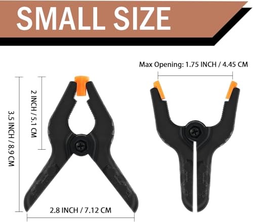 Return Policy Fast Delivery Trusted seller 16 Pack Small Spring Clamps, 3.5 Inch Heavy Duty Clamps for Backdrop Stand, Plastic Clips for Crafts and Backdrop Clips for Crafts, Woodworking, Photography, Outdoor Product Description Package: 16pcs 3.5 inch small spring clamps heavy duty. The dimensions of these clamps for backdrop stand is 3.5"x2.9" Quality Material: The small heavy duty clamps is made of durable nylon plastic with two flexible pads. The rugged construction of these spring clips for backdrop stand can help clamp items firmly and lasting performance for longer life Excellent Design: The pads in the heads of heavy duty clips are designed to be soft and flexible to protect finishes and provide maximum flexibility and tension. The detachable orange pads can be snapped back into place if they fall off. High-strength springs (3.5 lbf clamping force) ensure robust grip on heavy objects Performance: The heavy duty clamps for backdrop stand have human engineering handle, anti-slip and reduce hand fatigue to better operation. The heavy duty clip is usually use for photography. And the backdrop clips clamps very suitable as wood clamps for gluing woodworking with the great bite force. As pool cover clamps for above ground pools, the small clamp has great power to clamp the pool cloth Versatile use: Backdrop clips clamps for versatile use in crafts DIY projects and photography. Whether you're a professional photographer or a hobbyist, these heavy duty clips backdrop clamps are essential for achieving a seamless backdrop display Shipping Returns Payment Shipping Shipping is FREE to all addresses other than APO/PO boxes in the lower 48 states. All our stock ships from US-based warehouses. Shipped via USPS or UPS (depending on location and package weight) Unless stated otherwise, all orders will ship within 24-72 hours of your payment being processed. Check our feedback to see the great reviews of FAST shipping we offer. Returns Seller does not accept returns Payment We currently accept payment via eBay managed payments only. Once payment is cleared, we will dispatch your shipment within 1-3 business days. Please refer to the "Shipping" tab for more information regarding shipping speed to your destination.