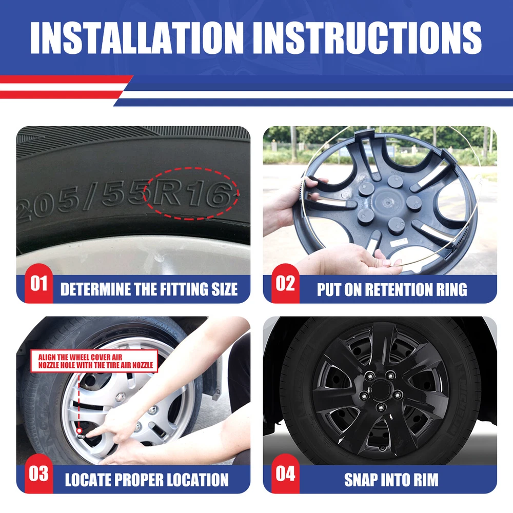 Head Lights Tail Lights Fog Lights Turn Signal Bumper Fender Flare Inner Fender Hubcaps Refrigerator Other Items for sale Head Lights Tail Lights Fog Lights Turn Signal Bumper Fender Flare Inner Fender Liners Portable Refrigerator 16'' Wheel Covers Full Rim Snap On Hubcaps For 2007-2011 Toyota Camry set of 4 Specification: Fits either LH (Driver Side) or RH (Passenger Side) Rear and Front Type: Wheel Hub Caps Compatible Wheel Diameter: 16 inches Features:Car Wash Safe, Easy to Install, No Tools Required Material: ABS Number in Pack: 4 Wheel Type: Steel Placement on Vehicle: Front, Left, Rear, Right Installation Type: Snap-On Description: 100% Brand new in box. Unused, unopened, undamaged item in its original packaging Rust proof and corrosion resistant ABS Plastic Easy push on installation with no need for tools Stainless Steel retention ring for durability and maximum grip Designed with a tire steam cut out on the hubcap and retention ring Premium designs and triple coat color paint hubcaps Come in a complete set of 4 caps and 4 retention rings About this item: ✔️Please Ensure to Check your Tire/Wheel Size Before Purchase! ✔️Designed for (P15) 16” Wheels and will not fit over aluminum alloy wheels. ✔️ Easy to Install - Mount our car hub caps onto your wheels in just 10 minutes! ✔️ Customize Your Ride - No need for a total overhaul to enhance your car's look! Conveniently replace run-down, aging or rusty car hubcaps with a stunning rim cover. ✔️Designed from OEM Replica Style Wheels– For Replacement with Fast & Easy Snap-on Installation - Made from Premium ABS Material – Lab & Road Tested for Performance and Ultimate Durability. ✔️Adjustable Retention Rings assures Firm Grip Gives Support to the Hubcaps Making Sure They Stay in Place. Locate the Curve on the Retention Ring and Match to the Tire Air Valve to Install. Payment Shipping Return About us Contact us Payment Appreciated for the prompt payment, Contact us if bid by mistake, system open unpaid item automatically. Payment must be complete within 3 days from the date you purchase or after the end of auction. Items unpaid within 3 days of the auction end will be forfeited. We reserve the right of cancel the order and re-selling the items. Shipping All shipment will ship by UPS or USPS . All items will be ship within 1 working days , and we will ship out all orders as soon as possible after payment verified, please allow up to 1-4 business days for delivery. CANADA & International customers please note: your government might charge a duty tax (brokerage fees). We do not responsible for any custom duty or import tax. Why Choose the US Stock? 1. Us Local Shipping, No Extra Customs Cost to the US. 2. Fast Delivery: 1-4 Working days Delivery. 3. Best After-Sales Service!!! Return The buyer is responsible for all return shipping including a result of customer error or defective item. 1) If you received an incorrect, damaged, defective, or item not as described, contact us for full refund or replacement on our cost. 2) If you want to return the item, please contact us within 60 days after package received. Return products must also be in its original condition: including box, packaging and all other accessories. About us We are the best auto parts, we have been pursuing excellence, continuous exploration as the slogan, let customer satisfaction is our purpose! We adhere to the United States local delivery, one year warranty! Welcome! Contact us How Should You Contact us? Please Read The Item Description And See if The item Fits Your Vehicle Exactly. If You Found Any questions, Feel Free to email us by "Ask a question" Our Office Hours Are Monday - Friday 8:00am - 5:00pm PST / 11:00am - 8:000pm ET, We Do Not Answer Any E-Mails On Weekend, And We Will Reply All E-Mails In The Order It Was Receive. All E-Mail Take Us Around 24 Hours To Respond To Any E-Mail. We Are Close During The Weekends And We Do Not Answer Any E-Mails During That Time.