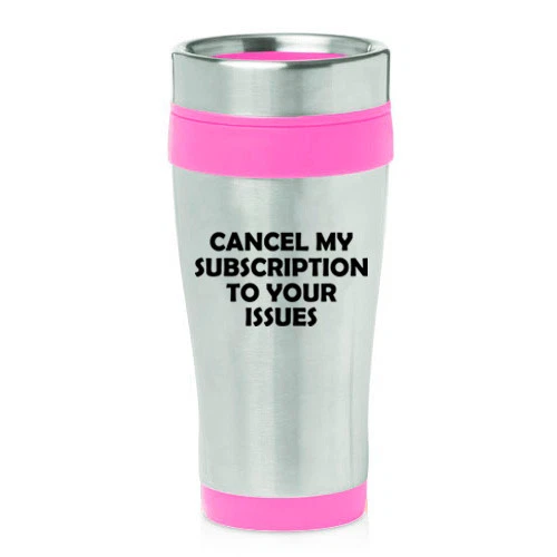 16 oz Travel Coffee Mug Cancel My Subscription To Your Issues Funny