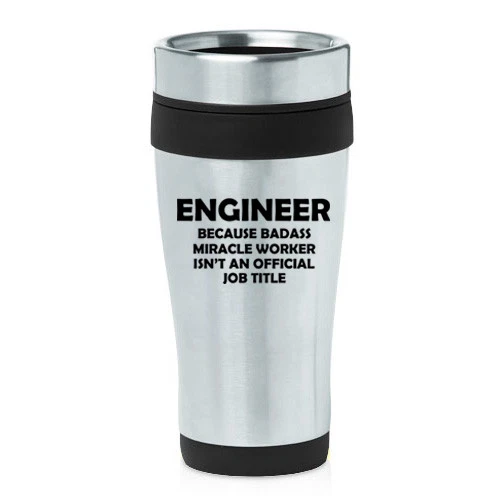 16 oz Travel Coffee Mug Engineer Miracle Worker Job Title Funny