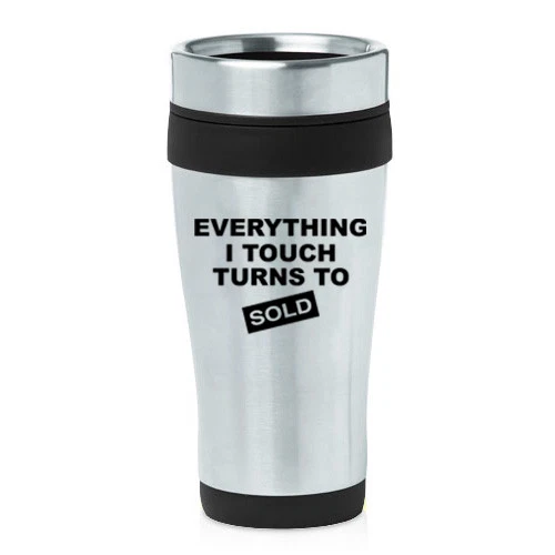 16 oz Travel Coffee Mug Everything I Touch Turns To Sold Sales Real Estate Agent