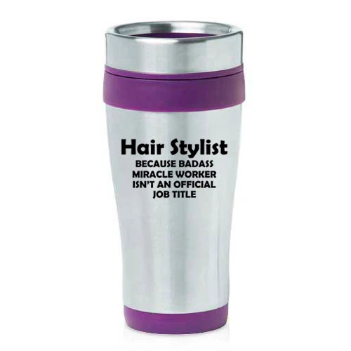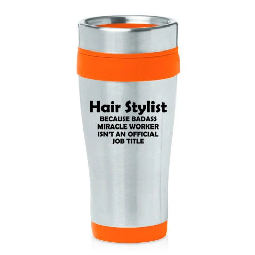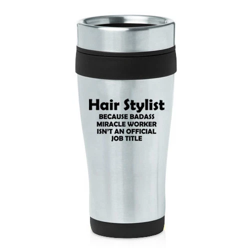 16 oz Travel Coffee Mug Hair Stylist Miracle Worker Job Title Funny