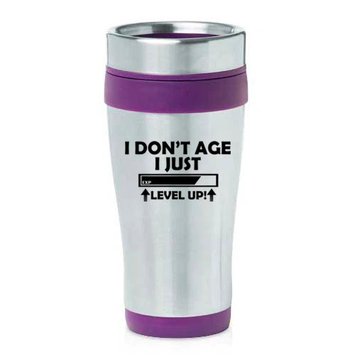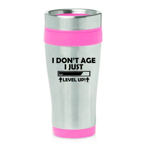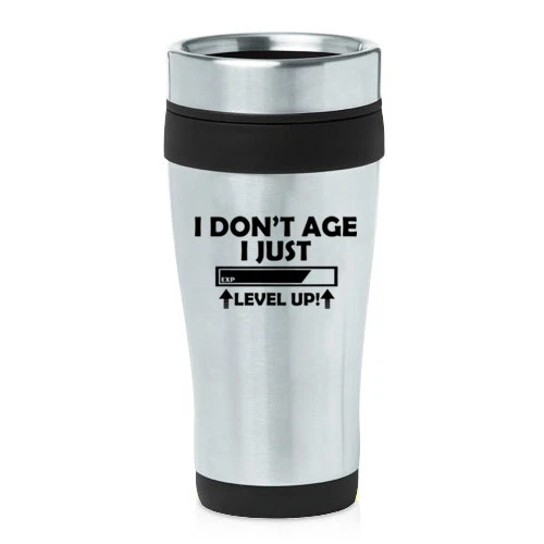 16 oz Travel Coffee Mug I Don't Age I Just Level Up Funny Birthday