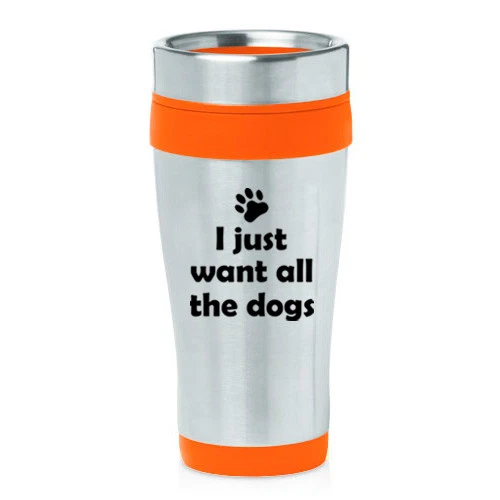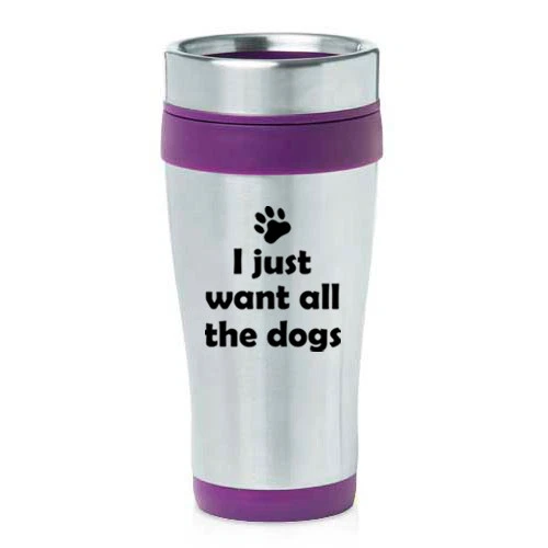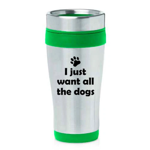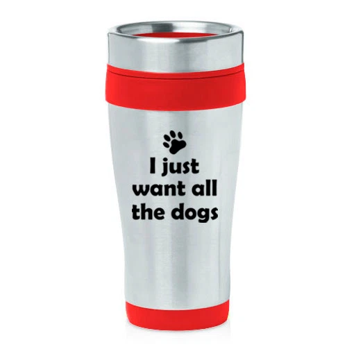 16 oz Travel Coffee Mug I Just Want All The Dogs Funny