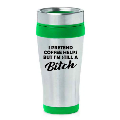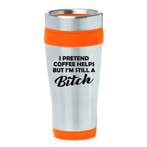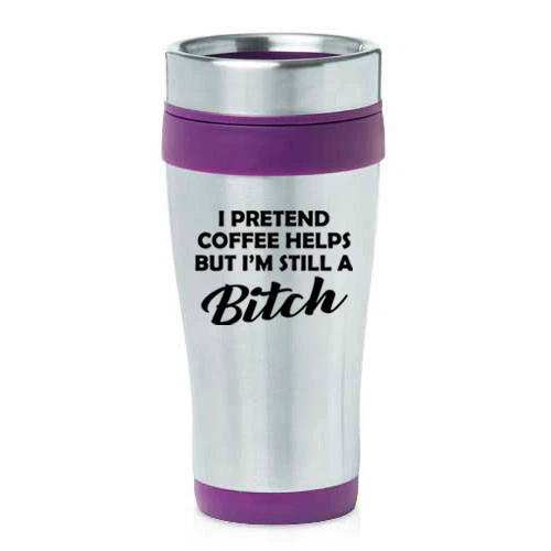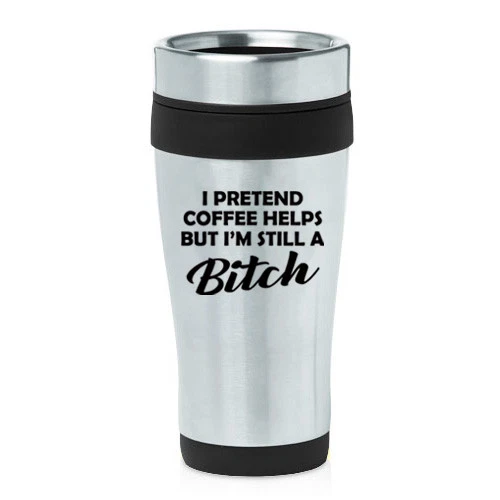 16 oz Travel Coffee Mug I Pretend Coffee Helps But I'm Still A Btch Funny