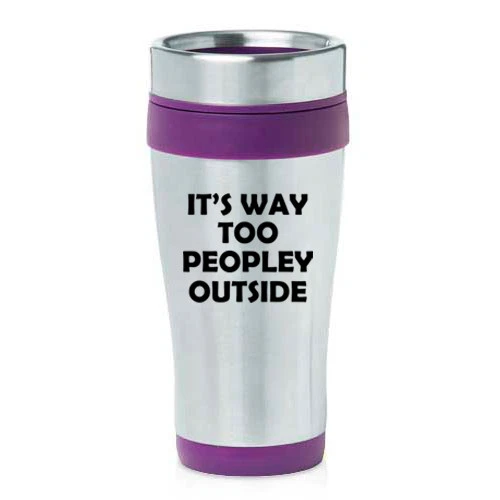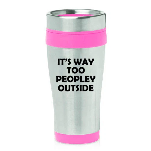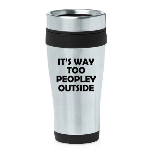 16 oz Travel Coffee Mug It's Way Too Peopley Outside Funny Introvert