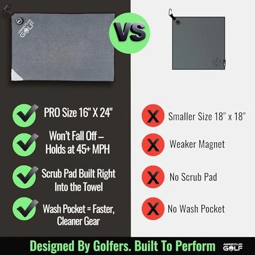 1. This magnetic golf towel is a game-changer! The strong magnet keeps it securely in place on my cart, and the waffle weave microfiber cleans clubs like a dream. Love the built-in scrub pad and wash pocket—super handy. Plus, it looks sleek in gunmetal grey. Fast shipping and great seller—highly recommend for any golfer!