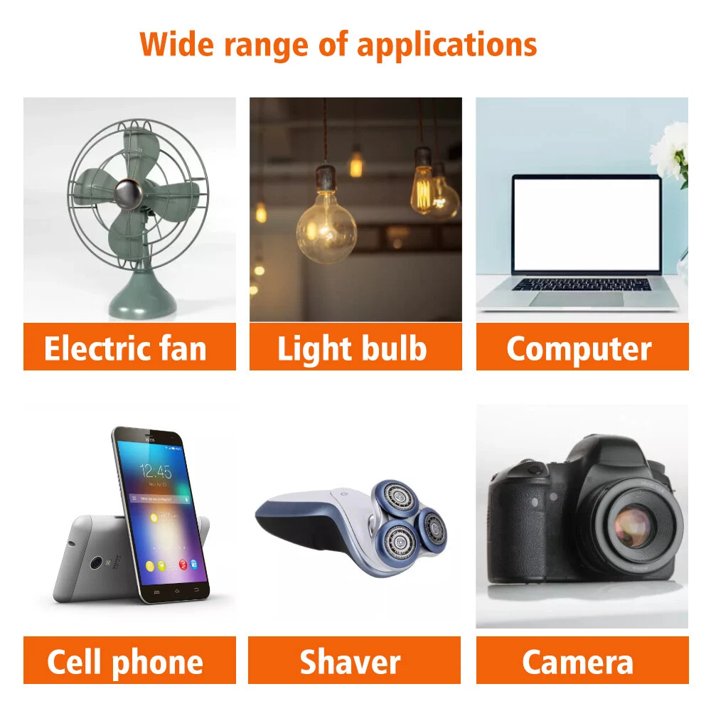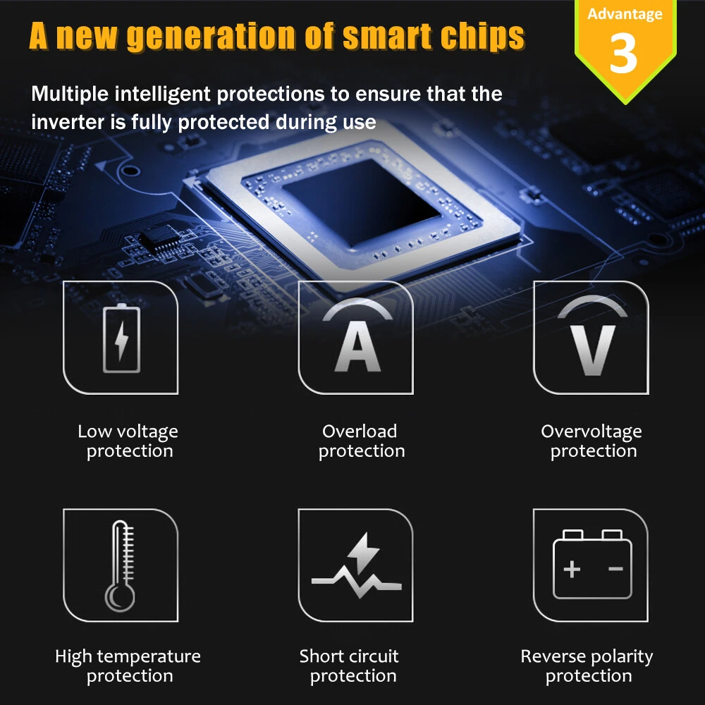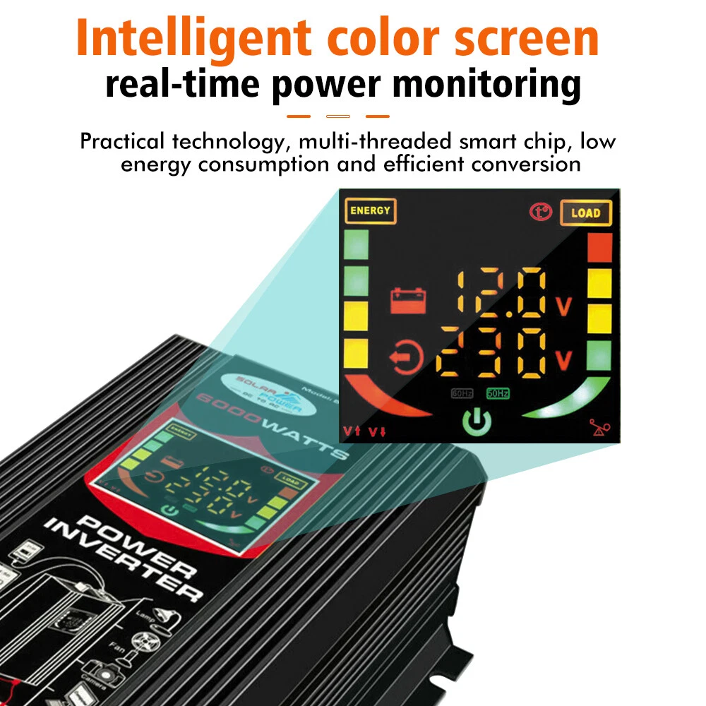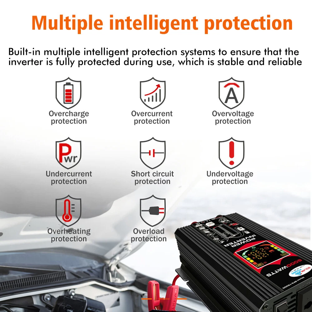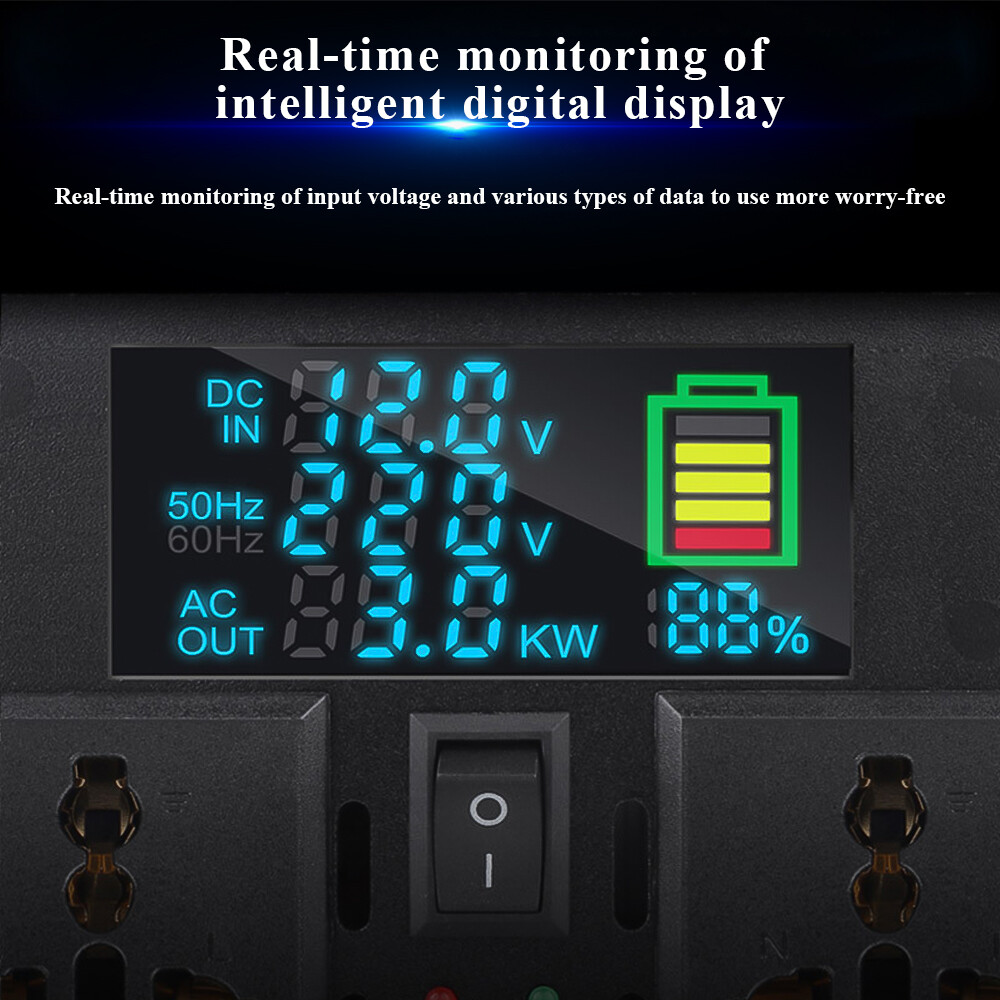 Logistics Tips: Dear customers, We are always working hard to ensure that orders are delivered on time. But inevitably there will be a very small number of orders may be delayed due to the worsening of the epidemic. If you have other problems or experience delays after purchase , please send us an email or leave a message on eBay, we will reply as soon as possible. Thank you for your support! A-1 6000W Power Inverter Note: Please pay attention to distinguish between peak and continuous output power. For example, the continuous power of 12000W peak is 6000W. Please refer to the description for details. Features: -The inverter can convert DC12V to AC 110V. -Overload, over temperature, short circuit, low voltage, overvoltage protection. -Stable and precise output voltage. -Built-in cooling fan with low noise. -This power inverter has Reverse input protection, High input voltage shutdown, Low input. -Voltage shutdown, Over temperature protection, Short circuit protection, Overload protection. -Perfect for TV, DVD player and other home appliances. -A must-have for your road trips, vacations, outdoors, emergency kit and more. Specifications: Color: Black Continuous Output: 8000W Peak power: 16000W Input voltage: DC12V Output voltage: AC 110V Wave Form: Modified Sine Wave Frequency: 50 ± 3Hz Clip length: 60 cm / 1.96 ft Car Charging Cable length: 50 cm / 1.64ft Note: Please allow slight deviation due to manual measurement. Package Include: 1 x 16000W Peak Car Inverter 4 x Fuse 1 x Guide line B-6000W Power Inverter Selling Points: 1. Increase the display screen for intelligent human-machine information exchange. Basically, you can intuitively understand the working status of the inverter and various working parameters in the display screen. For example: input voltage, output voltage, output frequency, battery power, load capacity Wait 2. Fault prompt function. In addition to different sound prompts, it can also be displayed more intuitively on the display screen. For example, battery undervoltage, battery overvoltage, heavy load, high operating temperature, output short circuit, etc. 3. The product has increased the overload delay shutdown function. It solves the sensitive problem of inverter protection when the soluble electrical appliance is started. For example: users can't afford a 50W LED light with a 300W traditional inverter or use a 500W inverter The converter can't carry a laptop and other problems. 4. The low-power non-professional user market has added the positive and negative return protection function. It solves the problem of return caused by the user's artificial connection of the wrong wire and burned out the inverter, and solves your after-sales worries. 5. Intelligent temperature-controlled oil-sealing fan. When the inverter is working, it will only work at a certain temperature, which is more energy-saving and quieter. 6, Digital MCU control, precise, accurate, fast, and intelligent; fine refers to the output waveform, and the frequency is more accurate. Quasi refers to the accurate output voltage; fast refers to the quick response of the protection circuit. specifications: Tang three generations 12V-110V black shell Output voltage waveform: correction wave Actual power: 500W (can be virtual standard (6000W)) Peak power: 1000W Input voltage: 12V Input voltage range: 9.5V-15.5V Output voltage: 110V/220V Output voltage range: 110V±10%/220V±10% Frequency: 50Hz/60Hz Inverter efficiency: 93% Circuit topology: exhortation No-load current: ≤0.7A Reverse polarity protection: Yes Low voltage protection: Yes, minimum protection voltage 9.5V High voltage protection: Yes, the highest protection voltage is 15.5V Over temperature protection: 60℃ Overload protection: Yes Output short circuit protection: Yes Output voltage regulation: Yes Use environment temperature: 30℃ Use environment humidity: dry bath Fan type: sealed oil Built-in fuse: 40A Protection automatic recovery: manual Protection buzzer: Yes USB interface: dual USB smart identification Input terminal wiring method: terminal Output interface: international universal socket Case material: plastic Product size (MM): 200*112*56 Keywords: Car Power Inverter Product packaging 1 converter 1 pair of black and red battery clips 1 cigarette butt 1 English manual Note: Suitable product types: electric fans, lighting, notebook computers, desktop computers, low-power electrical appliances such as razors, mobile phones, cameras, etc. Suitable for use; high-power appliances such as air conditioners, washing machines, microwave ovens, kettles, and water pumps cannot be used C-6000W Power Inverter Product Description: 1. [6000W Power inverter] Car power inverter with 2 USB ports and AC outlet. surge power: 6000W, the power inverter comes with free cigarette lighter and 2pcs battery clips, providing 300Watt continuous power, 6000watt peaks power (Please make sure that the total rated power of the connected devices is ≤ 300W). 2. [LED BATTERY DISPLAY] Battery Level Bar for LED Display shows the battery Capacity, which can remind you that when your battery no power. When connect the battery with inverter, this LED Screen work and show the real-time capacity of battery. It has five level (lattice) of the Battery Level Bar, and each lattice represents 20% of the battery power. When your battery is no power, the display will flash to remind you that you need to charge your battery. 3. [Fast Charging Dual USB ports] One AC Outlets and two USB ports can offer 100% fast charging for Mobiles phones, computers, laptop, breast pump, Nebulizer, Razors, medical rescue device, emergency equipment etc., can be as an Emergency Power Supply 4. [Multi Protection] Built-in fuses, safe charging design and cooling fan prevents the car power converter from over-heat, saving power and energy. over voltage, overload, over-current, short circuiting, under-voltage, overheating, short circuit protection. 5. [Lightweight design &Top Quality] Lightweight and compa