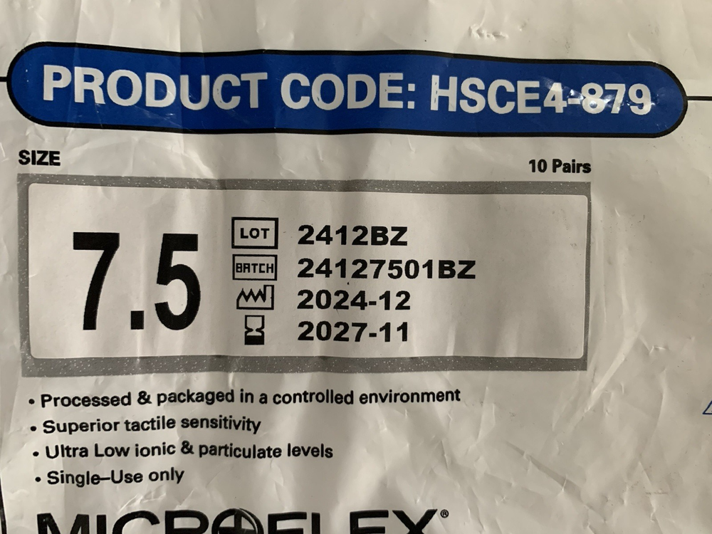 Ansell Microflex Latex Lab Gloves Sterile Hand Specific Powder Free Sterile ISO 4 Latex Gloves; 160 Pairs Size 7.5 MEDIUM I am selling a Lot of 16 Packages (each with 10 individually sealed pair of gloves) which is 160 pair of these gloves. Size Medium 7.5" Manufacture Date: 2024-12 Expiration Date: 2027-11