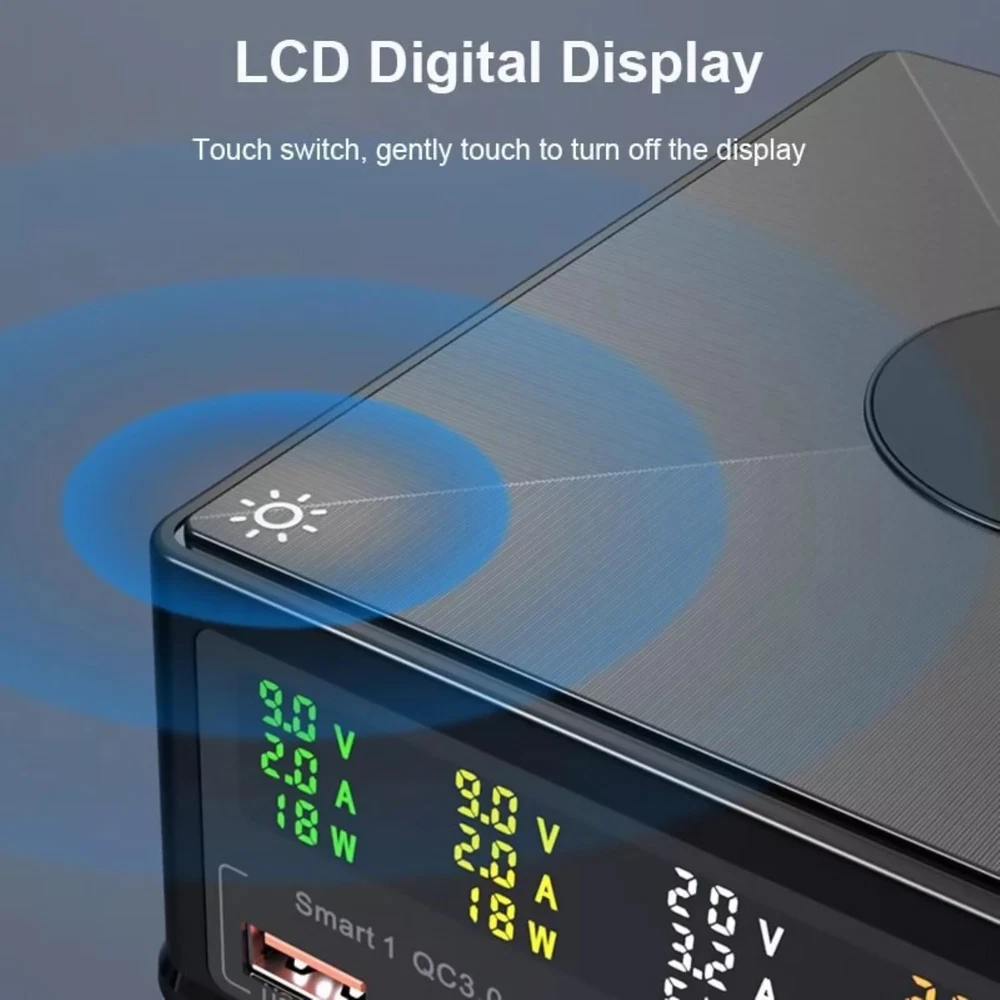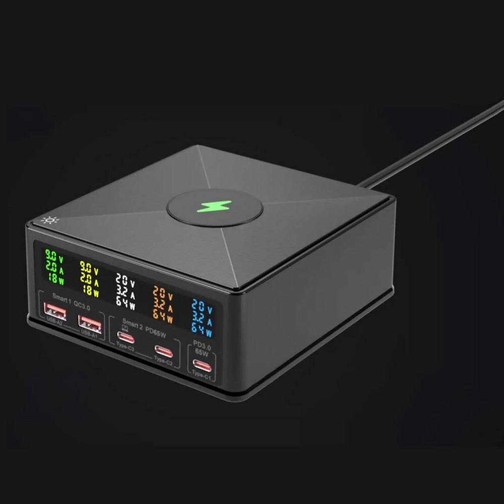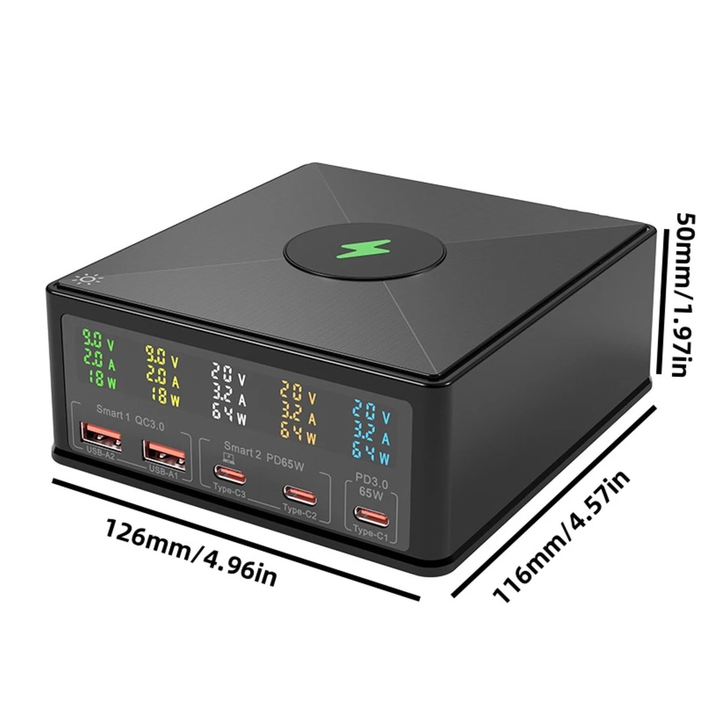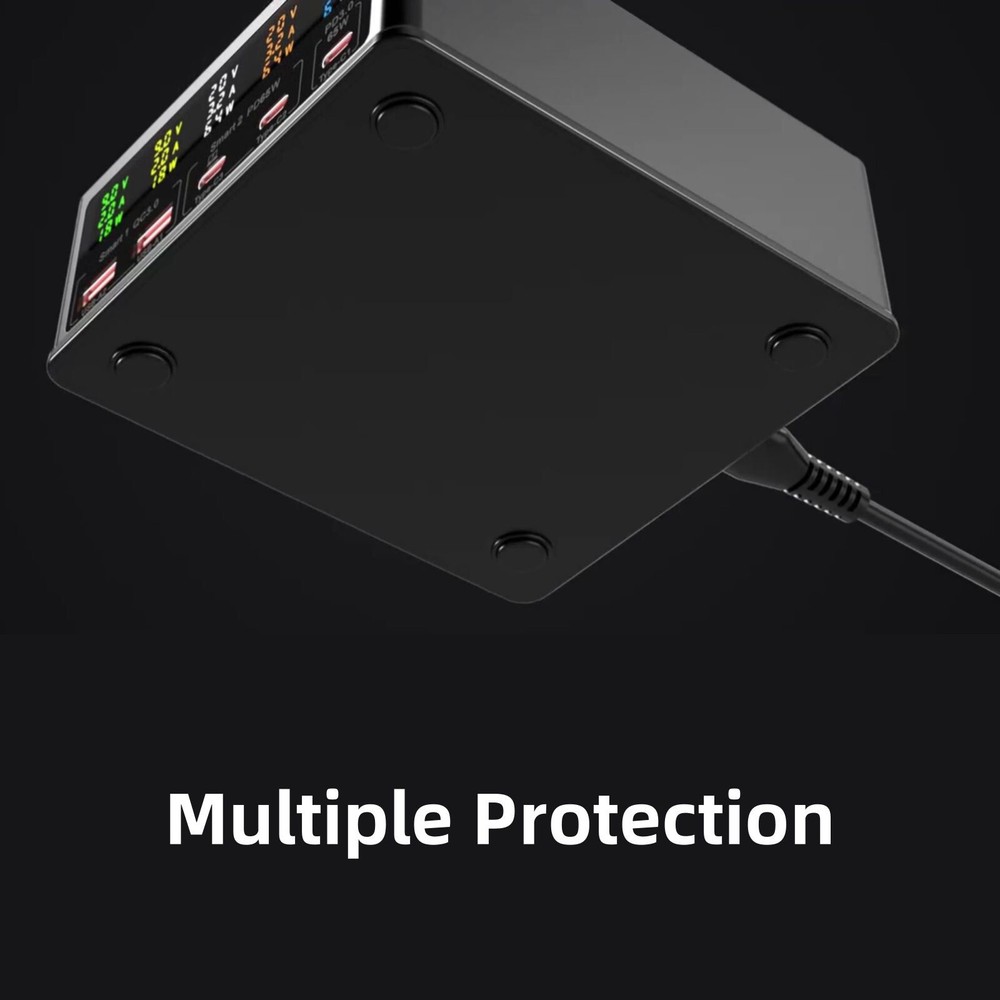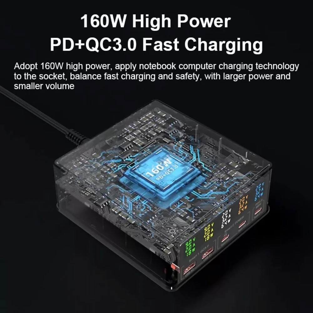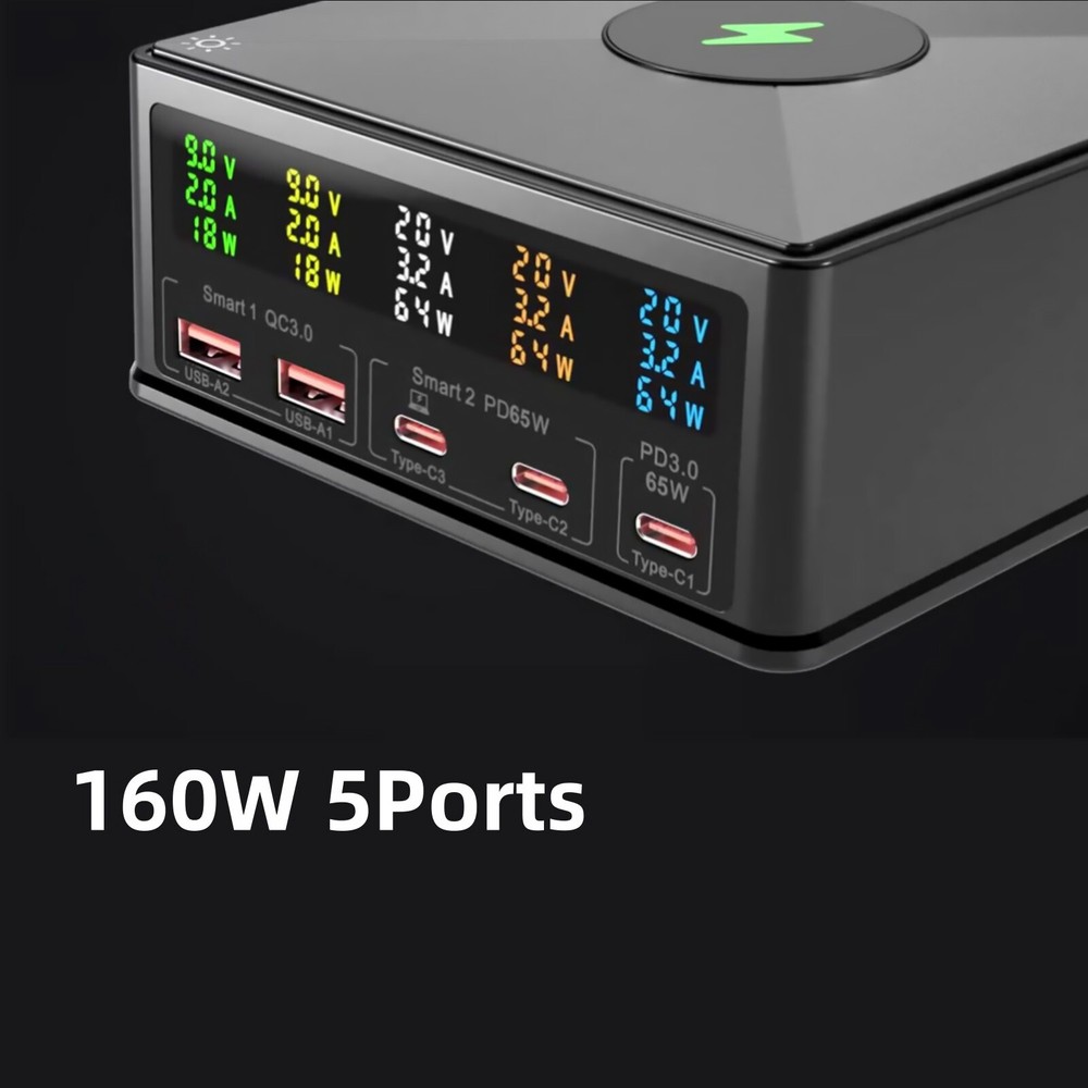 Product Description 160W 6in1 Wireless Fast Charger USB-C PD QC3.0 Charging Station For Huawei Features: High-Power Multi-Device Charging: This charger boasts a powerful 160W capacity and supports a 6-in-1 minimalist multi-charging design, effortlessly catering to the charging needs of various devices. Whether it's a For MacBook, For iPhone, or other compatible devices, it achieves efficient charging without the need for frequent charger swapping, bringing convenience to your life. Advanced Charging Protocols: Utilizing PD+QC3.0 charging protocols, it makes the charging process even more efficient. With a single port supporting PD65W fast charging, it can quickly replenish device batteries, meeting the charging demands of today's fast-paced lifestyle. Intelligent Power Allocation: Equipped with intelligent power allocation functionality, it automatically adjusts charging power based on the number and type of connected devices, ensuring optimal charging for each one. This design not only enhances charging efficiency but also extends device lifespan. Color LCD Display: Featuring a color LCD display, it precisely shows charging parameters such as voltage, current, and power. The readings are clear at a glance, allowing you to keep track of the charging status at any time for more convenient use. Safe Anti-Slip Design: The specially added silicone pad for wireless phone charging ensures the charger doesn't slip during use, safeguarding your devices and the charger itself. It also provides additional protection and stability for your phone. Multiple Protection Mechanisms: It incorporates multiple protection mechanisms including current protection, overvoltage protection, overtemperature protection, power protection, undervoltage protection, and short-circuit protection. These mechanisms ensure the charger's safety during prolonged, high-power operation, effectively preventing device damage or safety hazards due to unexpected situations. Specifications: Material: ABS+PC Color: Black Size: 126*116*50mm / 4.96*4.57*1.97in Input Voltage: 100-240V (50-60HZ) Ports Number: 5 (USB-A*2, Type-C*3) USB-A Output: (Max 18W) 5V/3A,9V/2A,12V/1.5A Type-C Output: (Max 65W) 5V/3A,9V/3A,12V/3A,15V/3A,20V/3.25A Wireless Charging: 15W/10W/7.5W/5W Total Output: 160W Power Cord Length: 120cm/47in Compatibility: For iPhone, for iPad, for MacBook, for Samsung, etc. Package Included: 1 x Charger 1 x Power Cord If you have any questions, please feel free to contact us via ebay. We usually respond within 24 hours. Payment Shipping Returns Contact Us We accept all verified payments from ebay. Orders will be shipped after receiving cleared payment. Payment due within 7 days after auction ends and for buy it now listings. We ship most of our orders within 24 hours, and may up to 48 hours for. If you want faster shipping way. Please contact us before making payment. Sometimes due to problems with our transportation company system, your shipping information may be delayed to update. We recommend that you try again after 3-4 days. If you still haven't checked the shipping information, you can contact us by ebay message. Always believe we can figure things out with communication, if it comes to return, the pacakge must be intact and the same as you receive. If you have any questions, please feel free to email our service specialists 24 Hours a Day, 7 Days a Week. We will reply you ASAP. Return/refund is accepted within 30 days after the buyer receives the item. NO exchange will be accepted after 30 days from the date when the item is received. Please contact us first before returning your product!!! If you have any questions, our Customer Service staffs welcome you to email us. We strive to answer all questions and resolve any problems as quickly as possible. You can contact us 7*24, we will reply at the first time, and we will surely solve your problems. Note: 1.We try our best to reply to your emails as soon as possible, however, due to high volume of daily incoming emails and time zone difference, we may not be able to reply your emails immediately. Please allow 1 business days for us to response. If you do not receive any reply from us, please check your email ensuring your mailbox has not reached full size. 2.Due to some ISP SPAM filter settings, you may not be able to receive our replies; if you have problems receiving our emails, you may need to use a different email account to contact us. 3.Please give us the opportunity to resolve any problem. We understand the concerns and frustrations you might have, and will try our best to resolve the issues. Please email us before leaving any negative feedback or open any dispute on PayPal. 4.We care about our valued customers, and will always try to help you. So if you have any problems, please e-mail us immediately. Payment We accept all verified payments from ebay. Orders will be shipped after receiving cleared payment. Payment due within 7 days after auction ends and for buy it now listings. Shipping We ship most of our orders within 24 hours, and may up to 48 hours for. If you want faster shipping way. Please contact us before making payment. Sometimes due to problems with our transportation company system, your shipping information may be delayed to update. We recommend that you try again after 3-4 days. If you still haven't checked the shipping information, you can contact us by ebay message. Returns Always believe we can figure things out with communication, if it comes to return, the pacakge must be intact and the same as you receive. If you have any questions, please feel free to email our service specialists 24 Hours a Day, 7 Days a Week. We will reply you ASAP. Return/refund is accepted within 30 days after the buyer receives the item. NO exchange will be accepted after 30 days from the date when the item is received. Please contact us first before returning your product!!! Contact Us If you have any questions, our Customer Service staffs welcome you to email us. We s