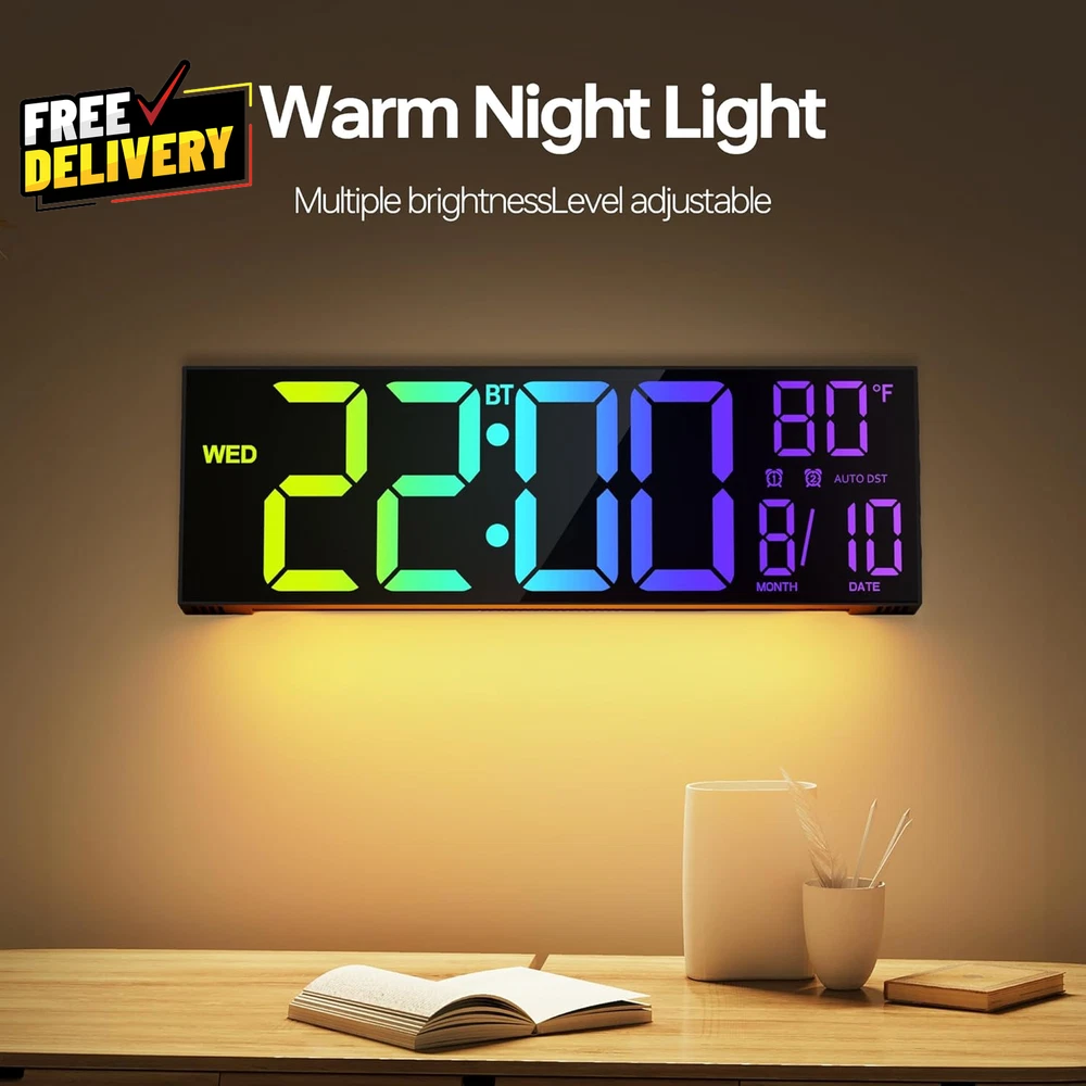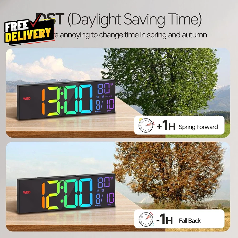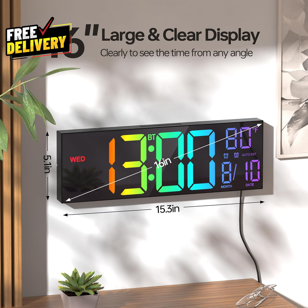 Store New Arrivals Add to Favorite View Feedback Contact 16.2 Large Digital Wall Clock with Bluetooth Sync Alarm Big LED RGB Color A..... Description 【Auto Bluetooth Time Synchronization】Automatically connects to your phone via Bluetooth to sync real-time settings daily, ensuring high accuracy without manual adjustments and makes the time setting very very easy. 【16.2-inch Large Colorful Display】Features a 16.2-inch screen with 8 color options (4 pure, 4 RGB), offering excellent readability from any angle or distance, making it especially user-friendly for the elderly. You can even freeze a certain color you like. 【Flexible Placement】Supports both wall mounting and desktop use, operable via remote control for convenience. 【Auto DST & Adjustable Brightness】Automatically adjusts for Daylight Saving Time and features a light sensor to adapt display brightness for optimal comfort. 【Modern Features with Temperature Display】Includes a bottom night light for a cozy ambiance and optional temperature display in °C or °F. 【Widely Use & Power Requirements】Powered by a 5V/2A adapter with memory battery backup to retain settings during power outages. Ideal for various occasions, like living rooms, office, warehouse, classroom, gym, and kitchen, garage, bedroom, shower. 【Ideal Gift】 With the user friendly large Digits, it's an ideal gift as Christmas Gifts for seniors, elderly, men and women. It's also suitable for birthday gifts, mothers day gifts, fathers day gifts, Valentine's Day and anniversary gift. Item model number PH01-T Style Modern Product Dimensions 16"W x 5"H Number of Items 1 Power Source Corded Electric Operation Mode Atomic Color Black + Bluetooth Room Type Living Room Item Weight 1.63 pounds Are Batteries Included No Theme Rainbow Frame Material Plastic Age Range (Description) Adult Mounting Type Wall Mount, Tabletop Size 16.2 inches Special Feature Daylight Saving Display Type Digital Indoor/Outdoor Usage Indoor ABOUT US Prior to making any purchase from our store, we’d like to introduce ourselves. My name is Shahzad Yaqub , and I am the proud owner of Epic Emporium Deals , located in the great state of Illinois, USA. I have been an active and trusted eBay seller since Jan 14, 2025 . At Epic Emporium Deals , we are committed to offering competitive prices and top-quality products . Our extensive collection features a wide variety of items, including media such as books, movies, music, and games , as well as electronics, toys, sporting apparel, clothing, tools , and general home and garden essentials —and much more! If you have any questions or require assistance, please don’t hesitate to reach out. Your satisfaction is our priority, and we look forward to providing you with an exceptional shopping experience. SHIPPING We are always working hard to ensure your package arrives as soon as possible. Please understand that some factors like weather, high postal traffic, and the performance of shipping companies are outside of our control. We offer free shipping to the lower 48 states and ship within 2 business days of payment, usually sooner. We do not accept P.O. Boxes. Please provide a physical address. For shipping outside of the continental USA, we only use eBay's Global Shipping Program. The item is shipped to IL and then sent to the rest of the world. International customers are responsible for all duties and taxes. Continue to 'check out' to calculate costs for shipping the item to your country. Messages regarding eBay's Global Shipping Program MUST be directed at eBay EXCLUSIVELY. RETURNS We do not accept returns under normal circumstances. However, we will gladly consider a return if the item is received broken or if the wrong size is sent to you. In all other cases, returns will not be accepted. CUSTOMER SATISFACTION We try our very best to make sure every customer is completely satisfied. If there's a problem, message us! We're happy to help.