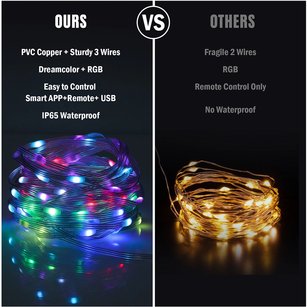16/33FT 50/100LED Strip Rope Light Tube String Garden Party Xmas Wedding Outdoor HOT POINTS: đ ăUSB POWEREDă NOT Battery Operated. It won't kill through your batteries. Benefit from the USB design, you can simply use a power bank to make it to be a portable string light and use it anywhere you want. You can hook it up to your existing phone USB charger and then plug it into the outlet. đĄ ă8 LIGHTING MODES & ADJUST BRIGHTNESSă Dimmable and Remote Control. 2 ways to control the light. Use either the blue switch button on USB or the remote controller to turn on/off the string light and to choose between the 8 blinking modes and the stay on mode. đ ăRGB 16 COLORS CHANGINGă Ollny rope lights offer 16 colors (red, pink, blue, yellow, orange, etc.) with more vibrant colors. More color options are available to meet different use scenarios and DIY ideas â±ïž ăREMOTE & APP CONTROLă The light string can be connected with the cell phone APP through Bluetooth, so you don't need to go near the light string to operate it in person, you just need to move your finger on the cell phone to realize the control of the light string. đ” ăMUSIC AND VOICE SYNCă Switch to music mode, you can choose your favorite music and the lights will bounce to the rhythm of your favorite song. Multi-color string light use microphone to detect and match the music to synchronize with the music, turning your space into a dynamic light show. (Cannot play music) đŠ ăWATERPROOFă With the IP65 rating the light string is protected from water jets. So it is rainproof and can be installed outside. Please note that the USB Plug should be protected for outdoor use. đ ăFLEXIBLE TO BEND INTO ANY SHAPEă This rope light is soft and can be flexibly use to decorate the outline of building, window, walkway, patio, garden, fence, porch, restaurant, clubs, pool deck, bar and more. đ ăNO NOISEă The light string components are of good quality, subject to current fluctuations and electromagnetic interference is less, in the working process is not easy to produce noise. đ ăINDOOR AND OUTDOOR USEă You can install the fairy string light on an outdoor tree or ladder, it can be used as Christmas tree lights, bedroom decorations, or to create a festive atmosphere for festivals, parties, weddings and so on PRODUCT PARAMETER Voltage: 5V Color Temperature: 3000K Number of Lamp Beads: 100LED/50LED Material: PVC Length: 10m/33ft , 5m/16.4ft PRODUCTS INCLUDE: 1x Light String 1x Remote Control Payment Delivery details Terms of sales About us Contact us Payment Payments: Paypal, Google Pay, Visa, Master Card, Amerian Express, Discover. Delivery details All items are shipped from US warehouse located at NJ . We ship to your eBay or Paypal address. Please make sure your eBay or Paypal address is correct before you pay. Terms of sales Free return About us Pls contact our customer service firstly if have any problems , we will help to solve the issue, and could offer free return service for full refund or free replacement after confirming. You can buy from us with confidence Contact us If have any problems, please feel free to contact us.