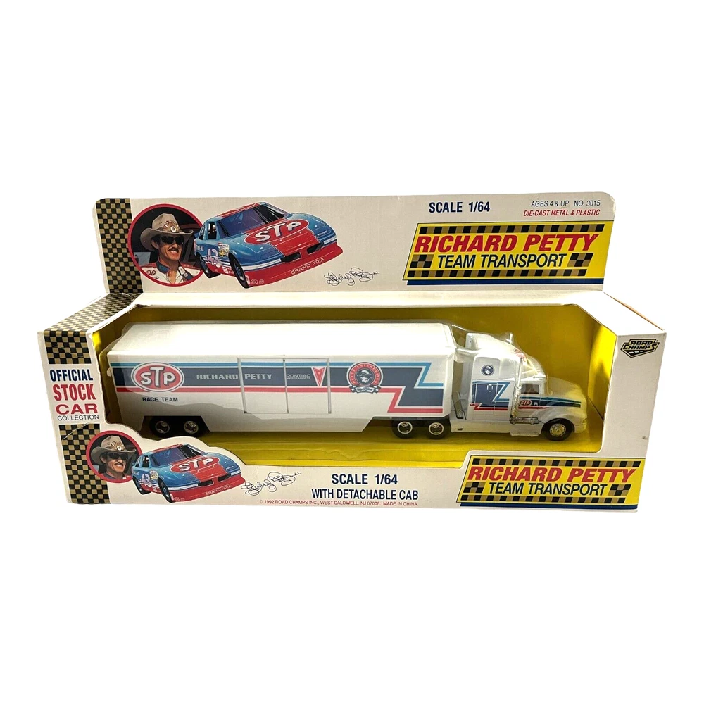 1:64 STP Richard Petty Team Transport Diecast & Plastic 1992 Road Champs Condition: New in package. Package has damage.