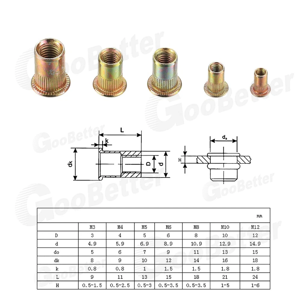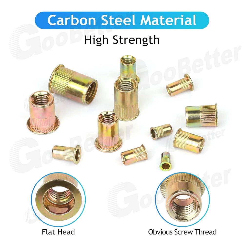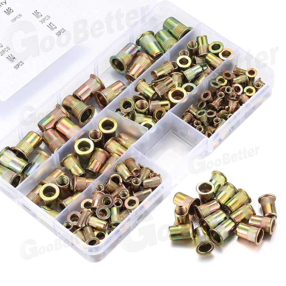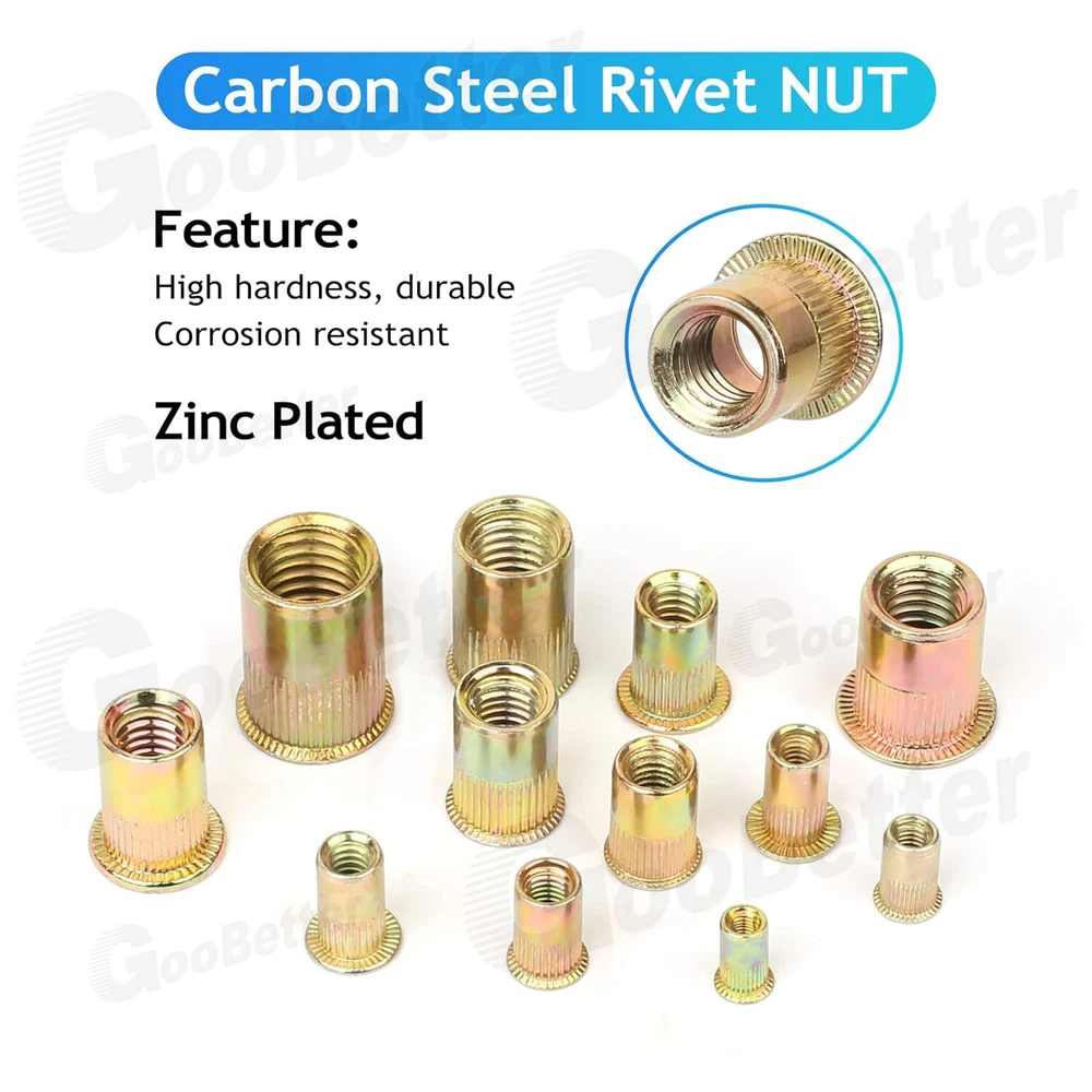 165x Carbon Steel Rivet Nut Kit Metric Rivnut Nutsert M3 M4 M5 M6 M8 Zinc Steel 165x Carbon Steel Rivet Nut Kit Metric Rivnut Nutsert M3 M4 M5 M6 M8 Zinc Steel ✅High-quality materials: Rivet nuts are made of carbon steel, with zinc plated on the surface, strong and durable, you will no longer worry about them rusting and breaking when installing.Most importantly, they are non-toxic and pollution-free environmentally friendly products. ✅Reasonable design: Our rivet nuts are knurled having flat and deep threads, which are easy to fix and have good anti-skid effect. ✅Quantity: 165Pcs rivet nuts with various sizes in a durable transparent box, it contains 5 sizes selected for you, includes: M3 x 50pcs, M4 x 50pcs, M5 x 30pcs, M6 x 20pcs, M8 x 15pcs. ✅Easy to use: The operation process is simple and labor-saving, saving your time and energy. You can choose a special rivet nut tool to fix the rivet nut according to the riveting strength and size. ✅Application:It is usually used in various metal sheets, pipes and other manufacturing industries, and widely used in the assembly of electromechanical and light industrial products such as automobiles, aviation, railways, refrigeration, switches, instruments, furniture, elevators and decoration. Specification: Product Name: Rivet Nut Kit Material: Carbon Steel, Zinc Plated Type: Flat head, Knurled body Color: As shown Size: M3/M4/M5/M6/M8 Package Size: 17*9.8*2.3cm Quantity: 165 pieces Package included: M8 - 15 Pieces M6 - 20 Pieces M5 - 30 Pieces M4 - 50 Pieces M3 - 50 Pieces Tips: 1) Due to different lighting and screen settings, the item's color may be slightly different from the picture. 2) Due to different manual measurement methods, please allow a small size difference. Brand GooBetter MPN Does Not Apply Material Carbon Steel, Zinc Plated Thread Size M3 M4 M5 M6 M8 Model Allen Key Socket Screw Size M3 M4 M5 M6 M8 Type Hex Nuts System of Measurement Metric Head Type Flat Unit Quantity 165 On Jul 16, 2024 at 19:23:08 PDT, seller added the following information: