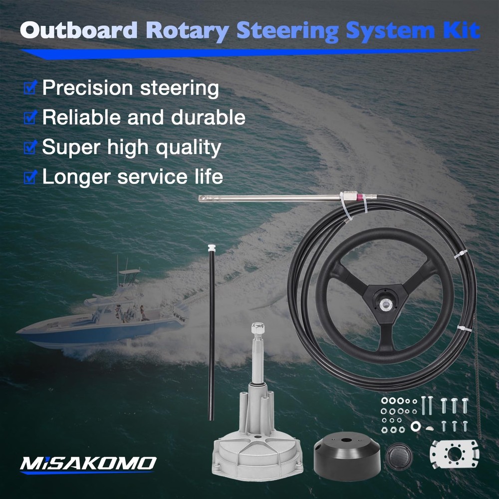 Why you change this 16 ft outboard rotary steering system? -Durable and reliable -Super high quality -Longer service life -12 month warranty Including: A 16 ft steering cable, a standard 3/4" tapered shaft, a swivel helmet, a 12.5" steering wheel, a 90-degree bezel kit, and hardware (provides simple snap on cable connections and different installation hardware, eliminating the need for separate parts configuration). Wide application: Replace for mechanical/manual steering of yachts, fishing boats, and other water transportation vehicles. 【NEEDS】As time goes by, your ship may encounter difficulties in turning and inaccurate steering. Simply replace this 16FT rotary steering system to meet the precise steering requirements of different types of rudder and oil cylinders, and adopt a flat steering design for more robust control. 【PREMIUM QUALITY】Long life-span matters, that is why our 16 feet outboard rotary steering system is composed of high-quality alloy material, which can effectively prevent corrosion and rust, and rotary rudder is rust proof and wear-resistant greatly increase the service life. 【PACKAGE INCLUDING】Outboard rotary steer system comes with a 16 ft steering cable, a standard 3/4" tapered shaft, a swivel helmet, a 12.5" steering wheel, a 90-degree bezel kit, and hardware (provides simple snap on cable connections and different installation hardware, eliminating the need for separate parts configuration). 【WIDE APPLICATION】Boat rotary steering system is suitable for mechanical/manual steering of yachts, fishing boats, and other water transportation vehicles. It enables accurate maneuvering of ships and improves work efficiency. Controlling your boat well. 【12-MONTH WARRANTY】 If for any reason at all, you are not fully satisfied with the 16 ft boat steering control cable system, simply contact us through amazon message at any time. We will provide comprehensive quality assurance for our product.
