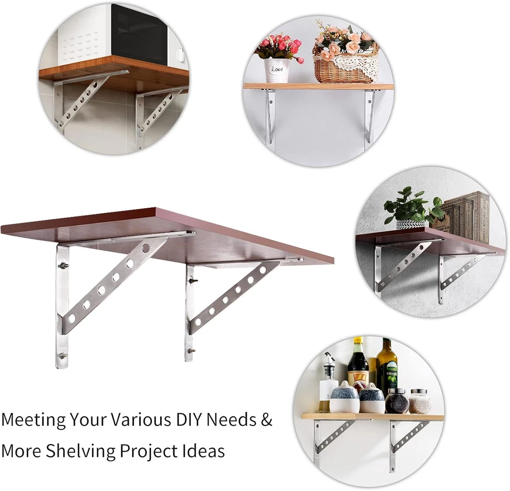 These stainless steel shelf brackets are rock-solid and look sleek! They easily hold heavy items without bending, and the 16-inch size gives great support for deep shelves. Installation was quick—no wobbling, just sturdy reliability. Perfect for organizing garages, pantries, or stores. Love that they’re rust-resistant too! Worth every penny.