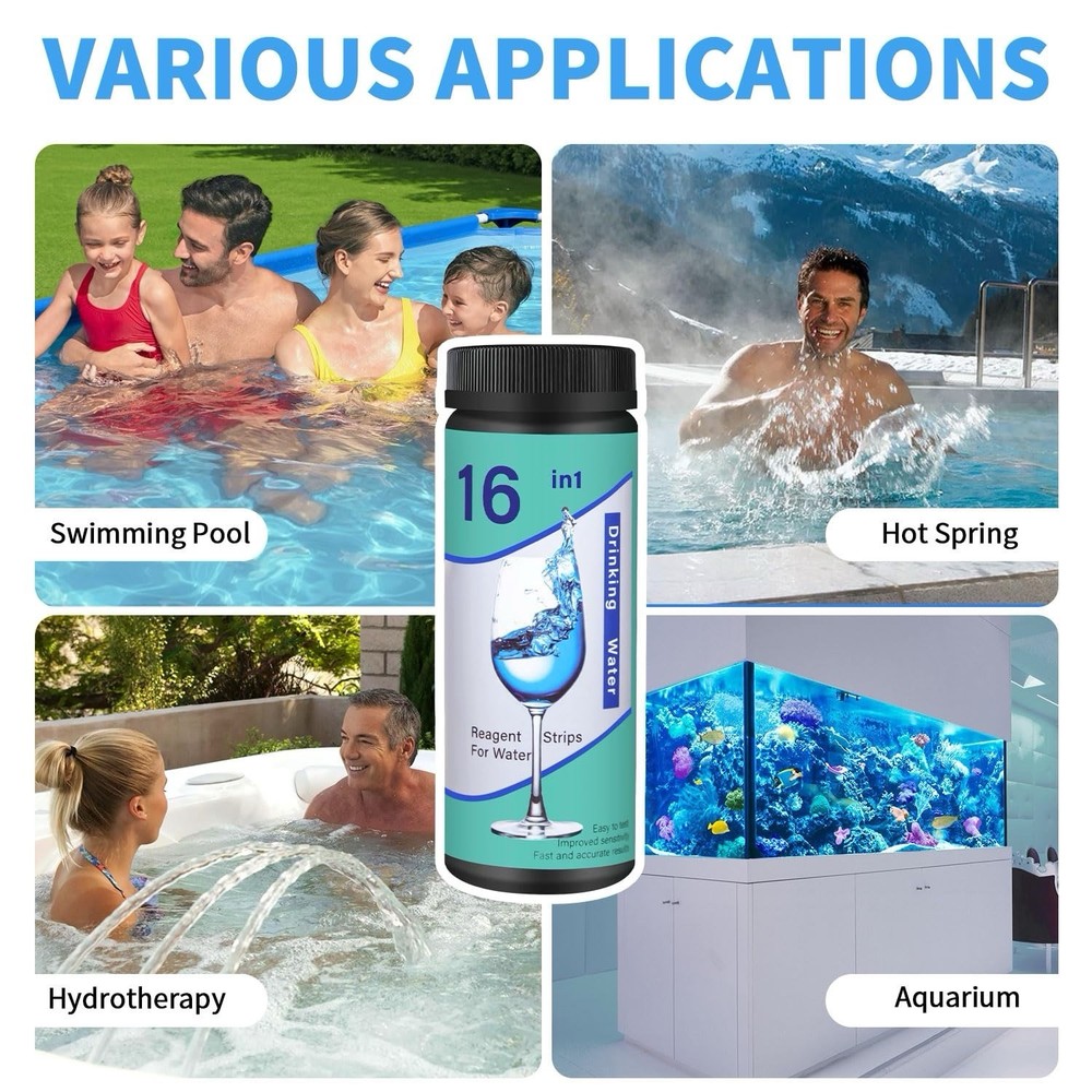 The 16-in-1 Water Test Kit by No Brand (FUNESS) includes 150 strips for testing drinking water, hardness, pH, chlorine, and more. This compact kit measures 10 x 7 x 0.5 inches and weighs 3.53 ounces, making it easy to use and store. The pH range of 0-14 ensures accurate readings, while the unit count of 1.0 provides a comprehensive analysis of your water quality. Manufactured by FUNESS in China, this water test kit is a reliable tool for monitoring and improving the quality of your water.