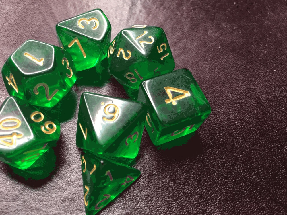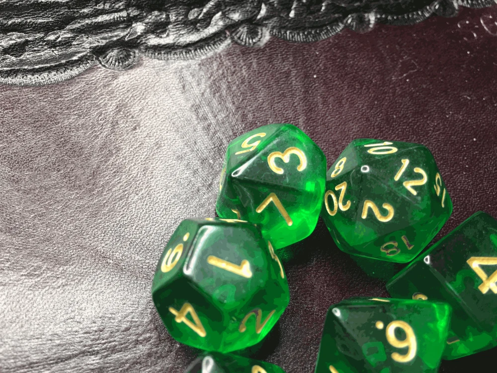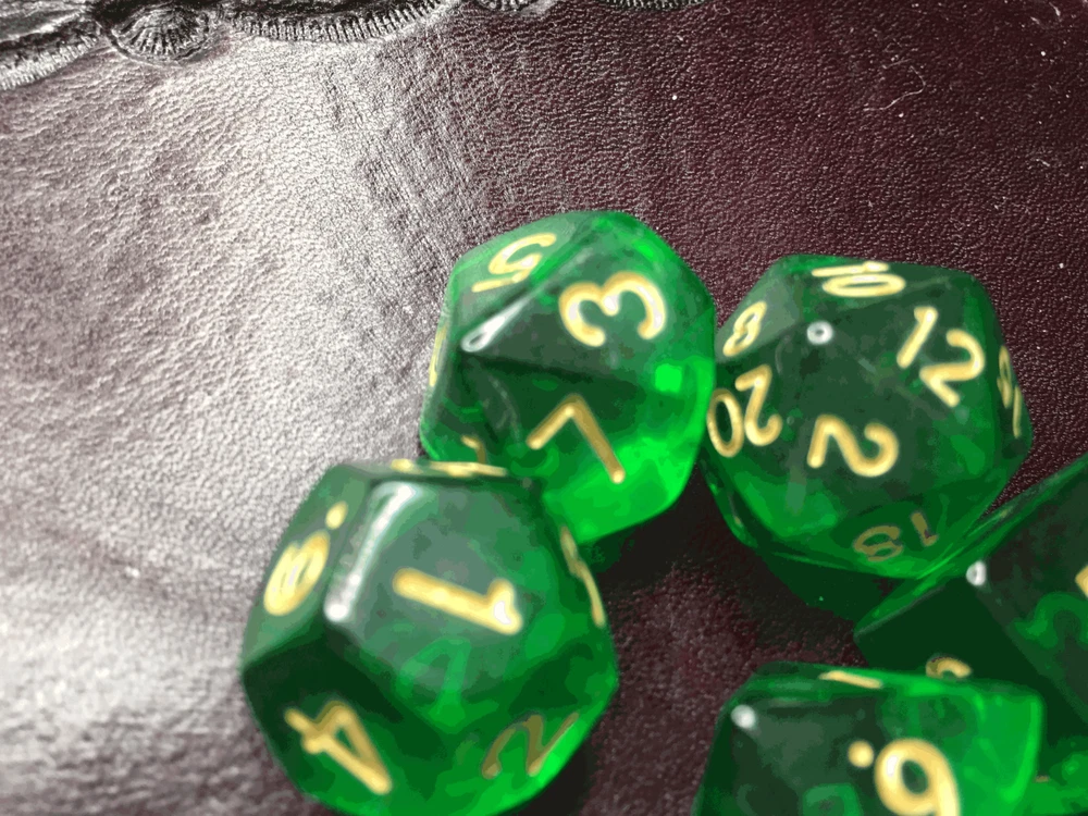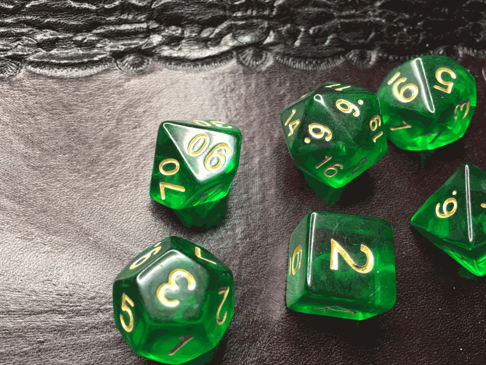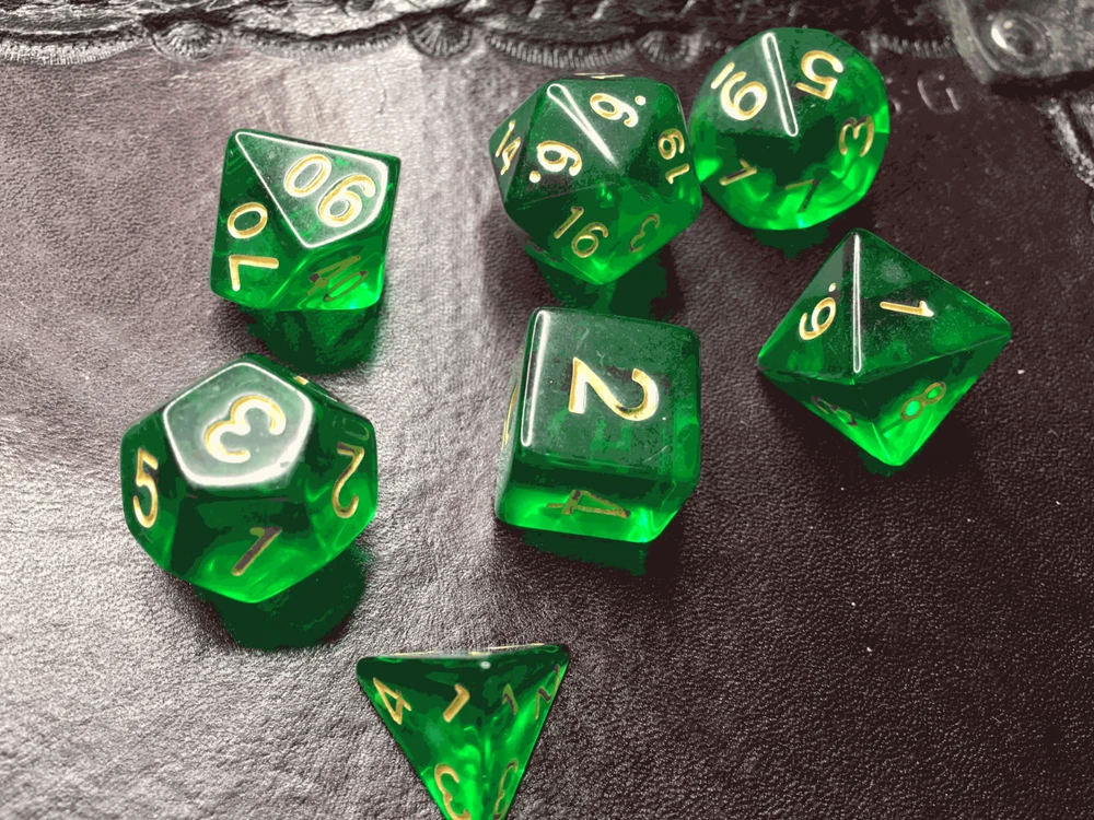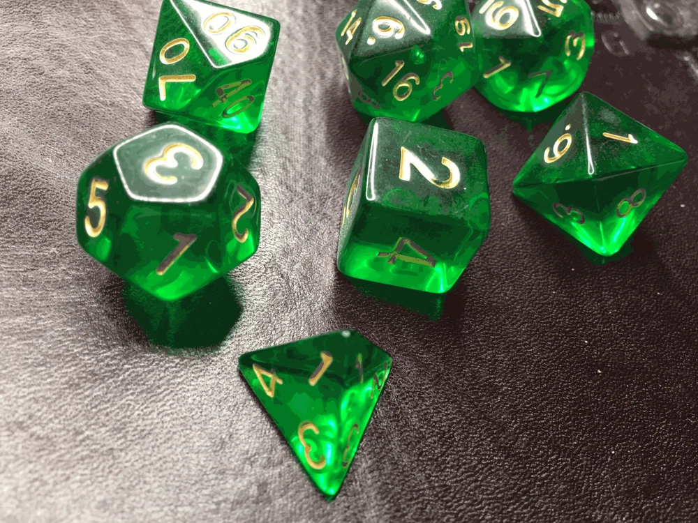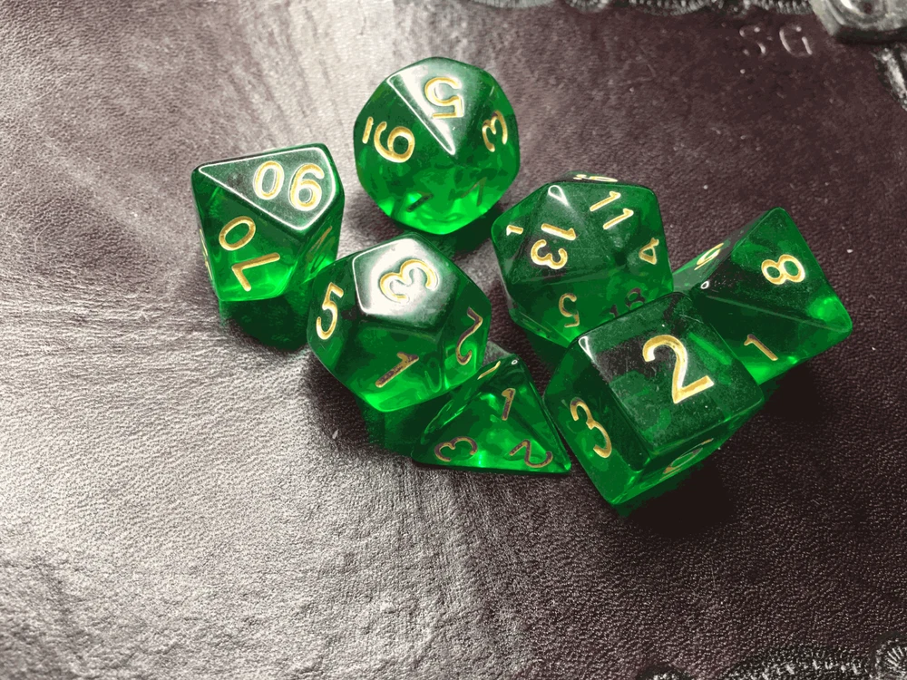 16mm 7 Die Polyhedral Dice Set Sylvan Spirits deep emerald hue of absinthe Sylvan Spirits, named by Eldhrimer, has the deep emerald hue of absinthe. Great for Tabletop games and Role Play Games Like Dungeon and Dragons, White Wolf, GURPS, and more! I sometimes hear "He (She, Her, Him, I, etc), have too many dice". And I think... Do you have a set in EVERY room? Every vehicle? And that you always carry with you? Because you can use dice for everything! Bathroom... Which Shampoo do I use? Roll it! Living Room... An argument with the wife about what to watch? Roll it! Car... Hit road construction and not sure which way to detour? Roll it! In the bedroom and not sure if you should continue to do what your about to do? Roll it! What Pizza to order, flavor of lubrication to use, game to play, book to read, or any of other choices you make thousands of times a day that you may be able to go more than one way on... spice it up and have dice handy to help make it for you! Given that dice can get lost, and your never sure what you may need, I would recommend 2-3 sets in every room and vehicle to be extra safe! *Warning, Choking Hazard I Charge ACTUAL Combined Shipping! Yes, I do combine shipping on my items! Please do not pay right away if you plan on combining purchases. Ignore the automatic one Ebay generates and wait for me to send you a manual invoice with shipping combined at lower amounts. Thank you -Made out of a type of polyresin/plastic -Yes, we combine shipping. eBay does it automatically. Learn how here: https://www.ebay.com/help/buying/paying-items/shopping-cart?id=4360#section1 This is typically accurate. I know of a few instances when it is not, so if it seems high, message us, and we will review it for you.