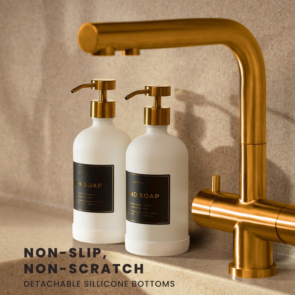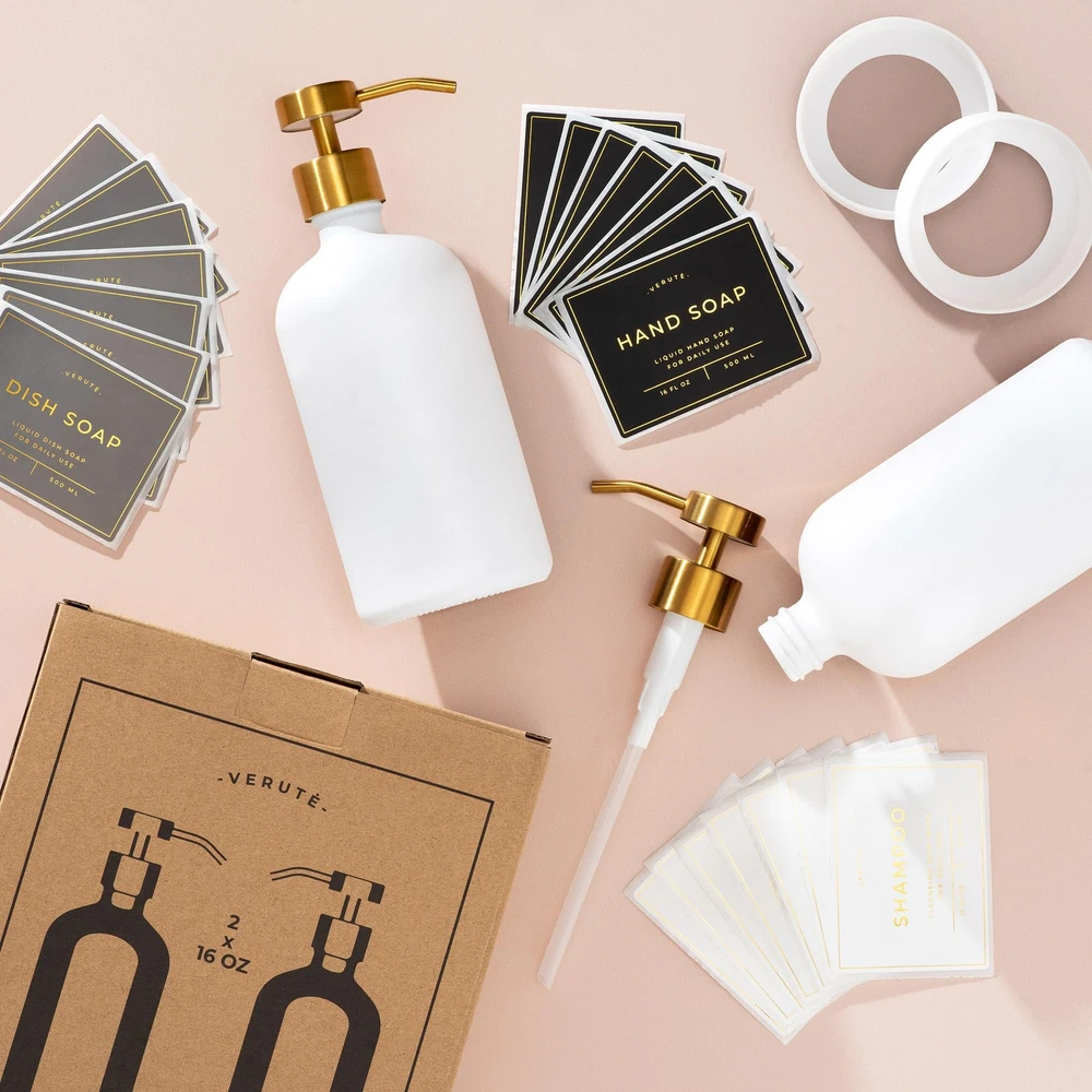Looking for the perfect housewarming gift? Moving into a new home is always a special moment. Whether it’s for your friend, family, or colleague, it’s important to show your support through a lovely present. Your gift should serve as a fantastic addition to their new space to help them settle in. It should also be stylish, durable, and functional. Enrich your loved one’s interior with the Set of 2 Refillable 16oz Glass Bottles! Our Matte White glass 16oz Boston round dispensers bring modern style to home organization. Perfect for bathroom and kitchen use, these containers are great for storing hand soap, dish soap, lotion, and face wash. Each set of 2 is packaged in an elegant box, making it gift-ready for housewarming parties, Christmas, Thanksgiving, or any special occasion! Not only are these bottles easy on the eyes, but they’re also a breeze to use. They’re secured with a brushed gold stainless steel pump that’s designed to smoothly dispense products without clogging. Our set also comes with 12 waterproof sticker labels in white, gray, and black colors. These stickers won’t peel, even if they’re exposed to moisture or heat. Even better, our containers are built tough using thick glass that won’t break or get damaged easily, so your loved ones can reuse them for years to come. They even come with durable non-slip silicone pads to keep them from slipping or sliding on wet surfaces. These pads also help shield your counters from damage. Here are more reasons you should get these bottles: An eco-responsible choice Easy to clean and maintain Safe, lead-free materials Get sophisticated containers for your modern home. Add the Set of 2 Refillable 16oz Glass Bottles to your cart TODAY! ORGANIZE YOUR HOME - Inside the set: 2 16oz glass bottles for your creams and liquid soaps; hand soap, dish soap, lotion, body wash, conditioner, shampoo and face wash labels in white, gray, and black colors; and 2 silicone trays. DISPENSING MADE EASY - Fill these kitchen sink bottles with your products and dispense them with one press. Our containers have a brushed gold stainless steel pump that allows liquid to flow smoothly. ADD STYLE TO YOUR SPACE - Matte White glass Boston round pump bottles will add an elegant touch to your bathroom and kitchen countertops. A LONG-LASTING LUXURY - Crafted using thick, lead-free glass, our durable shower bottles won’t get damaged easily. Use the stylish and non-slip silicone trays to protect your counter from scratches. A THOUGHTFUL GIFT - Give loved ones the gift of style and organization. Our glass pump bottle set comes in a beautiful packaging, making it a fantastic present for housewarming and special occasions.