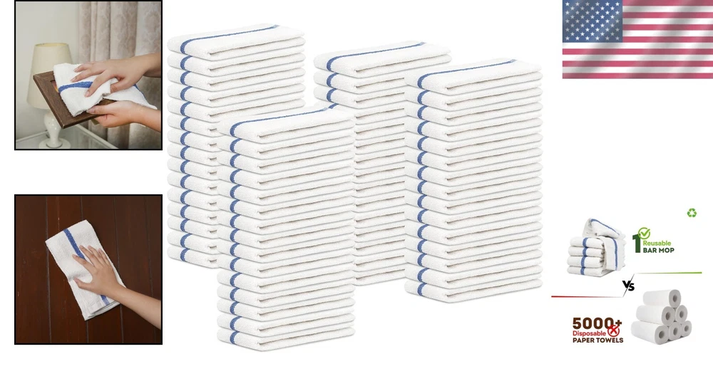16x19 Pack of 60 Blue Stripe Bar Mop Cloths - Perfect for Home & Restaurants ‹ › ‹ › ‹ › ‹ › ‹ › ‹ › ‹ › ‹ › ‹ › ‹ › 16x19 Pack of 60 Blue Stripe Bar Mop Cloths Perfect for Home & Restaurants Features: Made from a blend of recycled cotton cloth, collected from post-consumer waste. Eco-friendly and sustainable, reducing waste and promoting sustainability. Durable and long-lasting, serving as the best alternative to disposable cleaning products. Strong and absorbent, ideal for cleaning spills and surfaces in various settings. Perfect for restaurants, bars, and commercial kitchens, ensuring cleanliness and efficiency. Standard size: 16" x 19". Available in packs of 24, 36, and 60 for your convenience. Machine washable and reusable for long-term use. Benefits: Reduces the need for disposable cleaning products, promoting a sustainable cleaning solution. Super absorbent fabric efficiently mops up spills without leaving streaks. Perfectly designed for wiping down counters and kitchen equipment, enhancing efficiency in any setting. Support a cleaner environment while benefiting from high-quality, functional cleaning tools. Feel good about your choice—each cloth contributes to a reduction in waste. Why choose our Blue Stripe Bar Mop Cloths? Transform your cleaning routine with our 16x19 Blue Stripe Bar Mop Cloths, crafted from recycled materials to provide an eco-friendly, durable alternative to traditional cleaning products. As you eliminate the need for disposable towels and sponges, you'll not only save money but also contribute to a sustainable future. Ideal for both home and commercial environments—whether you're wiping down surfaces, mopping up spills, or polishing dishes, our bar mop cloths are designed to perform exceptionally in every task. With practicality at their heart and sustainability as their mission, these cleaning cloths support your efforts to maintain a cleaner environment. Join us in making a difference, and elevate your cleaning experience with our eco-conscious bar mop cloths today! Shipping Free & Fast Shipping - We offer free shipping to most of the USA with a normal delivery time of 3-7 days. However, due to the current situation, additional delivery time (up to 3 weeks) may be required for some items. Alternative Carriers - We may use alternative carriers (e.g. USPS, FedEx, UPS, etc.) to ensure your package arrives safely and on time. Due to the use of multiple carriers, we are unable to provide a tracking number automatically. Handling Time - Orders are processed and shipped within 1-2 business days of receiving cleared payment. Shipping Restrictions - Shipping to Alaska, Hawaii, Puerto Rico, Guam, and other US territories may incur shipping charges or delivery restrictions. Please contact us before ordering, or your order can be refunded/cancelled. State Restrictions - There may be restrictions based on your state of purchase. For example, certain items may not be shipped to California due to state regulations. Contact for Tracking Updates - If you require tracking updates or have any concerns about the delivery of your order, please feel free to contact us, and we will be happy to assist you. Return 30-Day Hassle-Free Returns - We want you to be completely satisfied with your purchase. If you are not, you can return the item within 30 days of receiving it for a full refund or exchange. Easy Return Process - To start a return, simply contact us and we will provide you with a prepaid return shipping label and detailed instructions. Restocking Fee - There are no restocking fees for returns. However, the buyer is responsible for return shipping costs if the return is not due to a seller's error. Refund Processing Time - Refunds will be processed within 5 business days of receiving the returned item in its original condition. Payment We accept all major credit cards, PayPal, and Apple Pay for your convenience. Your payment information is secure and encrypted to ensure a safe and seamless transaction. Please complete your payment within 3 days of purchase to avoid any delays in shipping. Feedback Your feedback is extremely important to us. We strive to provide the best products and customer service possible. If you are satisfied with your purchase, please take a moment to leave us a positive review. If you have any concerns or issues with your order, please contact us before leaving negative feedback. We are committed to resolving any problems and ensuring your satisfaction. Contact Us If you have any questions or concerns, please feel free to reach out to our customer support team. You can contact us through the eBay messaging system. We are available Monday to Friday, 9:00 am to 5:00 pm EST, and we will do our best to respond to your inquiry within 24 hours. Thank you for supporting our small family business! UPC: Not Set Unit Quantity: 60 Material: 100% Cotton,Cotton,Recycled Cotton Cloth Theme: Kitchen And Eco-friendliness Occasion: Multipurpose Set Includes: Dishcloths,Cleaning Rags Character: Not Set Features: Machine Washable,Eco-friendly,Sustainable,Reusable,Super Absorbent,Durable Brand: Unbranded Color: Blue Type: Dishcloth Pattern: Striped Number of Items in Set: 60 Character Family: Not Set MPN: Not Set Style: Casual Country/Region of Manufacture: Not Set Care Instructions: Not Set Item Length: Not Set Item Width: Not Set Model: Not Set Unit Type: Unit Personalize: Not Set