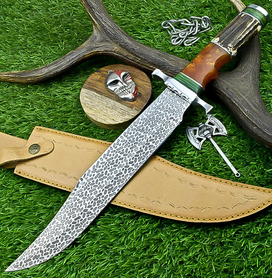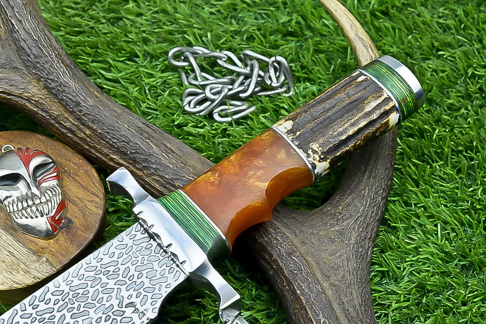 EXCLUSIVE HANDCRAFTED J2 STEEL BLADE HUNTING KNIFE SKINNING KNIFE, BOWIE KNIFE, CAMPING KNIFE EDC Product Details: Overall Length: Approximately 17.00" inches Blade Material: J2 Steel Blade Hardness: 54-58 HRC Blade Thickness : 4mm Size Verification: To help you easily determine the size, we've included images with a scale for precise dimension reference. Thank you for your understanding. We appreciate your consideration. Handle Material: Stag and Resin with hand casted steel bolster / Guard Included Accessories: Sheath For International Customers: We kindly advise our international customers to familiarize themselves with their country's regulations prior to making a purchase. If customs in your region request customs duties, please be prepared to cover these costs. Regrettably, we cannot assume responsibility, nor issue refunds in such cases. AGE LIMITATION: Please note that we exclusively sell knives to individuals who are 18 years of age or older. Additional Details: Leather Sheath (if pictured): Rest assured, this item comes with a superior-quality, sheath. Crafted with meticulous hand-tooling and stitching, it exemplifies fine craftsmanship and is designed for exceptional durability. The added stitching ensures it withstands years of demanding use, providing reliable protection for your knife throughout its lifetime. Care and Maintenance: When necessary, use a Diamond Wet Stone or a superior sharpening tool to maintain a 20-degree blade edge. After use, clean the item with soap and water, ensure thorough drying, coat it with gun oil, and store it separately from the sheath. Leather absorbs moisture from the air and can lead to blade rust if stored improperly. Customer Feedback: Your satisfaction and feedback are of utmost importance to us. We genuinely appreciate your positive reviews! When assessing shipping time, please consider international transit. Your recognition bolsters our confidence to enhance our services. If you encounter any issues with your order or product dissatisfaction, please reach out to us first. We are committed to resolving any concerns to your satisfaction and kindly request you not to leave neutral or negative feedback. Payments & Returns: All accepted eBay payment methods are available for this purchase. Our return policy typically extends to 14 days. Shipping and Handling: We offer free shipping on all our products (In the USA) Tracking Info: The buyer will receive the tracking number via email (if available). You can also track the shipment in the "Order Details" section on eBay. USPS UPS DHL updates tracking information nightly (if available). Contact: Feel free to contact us anytime via eBay messages. We are dedicated to responding to your inquiries within 24 hours and providing the best possible assistance.
