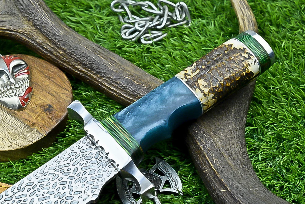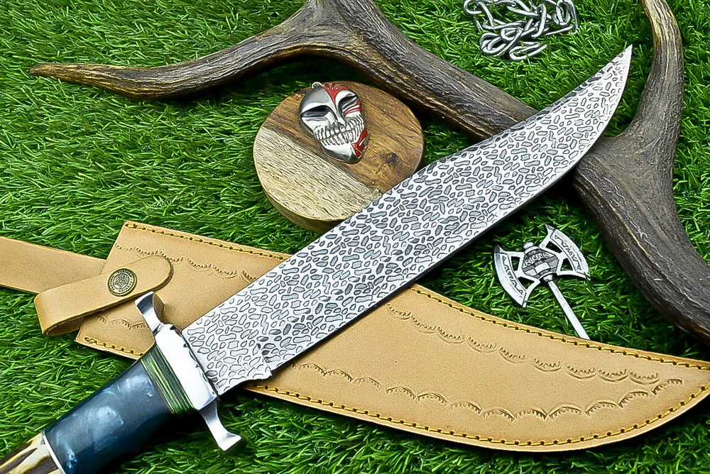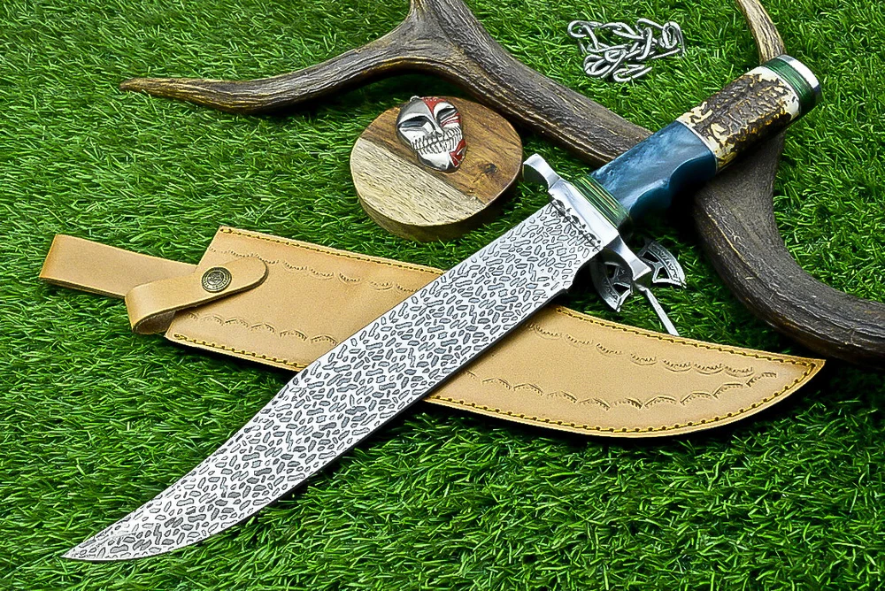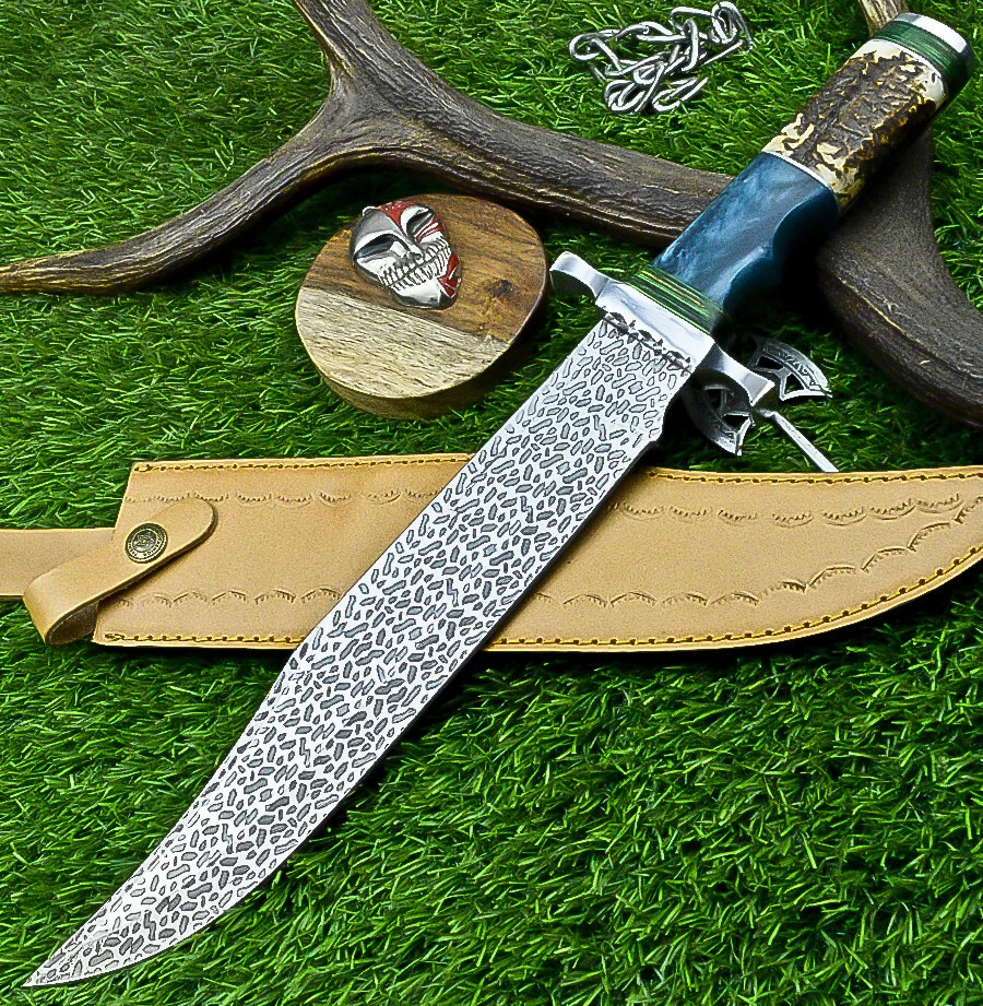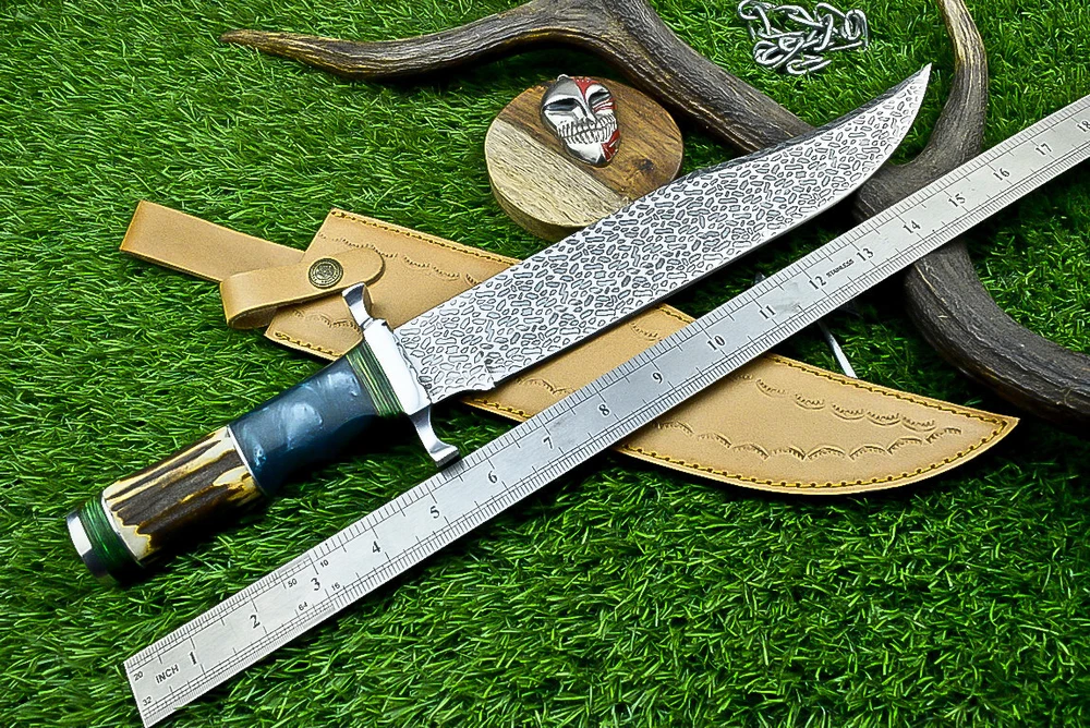Year: 2024 Width: 0 Purpose: Everyday Carry Hand-Forged/Manufactured: Hand-Forged Blade Edge: Plain Handle Material: Stag / Resin Vintage: No Number of Blades: 1 Process: Fine Art Heat Treatment: OIL QUENCHED, Excellent heat treatment to the blade Handmade: Yes Original/Reproduction: Original Blade Type: Clip Point Features: Sheath Included Modified Item: No Type: Boot, Bowie, Bowie Knife, Butcher, Camping Knife, Chef, Combat, Decoration, Everyday Carry, Gift, Hunting, Hunting Knife, Miniature Knife, Outdoor, Survival, Tanto Knife, Throwing, Wild Life Cutting Edge: 0 Brand: KNIVES UNLIMITED Blade Color: Silver Dexterity: Ambidextrous Overall Length: 17.00" Tang: Rat-Tail Autheneicity: Original Blade Material: J2