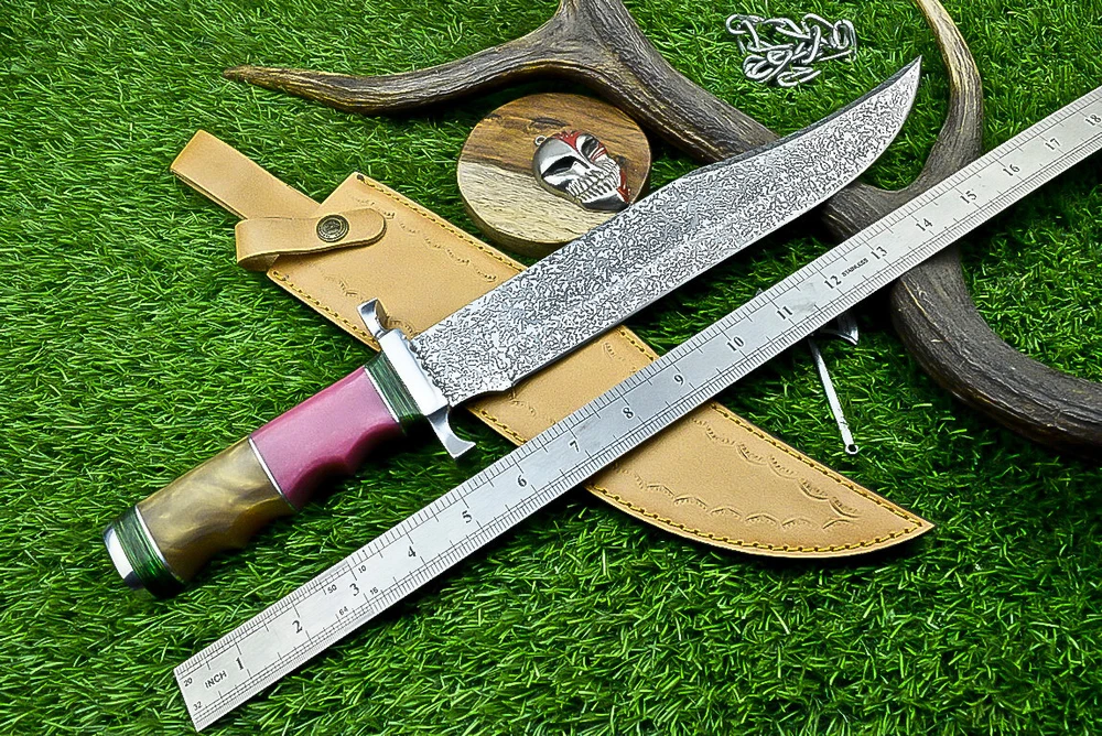 EXCLUSIVE HANDCRAFTED J2 STEEL BLADE HUNTING KNIFE SKINNING KNIFE, BOWIE KNIFE, CAMPING KNIFE EDC Product Details: Overall Length: Approximately 17.00" inches Blade Material: J2 Steel Blade Hardness: 54-58 HRC Blade Thickness : 4mm Size Verification: To help you easily determine the size, we've included images with a scale for precise dimension reference. Thank you for your understanding. We appreciate your consideration. Handle Material: Resin with hand casted steel bolster Included Accessories: Sheath For International Customers: We kindly advise our international customers to familiarize themselves with their country's regulations prior to making a purchase. If customs in your region request customs duties, please be prepared to cover these costs. Regrettably, we cannot assume responsibility, nor issue refunds in such cases. Our J2 Steel Creation Process: J2 Steel: Crafted to Perfection "J2 steel is a premium alloy known for its exceptional strength and durability. It is meticulously created through a process that involves: Smelting: The base materials, typically high carbon and high chromium steels, are melted at extremely high temperatures. Homogenization: The molten steel is carefully mixed to ensure uniform composition, eliminating impurities. Forging: The steel is forged into the desired shape and thickness, resulting in a strong and sturdy blade. Heat Treatment: Precise heat treatment is applied to enhance hardness, toughness, and corrosion resistance. Tempering: The blade undergoes controlled heating and cooling to achieve the perfect balance of hardness and flexibility. Quenching: Rapid cooling in a controlled environment further strengthens the steel. The result is an Original J2 Steel blade renowned for its sharpness, edge retention, and resistance to wear and tear. It's the choice of professionals and enthusiasts alike for its exceptional performance and longevity. J2 Tool Steel is a high-carbon, high-chromium, air-hardening tool steel that is characterized by a relatively high attainable hardness. J2 is known for its touchness and ability to hold a sharp edge. AGE LIMITATION: Please note that we exclusively sell knives to individuals who are 18 years of age or older. Additional Details: Leather Sheath (if pictured): Rest assured, this item comes with a superior-quality, sheath. Crafted with meticulous hand-tooling and stitching, it exemplifies fine craftsmanship and is designed for exceptional durability. The added stitching ensures it withstands years of demanding use, providing reliable protection for your knife throughout its lifetime. Care and Maintenance: When necessary, use a Diamond Wet Stone or a superior sharpening tool to maintain a 20-degree blade edge. After use, clean the item with soap and water, ensure thorough drying, coat it with gun oil, and store it separately from the sheath. Leather absorbs moisture from the air and can lead to blade rust if stored improperly. Customer Feedback: Your satisfaction and feedback are of utmost importance to us. We genuinely appreciate your positive reviews! When assessing shipping time, please consider international transit. Your recognition bolsters our confidence to enhance our services. If you encounter any issues with your order or product dissatisfaction, please reach out to us first. We are committed to resolving any concerns to your satisfaction and kindly request you not to leave neutral or negative feedback. Payments & Returns: All accepted eBay payment methods are available for this purchase. Our return policy typically extends to 14 days. Shipping and Handling: We offer free shipping on all our products (In the USA) Tracking Info: The buyer will receive the tracking number via email (if available). You can also track the shipment in the "Order Details" section on eBay. USPS UPS DHL updates tracking information nightly (if available). Contact: Feel free to contact us anytime via eBay messages. We are dedicated to responding to your inquiries within 24 hours and providing the best possible assistance.