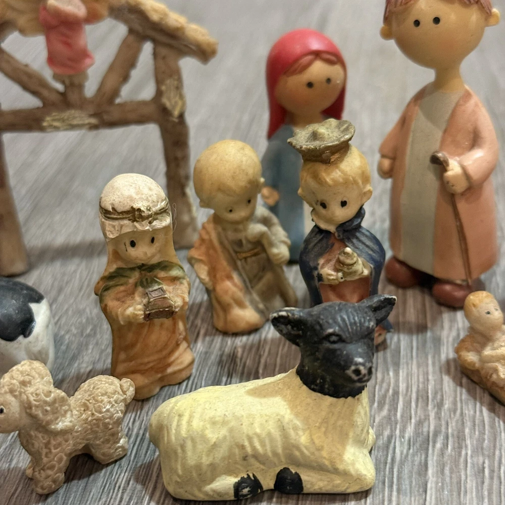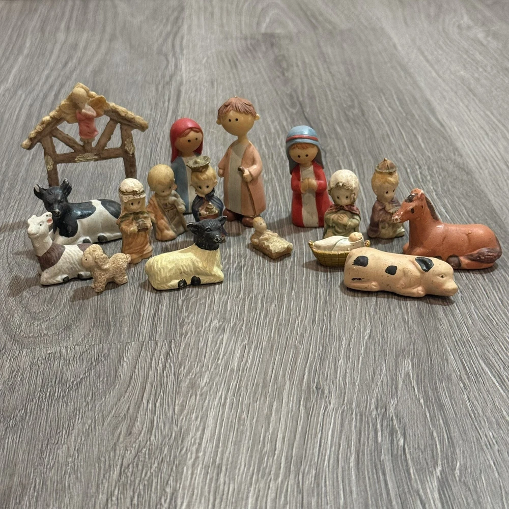 17 -Pc including an extra baby Jesus Ceramic Nativity Set There are a couple of chips on the animal ears. See photos for more details Fast and secure shipping daily