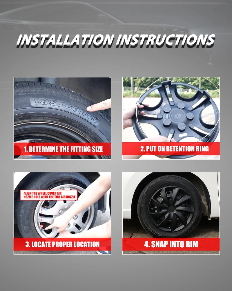 Home Payment Shipping Return Policy About Us Contact Us Feedback Title Other Car Refrigerator Front Bumper Rear Bumper Fender Flares Inner Fenders Side Steps Running Board A-Pillar Light Mount Brackets Headlights For Ford For Dodge For Chevrolet For Toyota For Mitsubishi Taillights For Chevrolet For Toyota For Ford For Jeep For Dodge For Honda For Nissan For Cadillac Fog Lights For Jeep For Dodge For Chrysler For Ford For Toyota For Chevrolet For Nissan For Lexus For GMC For Cadillac For BMW For Mercedes Benz LED Headlights For Ford For Dodge For Chevrolet For Toyota LED Taillights For Toyota For Chevrolet For Ford For Jeep For GMC For Honda For Cadillac LED Fog Lights For Toyota For Ford For Chevrolet For Mercedes Benz Jeep Headlights Tail Lights Fog Lights Refrigerator Bumper Fender Flares Inner Fenders A Pillar Light Mount Brackets Side Step More Chevrolet Headlights Tail Lights Fog Lights Refrigerator Bumper Ford Headlights Tail Lights Fog Lights Refrigerator Bumper Toyota Headlights Tail Lights Fog Lights Refrigerator Bumper Dodge Headlights Tail Lights Fog Lights Refrigerator Bumper GMC Headlights Tail Lights Fog Lights Refrigerator Bumper About This Item ✔ PERFECT FIT: This wheel hub cap is specifically designed to perfectly fit for 17-inch wheels, ensuring a seamless match and enhanced aesthetics. It complements the overall design of the vehicle, elevating its visual appeal. ✔ HIGH-QUALITY MATERIAL: Constructed from high-quality materials, this wheel hub cap guarantees durability and longevity. It withstands various road conditions and environmental factors encountered during daily driving, maintaining its pristine condition. ✔ EASY INSTALLATION: Installing this wheel hub cap is a breeze and requires no specialized tools or modifications. It comes with a user-friendly system, allowing for a hassle-free installation process by following the provided instructions. ✔ PROTECTIVE FUNCTION: Besides its aesthetic appeal, this wheel hub cap serves as a protective barrier for the wheels. It prevents scratches and potential damage caused by stones, debris, or other objects, safeguarding the wheel's surface. ✔ AFTER-SALES SERVICE: If There Is a Loss of Product Parts, or Any Parts of The Problem, We Can Provide After-Sales Service, Please Contact Us on The Order Page. ️ Item Details ✔ Type: Hub caps ✔ Number in Pack: 4 ✔ Color: Matte Black ✔ Material: ABS ✔ Compatible Wheel Diameter: 17 in ✔ Finish: Matte ✔ Installation Type: Snap-On ✔ Model: Universal Hubcap for Iron Wheels, Not fit for Chevy Equinox All Models, TOYOTA SIENNA 17 inch models, VOLKSWAGEN GOLF 17 inch models Not fit for 2010-2011 Fusion, 2013-2018 Toyota RAV4, 2010-2011 Mercury Milan, 2008-2012 Chevy Malibu, 2007-2010 Pontiac G6, 2007-2010 Saturn Aura, 2007-2010 Saturn Aura Hybrid, 2013-2020 DODGE JOURNEY, 2015-2020 DODGE GRAND CARAVAN, 2011-2016 CHRYSLER TOWN & COUNTRY. Package Includes ✔ 1 Set of 4 Hub caps and 4 retention rings Payment Delivery details Terms of sales About us Contact us Payment We accept PayPal, credit card , Apple Pay & Google Pay etc. Delivery details All items will be shipped within 1-3 business days after payment received, we will try our best to ship out as soon as we can, hope for your understanding. Please double confirm your address and contact information, which will help the delivery faster and more accurately. Note :buyers who purchase international products need to pay import tariffs!!! Terms of sales Professional installation is highly recommended. Any problem of the item please feel free to contact us first , please D o Not leave negative feedback before that, or simply return it within 60 Days in original condition. We will resolve it for you ASAP. About us Any questions please do not hesitate to contact us directly by eBay message . We will reply you within 24 hours asap, thanks for your understanding. Contact us Should you have any problem or require any further information please feel free to contact us . If you are satisfied with our product and service, please kindly leave us a positive feedback. On Jan 20, 2025 at 00:53:45 PST, seller added the following information: