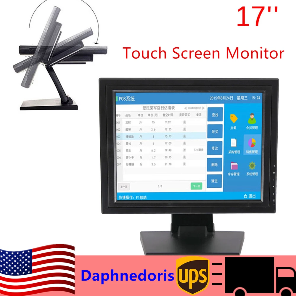 17" Touch Screen LCD Display LED Monitor USB for POS/PC Windows Portable US Descriptions 17 Inch Lcd Touch Screen Monitor Featuring 1280*1024 Resolution As Well As Several Ports Including Vga Making This a Very Versatile Monitor. and Also It Includes Two Built-in Speakers. What's Included? * Touch Screen Lcd Display * Power Adapter * Power Cord * Vga Signal Cable * Usb Cable * User's Manual * Quick Start Guide * Cd-rom for Touch Screen Driver Features 1.It Is with a Stand It Can Be Adjusted Horizontally and Vertically to 160 Degrees .the Screen Is Collapsible to Behave like a Tablet so You Can Draw on It As Well.owing to the Fact That This Monitor Has Several Ports , It Can Be Connected to Any Compatible Computer or Tv Using Vga Connection. 2.Make Life at Home and Work Easier with This 17 Inch Lcd Monitor . 3.This New 17” Touchscreen Monitor Is Perfect for Use in Retail, Point-of-sale (Pos), Vod System and Many Other Hospitality Applications . Easily Integrated with a Variety of Pos, Thin Client or Pc Systems, the Touch Led Features 4-Wire Resistive Touchscreen and Usb Touchscreen Interface. 4.the Touchscreen Monitor Comes with a Metal Pos Deskstand with Hard Plastic Cover . It Is Also Compatible with Other Mounting Options Using the Vesa Standard Hole Pattern on the Back of the Monitor. the Sensitive Touch Screen Recognizes Touch Input from Stylus, Finger, Gloved Hand, Pen or Tool . Speifications: ◆Display Type:touch Screen ◆ Screen Size: 17" ◆ Display Format: 4:3 Standard Led ◆ Maximum Resolution: 1280*1024 ◆ Compatible System:windows (7/8/10) ◆ Not Compatible System:android and Apple ◆ Contrast Ratio:800:1 ◆ Brightness:300 Cd/M2 ◆ Response Time (Typical):5ms ◆ Horizontal Viewing Angle:160° ◆ Vertical Viewing Angle:vertical:140° ◆ Power Consumption::<30w Applications For Life: 1.Corel Touch Screen Software Get Ready to Interact with Your Software in Ways You Never Dreamed Possible. Built Specifically for Use on Windows庐 7 and Touch-enabled Computers, Corel Touch Screen Software Lets You Paint, Zoom, Rotate, Tap, Drag and Scroll鈥攔Ight on Screen, Using Nothing but Your Fingers. See What You Can Do with Corel Creative Software and Windows Touch: 2.Corel Paint It! Touch Get the Full Touch Experience by Drawing or Painting Right on Your Touch Screen Monitor. Paint It! Touch Provides Budding Artists of Any Age with a Free-flowing Artistic Experience Unlike Any Other. Draw, Paint and Even Turn Photos into Paintings Just by Using Your Fingers! For Business: Order Taking and Tracking 1. in the Restaurant Setting, Touch Screens Have Three Important Functions. the Most Visual Use of Touch Screens in Restaurants Is for Order Taking and Management. This Function Is in Place in Almost Every Chain Restaurant Today from Fast Food to Sit-down Restaurants. Touch-screen Ordering Is Used by Restaurant Staff Members to Enter a Customer's Order into the Main System. from There, It Is Sent to the Kitchen and Posted into the Cash Management Set-up. When the Kitchen Crew Sees the Order on Its Screen, It Knows What It Is, the Time It Was Entered and Where It Is Going. Touch Screens in Restaurants Also Help to Eliminate Miscommunnication Between Order Takers and Kitchen Staff. Cash Management 2. Cash Management Is Another Common Use of Touch-screen Technology in Restaurants. After the Order Is Entered into the Main System, the Cash Handlers or Management Can Use the Touch Screen to Pull up the Entire Order History Quickly, Including the Total Bill Due. Touch Screens Are an Efficient and Faster Method of Handling Information. There Is No Need to Learn Keystrokes or Complex Software. Most Touch Screens Used in Restaurants Have a Simple Menu Layout That Brings up the Needed Screen and Access to Information. Most Touch Screens Are Set up on a Computer Networking System Where There Is One Central Processor and Multiple Terminals Can Access That Information. This Means That Any Information Required Can Be Accessed at Any Terminal Throughout the Establishment. Inventory Control and Management 3. Inventory Control and Tracking Is the Third Use of Touch Screens in Restaurants. Since Both Order Taking and Cash Management Are Handled Through One Central System, the Touch Screen Technology Can Also Integrate Inventory Handling at Any Point in the Process. Again, with Minimal Space Used, Any Trained Person Can Handle Tracking and Ordering of Inventory at Any Point in the Network Easily. Payment Delivery details Terms of sales About us Contact us Payment We accept ebay payment 。 Fees such as import duties, taxes are not included in the item price or shipping costs. These charges are the buyer's responsibility. Delivery details Shipping: 2-9 working days to: USA Terms of sales We maintain high standards of excellence and strive for hundred percent customer satisfaction. Feedback is very important to us. We hope that you contact us immediately before you give neutral or negative feedback, so that we can address your concerns. It is impossible to address issues if we do not know about them! About us Your satis faction is our ultimate goal. We work hard to earn your trust and future business. Our certified technicians have tested each item before shipping. The unit comes with 1 year limited warranty on all manufacturing defects. a) If you receive a defective item, you may return it or ask for a discount. Please contact us within 14 days after you receive the package. b) What you returned must be intact and in its original packaging as re? u. Customer is responsible for shipping costs of the returned item. c) We will cover the cost of shipping back t with the shipping rate indicated in the registration page. We will send you a new unit or refund the full payment you paid. Thank you. Contact us Business Hour Business Hour: Monday To Friday: 8:30 AM to 5:00 PM (Beijing China time) Due to time zones, our reply to your questions may not be immediately. But within above working time, we will reply yo