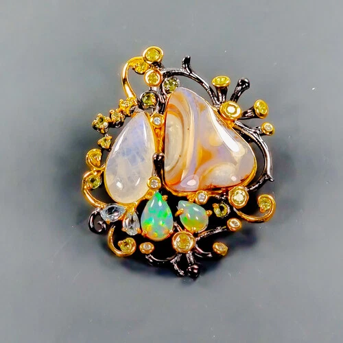 Fineart Jewellery Announcement Please note when you payment.(ONLY RING) Click for Resize. If you need to buy chain.(FOR Pendant) (SILVER) (BLACK) (GOLD) 17 ct Gift Not Enhanced Boulder Opal Brooch 925 Sterling Silver /NB23521 Here is a video of the product Description NB23521 Product Type Brooch Gemstone Type Boulder Opal Gemstone Color Multi-Color Other Gemstones Moonstone, Topaz, Peridot Gemstone Size Treatment Not Enhanced Gemstone Origin Australia Material Sterling Silver Plating Black Rhodium & Gold Total Weight 15.3 g (GEM(S)+SETTING) Size (US) Resizing service is available (ONLY FOR RING) for $8-10 Click for Resize. If you need to buy chain.(FOR Pendant) (SILVER) (BLACK) (GOLD) Ring size About Us APB Jewelry has been one of the most trusted and honest jewelry stores on eBay over a decade. We have been in the jewelry business for over 20 years and have intense experiences in a variety of ethically-sourced genuine gemstones and handcrafted in 925 sterling silver. All of our jewelry is designed by creative jewelry designers, crafted by artisans, and made by skillful silversmiths. Every piece of gemstone is thoroughly selected by gemologists. We make our jewelry in-house to ensure that our customer will receive the finest quality material. Please click for choose and payment Click Here. Genuine gemstone and 925 sterling silver Buying jewelry online can sometimes be risky and tricky, it is quite important to know if it is genuine or synthetic gemstones (created by the laboratory), and how to identify the real or fake sterling silver. The common way to identify sterling silver is to search for a 925 stamp or mark, normally called 'hallmark'. Also, the real 925 sterling silver will not attract to magnet and change color when testing with nitric acid. We are using only real 925 sterling silver for all of our silver jewelry. However, the gemstone is quite harder to spot from the photo. If you are not a professional and planning to buy the real expensive gemstone, we would recommend buying the one which provide a certification from the reputable gemstone laboratories. We also provide the certification if needed, however, there will be an additional cost for testing charged by the labs. Laboratory services If you require the report of gemstone, we provide the following certificates: EMIL GEM Laboratory (Japan) Report with photo $25.00 GIA Identification Report with photo (Price depends on each item) GIT Identification Report with photo (Price depends on each item) We are here to help! Please do not hesitate to contact us, if you have any further questions regarding the items, our customer service agents will try their best to resolve any issues with your order as soon as possible Safe and secure payment We only accept payment via Paypal (the easy and safest way to pay online). *Important: If you need to combine shipping, please hold a payment until you finish bidding or shopping, you can make a payment after you finish all auction. Don't pay one by one, otherwise, your orders may be calculated a shipping fee individually and sent separately. Please make a payment within 7 days to avoid an automatic eBay unpaid case opened. Pack and ship everyday We ship worldwide direct to your door. Your order will immediately process once the payment has been received, so please hold the payment until you finish shopping if you need a combined shipping. We offer a standard trackable airmail cost $8.99 for a single item and $1 on each additional item.For example, if you combine 2 orders, there will be $9.99 for a delivery fee. As we are far away from you, general shipping from Thailand to overseas typically takes 15-25 business days. At extremely busy periods such as Christmas, New Year, long public holidays or natural disaster issues, some parcels may be subject to delays. We kindly ask our customers to be patient. If you are in rush to get your order, we would recommend FedEx delivery. They are faster and safer. The order estimates to arrive within 2-10 business days (depending on the destination). The cost will be calculated by the courier starting from $30 with no extra charge from us. Please note: if you are bidding or buying multiple items, the upgrade will be available within 10 days from the 1st item you purchase. As soon as your order ships, you can track it through your order section. Please contact us via eBay Message if you have not received the item(s) within 25 business days, we will be happy to assist you. Important: Please be aware that the customer will be responsible for the customs charges/duties. We cannot be held responsible for any additional charges the destination country imposes on the customer. How to return an item? We accept the return if you are not completely satisfied with your purchase. Please return the item(s) to us in the original condition (no signs of wear on jewelry) within 30 days of receiving. However, this does not apply to any piercing jewelry such as earrings due to hygienic reasons unless faulty. Please note that the customer will be responsible for the shipping charge. The refund will be issued after the item(s) return to us in the original condition. Safe and secure payment We only accept payment via Paypal (the easy and safest way to pay online). *Important: If you need to combine shipping, please hold a payment until you finish bidding or shopping, you can make a payment after you finish all auction. Don't pay one by one, otherwise, your orders may be calculated a shipping fee individually and sent separately. Please make a payment within 7 days to avoid an automatic eBay unpaid case opened. Customer service We are here to help! Please do not hesitate to contact us, if you have any further questions regarding the items, our customer service agents will try their best to resolve any issues with your order as soon as possible. Happy Feedback Your feedback is very valuable to us! We appreciate your feedback and will use it to evaluate changes and make improvement