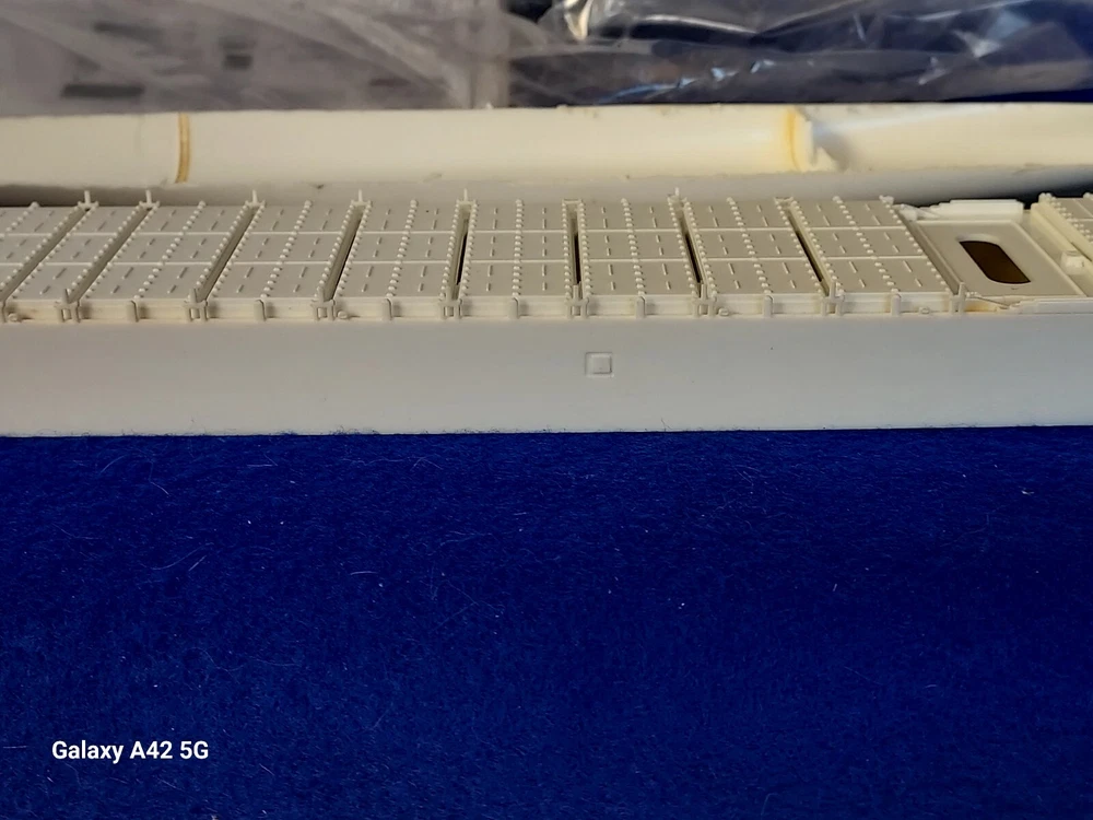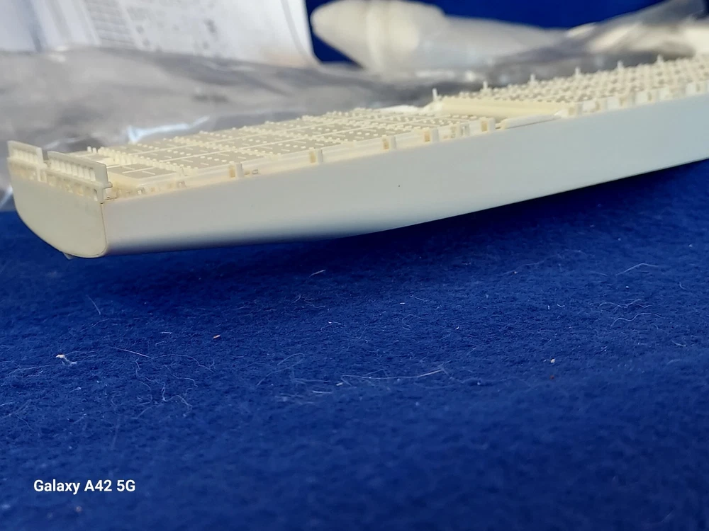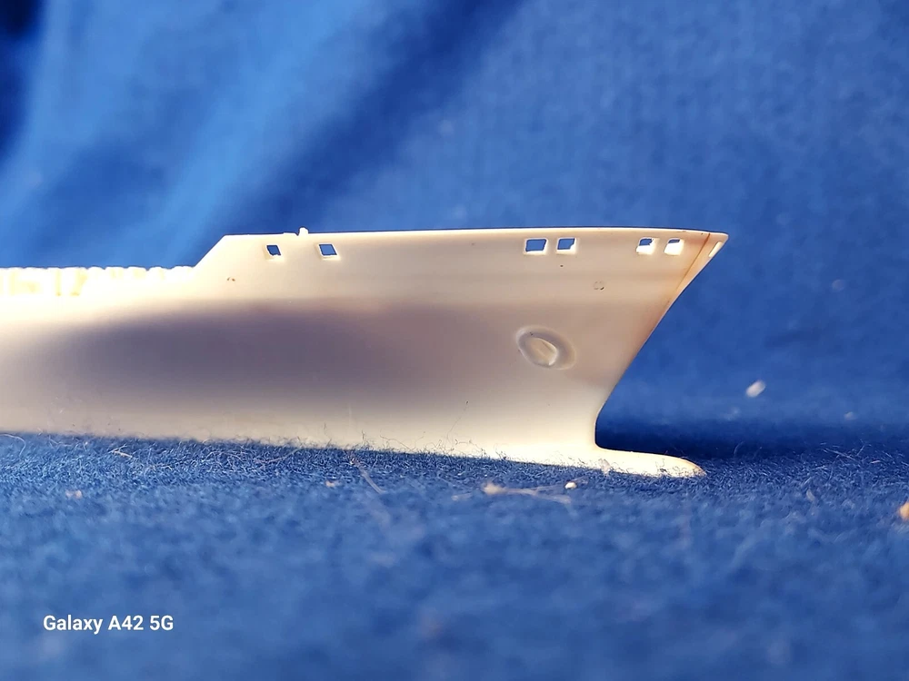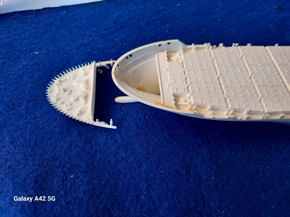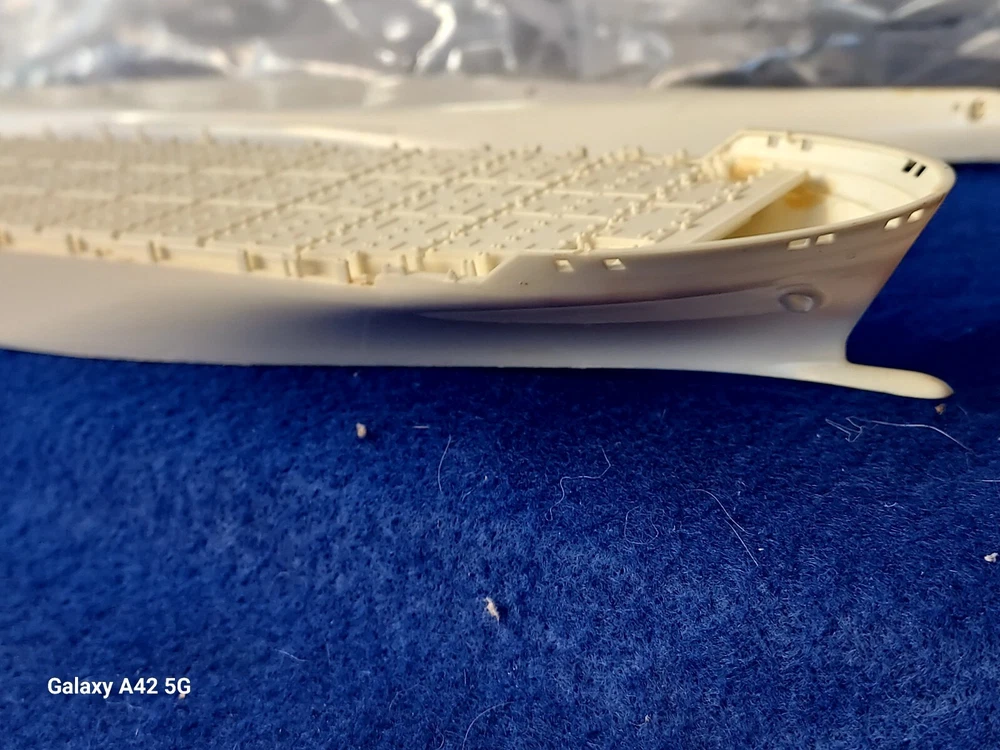 ONE OF A KIND: Revell Germany 05241 1/700 Hapag Lloyd Container Ship COLOMBO EXPRESS I have WATERLINED the hull. SEE PHOTOS The model kit has been started..main deck is attached and internal bulkheads applied;.essentially nothing more than was needed to waterline the ship. The photos don't show clearly; the waterline is straight...no warpage. Some parts have been removed from the sprues and cleaned up; primarily the above-deck Container bulkheads. These and the forcastle are shown installed for the photos only; they were not glued....They have been carefully packaged with the stand and marked. Also the stern boat skids are seen in the upper left of the photo showning the bulkhead directions..they are in that package as well. The model kit is complete, waithing to be finished. I've included decals to letter the ship for EVERGREEN (I was going to paint the hull green and do that but couldn't find alternative 1/700 decals for the containers. HO container decals are about the right size for that. The kit decals are in like-new condition. A fun project to research and start but now a round-tuit for you to finish.The kit will be carefully packed SEE PHOTOS
