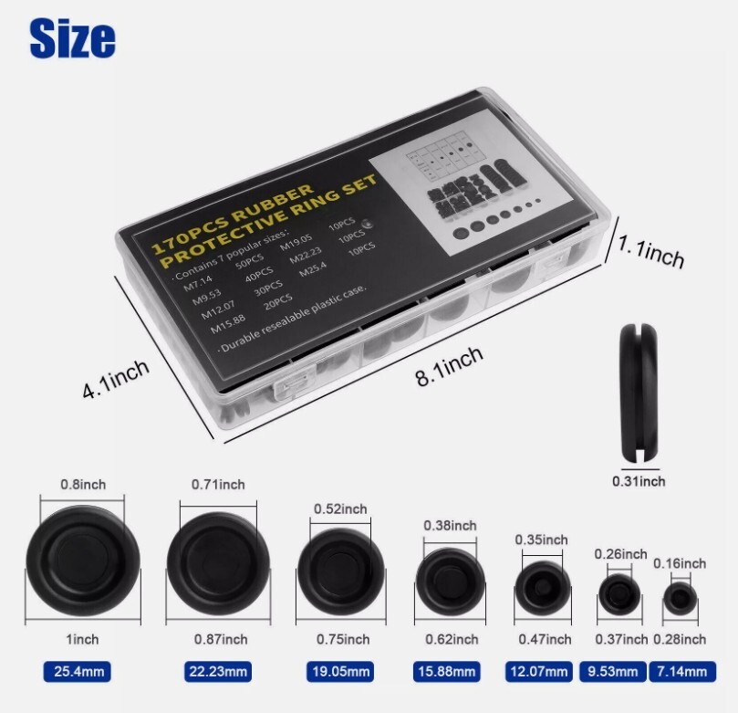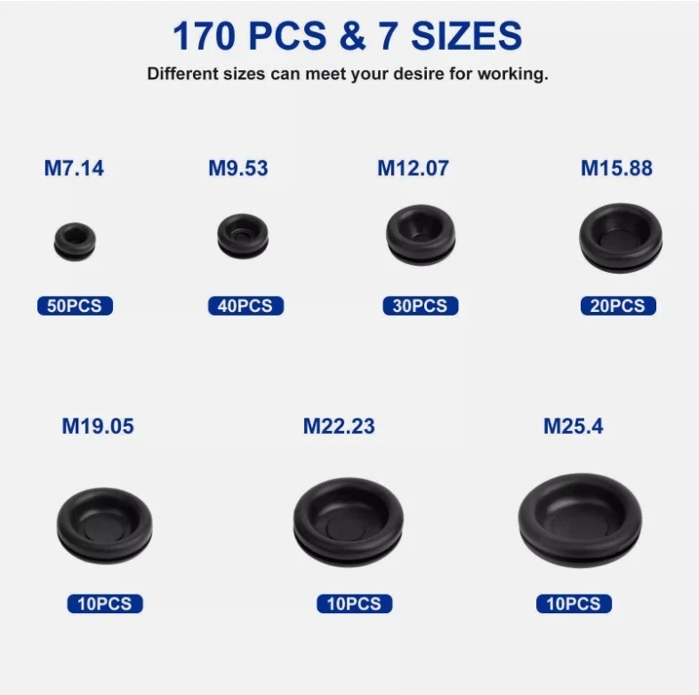 This rubber grommet kit is a game-changer for DIY projects and repairs! The high-quality, heat-resistant rubber makes them durable and easy to install. With multiple sizes, they fit various needs like wiring, plumbing, and sealing gaps. Perfect for preventing leaks, protecting wires, and improving safety—great value for the variety you get!