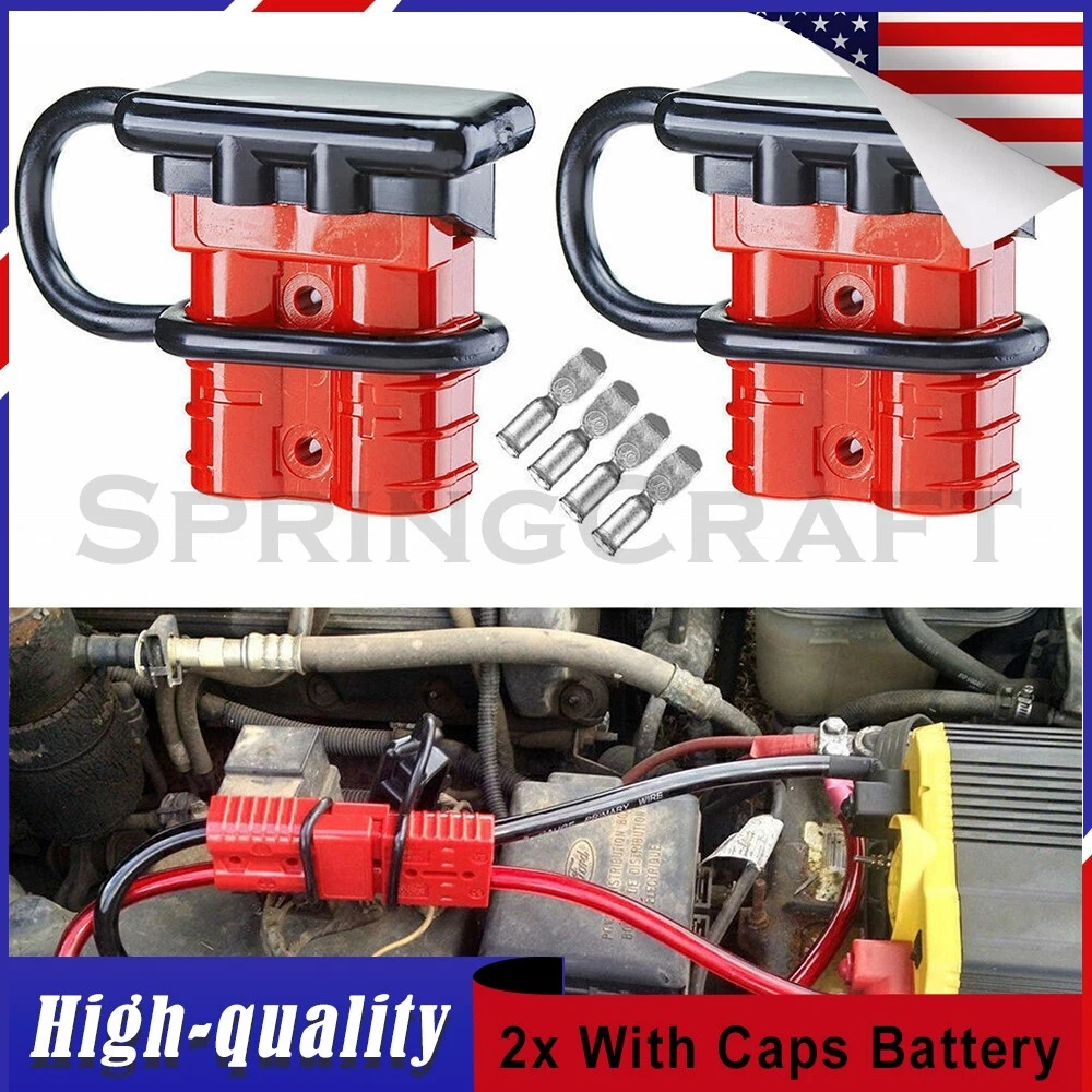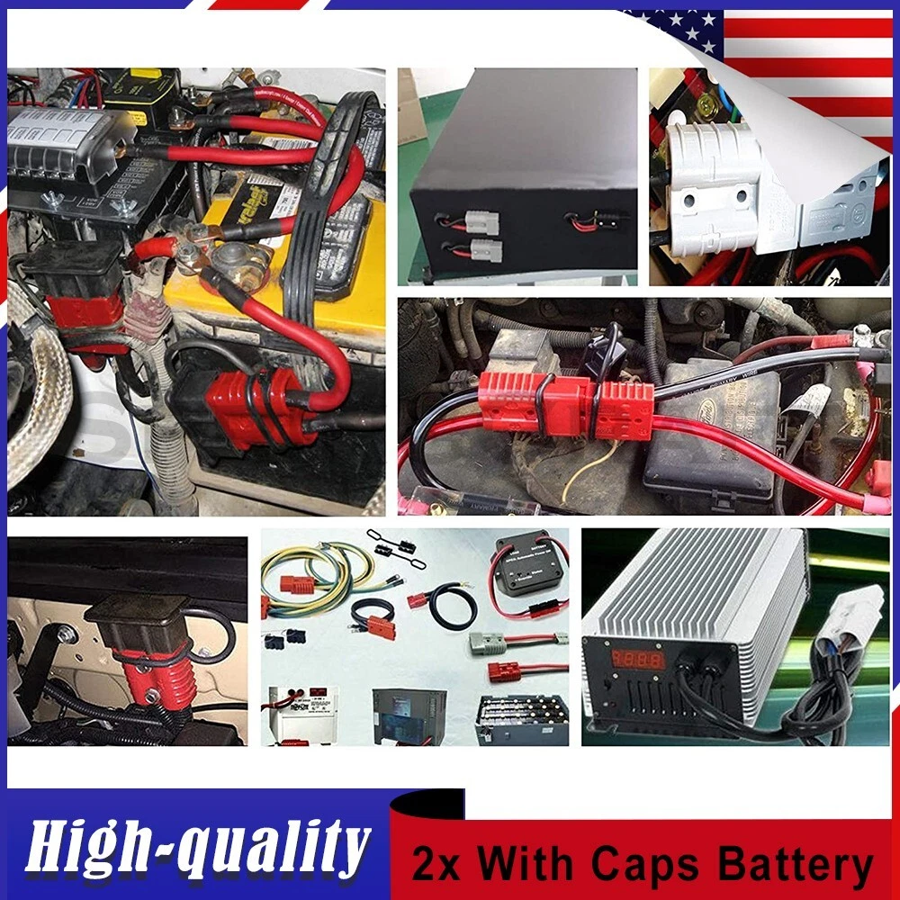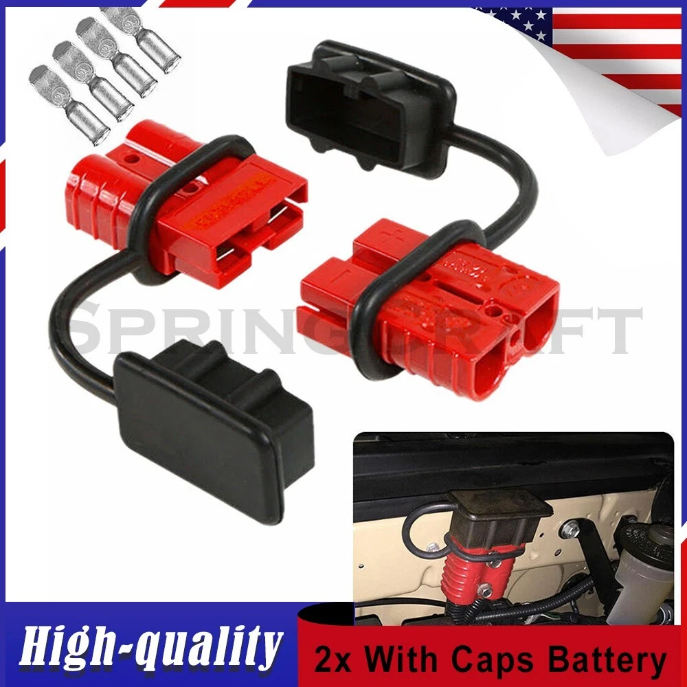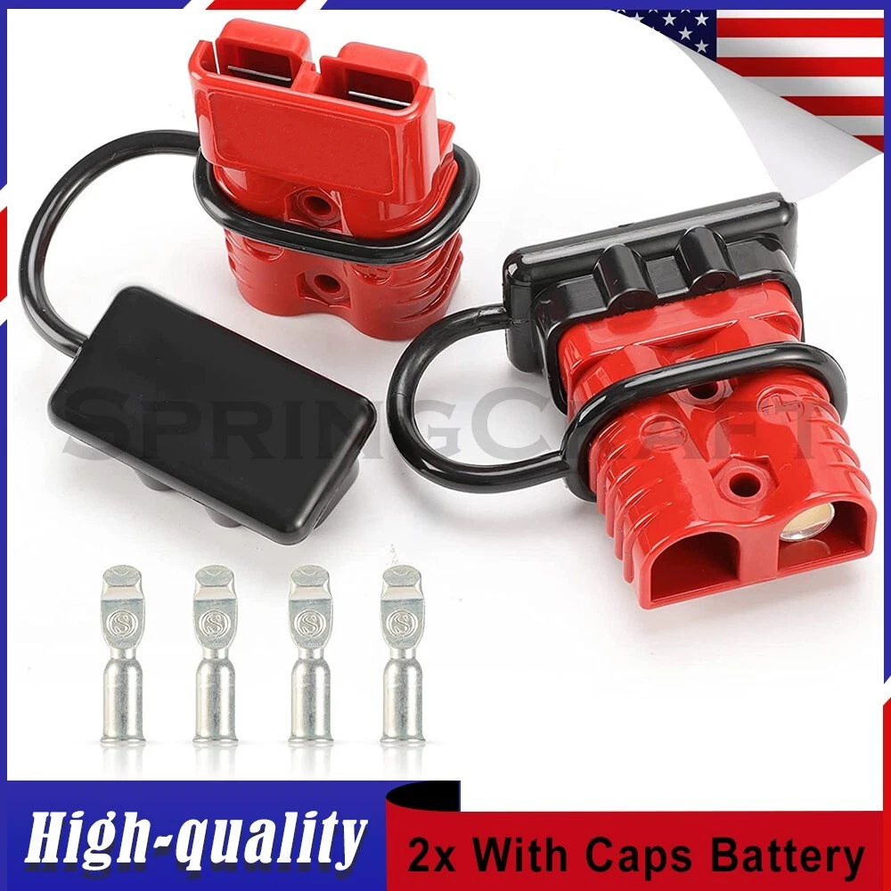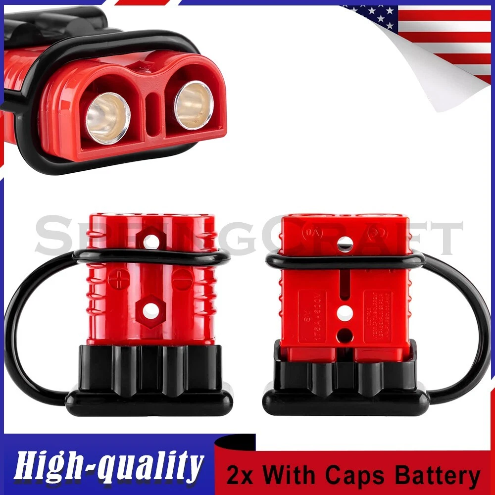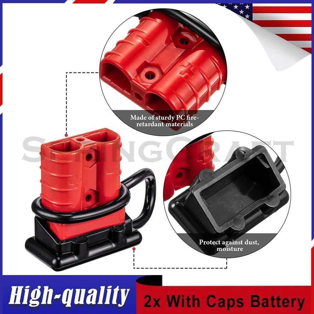 Features: WIRE CONNECTOR SET: This handy electrical wire connection set includes 2 clearly marked quick connect plugs that let you patch and disconnect 1/0 AWG (10-50mm²) wire pathways from 12V, 24V, or 36V batteries, supporting currents up to 175 amps WIDE APPLICATION: Our versatile weatherproof QC plugs offer a simple, convenient way to handle direct power connections to car batteries; truck, ATV, and RV winches, lifts, and cranes; and trolling and outboard motors on boats and watercraft, as well as home and industrial applications like lathes, chargers, and power inverters BUILT TO LAST: Each wire harness's unibody polycarbonate housing provides superior resistance to wear, corrosion, water, and heat for its full service life of over 10,000 connections; the 4 copper terminal pins are silver plated to minimize resistance and maximize stability and dependability; and the attached boot caps keep debris out between uses EASY TO USE: These quick connectors provide built-in texturing and polarity marks for sure grip and easy use; their genderless design attaches & detaches quickly and smoothly; and use is as easy as stripping the ends of your wires, fitting them into the terminals, and securing them with a crimping tool Specification: Material: Polycarbonate, Rubber, Copper Max. Current: 175A Voltage: 600V Wire Size Range: 1/0 AWG (10-50mm²) Operating Temperature Range: −4 to 221°F Terminal Pin Diameter: 0.5 in. Connector Dimensions: 3 1/8" x 2 1/8" x 1" (L*W*T) Connected Set Dimensions: 5 1/4" x 2 1/8" x 1" (L*W*T) Package Included : 2x Connector Plugs + 2x Dust Covers + 4x Terminal Pins