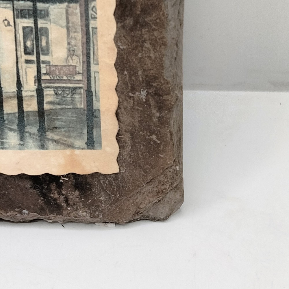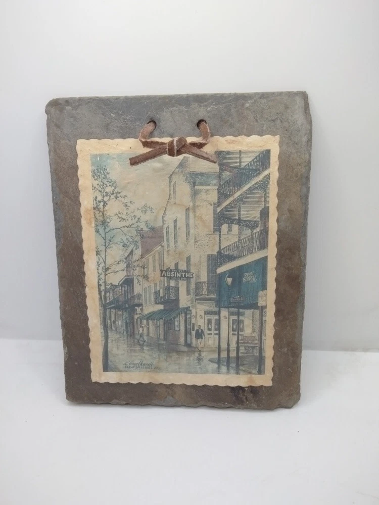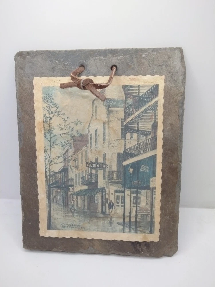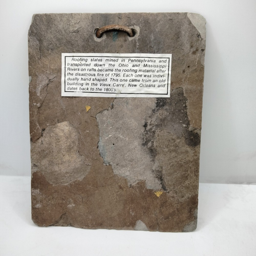 Add a piece of Louisiana's history to your collection with this 1795 Slate Roofing Tile featuring the iconic Old Absinthe House, the oldest continuously running bar in New Orleans. This tile is a unique piece of memorabilia from the United States, specifically from Louisiana. The tile is in good condition and is a great addition to any collection. This collectible tile was manufactured in the United States and is a must-have for collectors of souvenirs and travel memorabilia. It is a great way to showcase your love for Louisiana and its rich history. Don't miss out on the chance to own a piece of history with this one-of-a-kind item. slight stain Please see all photos as they are part of the description and condition of this item and please check out my store for other great deals and treasures and thank you for looking