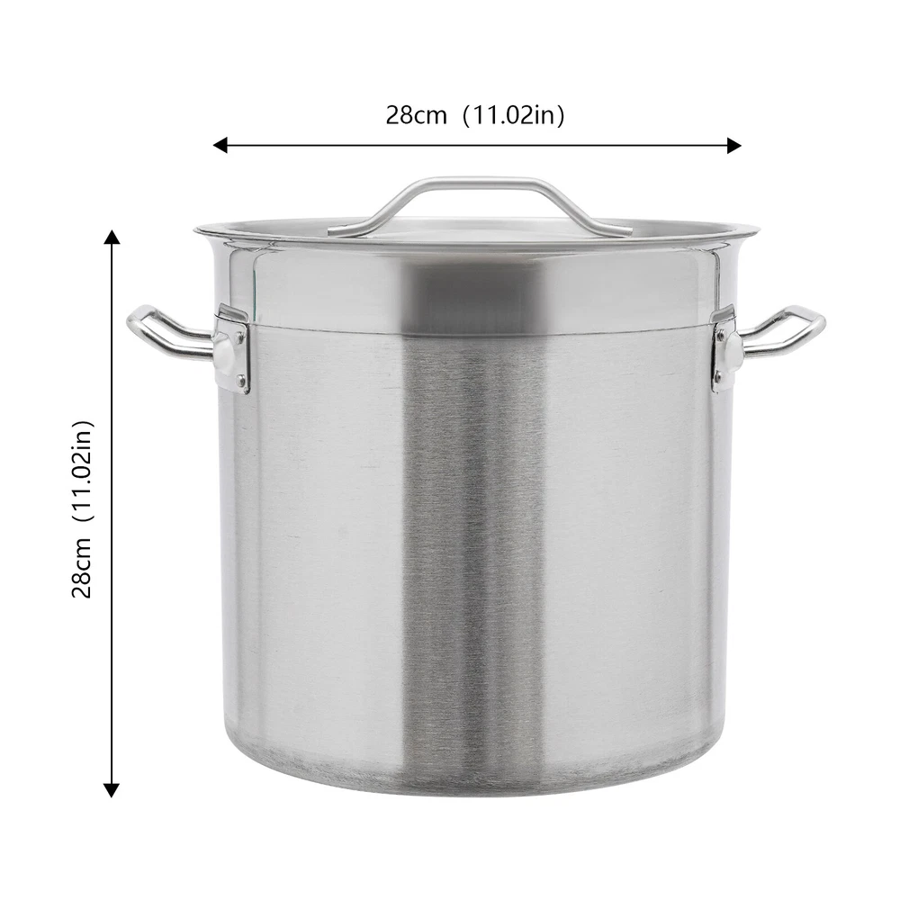 17L/ 4.49Gal Stock Pot Stainless Steel Large Kitchen Soup Big Cooking Stockpot Description Food can't be stored or cooked without a powerful container. Take a look at our stainless steel stock pot with lid. Its high-quality 201 stainless steel and excellent performance will allow you to make soup to satisfy you and your family's taste buds, and the large capacity will meet your various storage needs! The minimalist yet non-monotonous appearance makes it a good supplement to your kitchen. Key Features Build to Last: The 201 stainless steel and a brushed process make this product safe, environmentally friendly, wear-resistant, corrosion-resistant, and less prone to rust and oxidation, so it can maintain good aesthetics and practicality. Large Capacity: Thanks to its 4.49-gallon capacity, you can cook large quantities of food at once, meeting the needs of multiple individuals. Elaborate Design: The 4.3mm thick and magnetic composite bucket bottom (430 stainless steel+aluminum plate+201 stainless steel) has fast heat conduction, so it can fully absorb heat, shorten cooking time, and ensure that your soup is more delicious. Simple and Convenient: You can use it directly without the need for installation. The handles fixed by rivets on both sides are not easily detached, making it easy for you to move the product. Moreover, the handles on the lid make it easy to open and close, and the 11.02-inch large opening makes it easy to store and remove food. Easy to Clean: The smooth surface and openable lid allow you to easily clean away dust and residue with water and a soft towel. Space Saving: The compact size(11.02*11.02inch) makes full use of vertical space, further reducing the burden on countertops, refrigerators, cabinets, etc. Protective Package: To prevent the product from being damaged and bumped during transportation, we packed it with foam to protect your products to the maximum extent possible. Ideal Gift : With its large capacity, this product is an ideal housewarming and holiday gift for family, friends, and loved ones, so they too can enjoy a more convenient and tidy life. Customer Service: We aim to provide quality products and services. If you have any problems, please free to contact us. We will reply and solve the problem for you as soon as possible. Details Round Corners: Compared with traditional square corners, an arc design can better ensure safety. Flat B ucket B ottom : Its flat-bottomed bucket bottom design allows it to be placed more stably on the countertop and is not prone to slipping. Practical Lid: It can prevent dust and insects from entering and reduce heat loss. Application It can be used on induction, gas, electric, glass, ceramic, and halogen stoves. It is suitable for restaurants, canteens, hotpot stores, hotels, home kitchens, shopping malls, and hotels, etc., for storing a wide variety of dry/wet foods such as cookies, coffee beans, sugar, flour, tea, spices, cereals, rice, grain, cereal, oil, milk, wine, and water. Specification Material: 201 Stainless Steel, 430 Stainless Steel and Aluminum Process: Brushed Color: Silver Shape: Cylinder Style: Modern Assembly Required: No Mount Type: Free Standing Number of Items: 1 Capacity: 17L/ 4.49Gal Bottom Thickness: 4.3mm Thickness of Barrel and Lid: 0.8mm Package Size: 32*32*34cm/ 12.6*12.6*13.39in Product Size(D*H): 28*28cm/ 11.02*11.02in Gross Weight: 4kg/ 8.82lbs Net Weight: 3.6kg/ 7.94lbs Package Included 1* Stainless Steel Stock Pot with Lid Notes Please note that this product is not oven-safe and foods are not included! Please allow the slight color difference caused by the shooting light and 1-3cm error due to manual measurement, and make sure you do not mind before ordering. Payment Delivery details Terms of sales About us Contact us Payment We accept ebay payment 。 Fees such as import duties, taxes are not included in the item price or shipping costs. These charges are the buyer's responsibility. Delivery details Shipping: 2-9 working days to: USA Terms of sales We maintain high standards of excellence and strive for hundred percent customer satisfaction. Feedback is very important to us. We hope that you contact us immediately before you give neutral or negative feedback, so that we can address your concerns. It is impossible to address issues if we do not know about them! About us Your satis faction is our ultimate goal. We work hard to earn your trust and future business. Our certified technicians have tested each item before shipping. The unit comes with 1 year limited warranty on all manufacturing defects. a) If you receive a defective item, you may return it or ask for a discount. Please contact us within 14 days after you receive the package. b) What you returned must be intact and in its original packaging as re? u. Customer is responsible for shipping costs of the returned item. c) We will cover the cost of shipping back t with the shipping rate indicated in the registration page. We will send you a new unit or refund the full payment you paid. Thank you. Contact us Business Hour Business Hour: Monday To Friday: 8:30 AM to 5:00 PM (Beijing China time) Due to time zones, our reply to your questions may not be immediately. But within above working time, we will reply your email within 24 hours. If it's non-workdays, please kindly be patient and wait till Monday. Please contact us with ebay message. Please feel free to contact us if you have any questions. Monday To Friday: 8:30 AM to 5:00 PM (Beijing China time) Due to time zones, our reply to your questions may not be immediately. But within above working time, we will reply your email within 24 hours. If it's non-workdays, please kindly be patient and wait till Monday. Please contact us with ebay message. Please feel free to contact us if you have any questions.