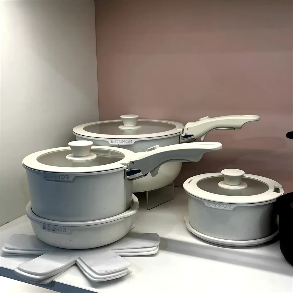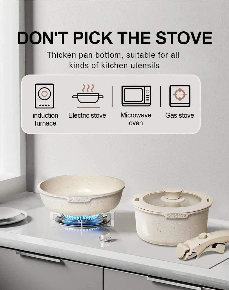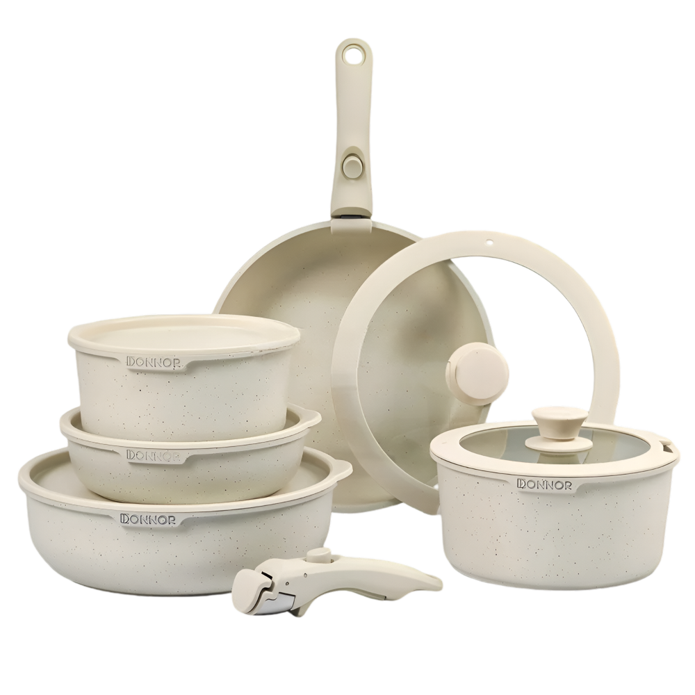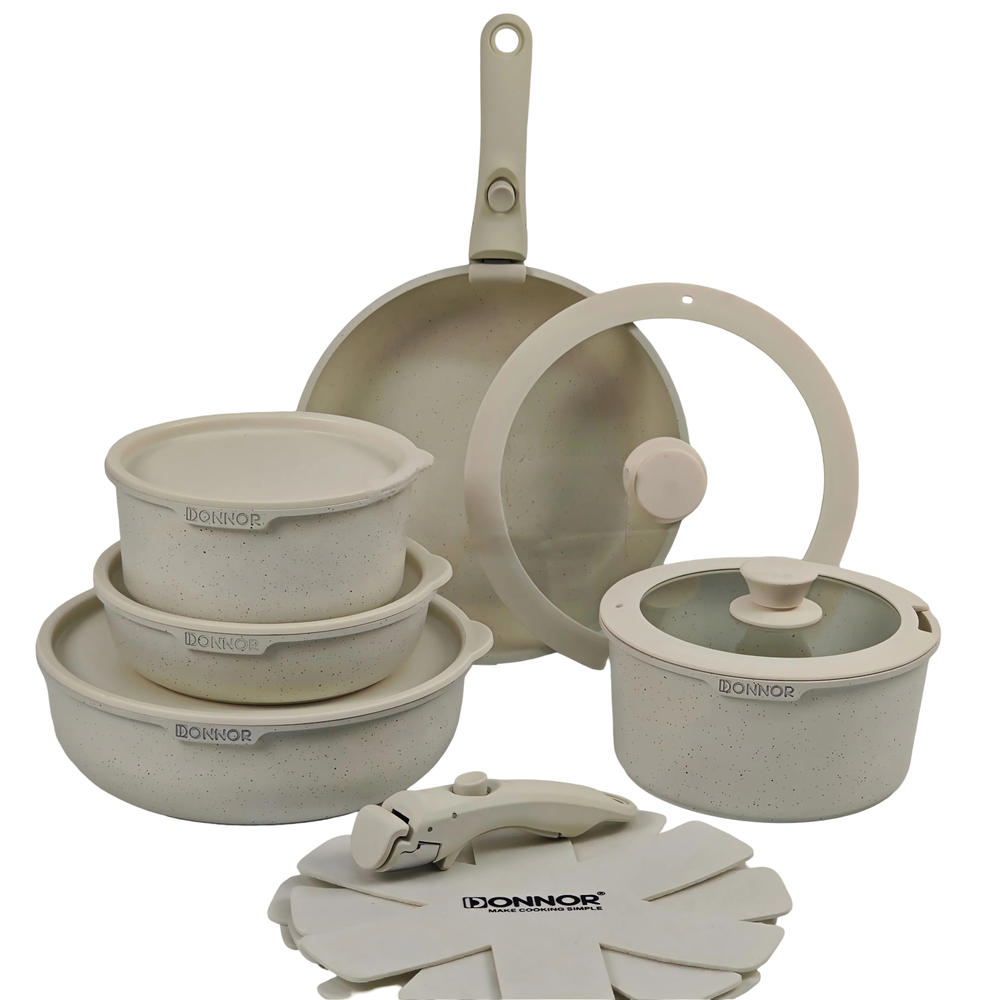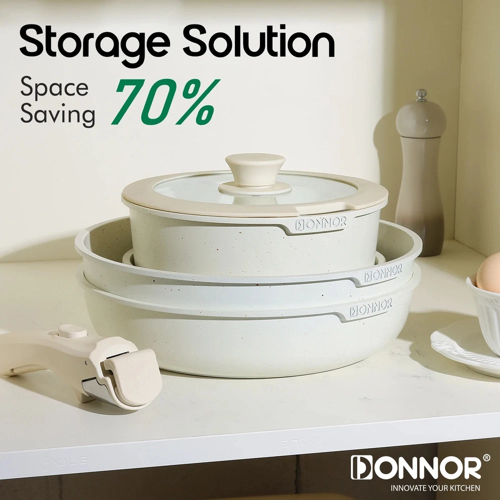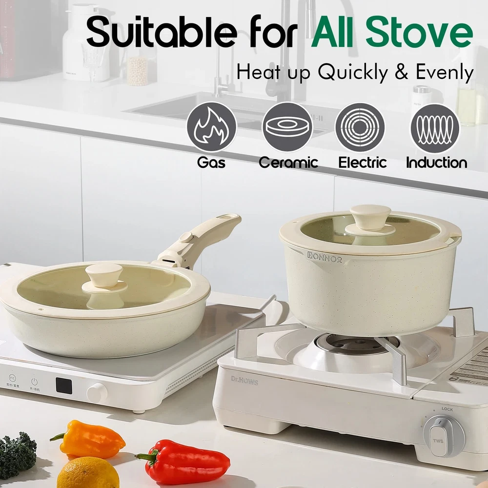 Ceramic Coating 17-piece Cookware Sets Nonstick Pots Cooking Induction Stove Frying Pan Kitchenware – Removable Detachable Handles for Space Saving Pans Upgrade your kitchen with the best ceramic nonstick cookware set. This 17-piece ceramic cooking set is designed for modern homes with detachable handles that save space, improve versatility, and allow easy storage. From non-stick induction pots and pans to ceramic coated frying pans , this complete non stick kitchen set combines durability, health, and convenience for everyday cooking. Cook smarter & save space with this 17pcs ceramic nonstick cookware set. Durable, non-toxic, induction-ready pots & pans with detachable handles for compact kitchens. USA Seller / Shipped from USA Key Features Complete 17 Piece Set – Ceramic non-stick pots, frying pans, lids, utensils, and protectors. Detachable Handles for Space Saving – Easily remove handles for stackable storage , oven cooking, and quick cleaning. Durable Non Stick Pan Set – Scratch-resistant ceramic coating ensures long-lasting performance. Induction Stove Ready – Works with induction, gas, ceramic, and electric cooktops. Healthy Non-Toxic Cookware – PFOA- and PTFE-free for safe cooking. Oven Safe Non Stick Frying Pan – Transition meals seamlessly from stovetop to oven. Easy to Clean Ceramic Cookware – Dishwasher safe, wipe clean, and stain resistant. Benefits Save up to 50% kitchen space thanks to detachable, stackable handles. Cook healthier meals with ceramic non-stick coating that requires less oil. Versatile design perfect for everyday cooking, professional-style meals, and small kitchens. Specifications Material: Aluminum with ceramic nonstick coating Set Size: 17 pieces with pots, pans, lids, utensils, and protectors Handles: Detachable, ergonomic, heat-resistant Compatibility: Induction, gas, ceramic, electric stoves Care: Dishwasher safe, oven safe, easy to clean Shipping & Returns Fast Shipping: Ships from USA warehouse Hassle-Free Returns: 30-day return policy Why This Cookware Set Is Better Unlike traditional cookware, this ceramic cookware set with detachable handles offers unmatched flexibility. Use it as a space-saving kitchenware set , an induction stove frying pan collection , or even as oven-ready bakeware. Compact, durable, and healthier for cooking, it is the best ceramic coated cookware for small kitchens, large families, or anyone who values efficiency and convenience. Order today and transform your kitchen with a space-saving, detachable handle ceramic cookware set built to outperform top brands.