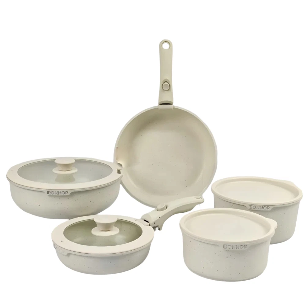 5-Piece Nonstick White Cookware Set with Detachable Handles